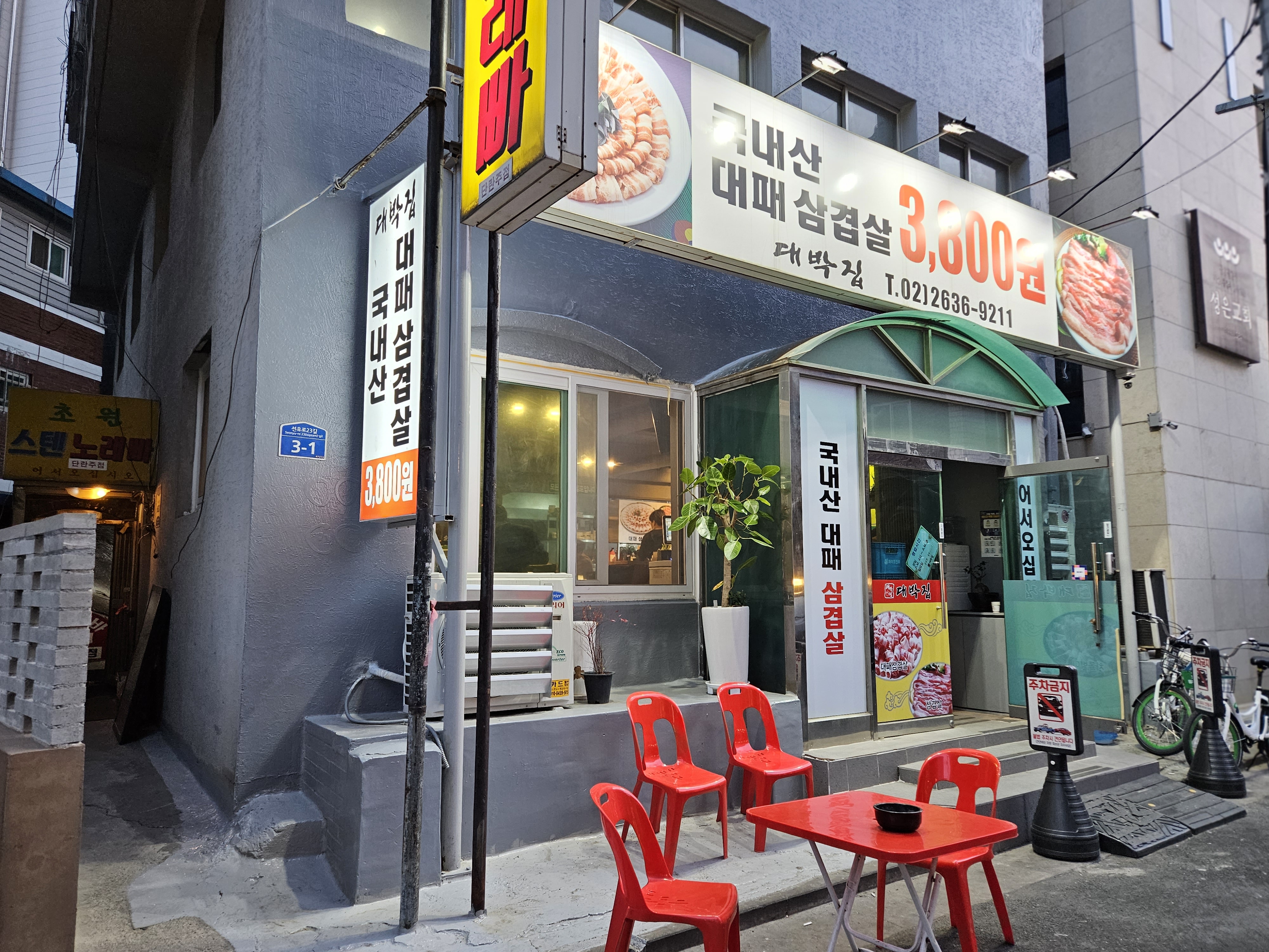 영등포 양평동 대박집이라는 식당으로 대패삼겹살 1인분 가격이 3,800원인 곳입니다.