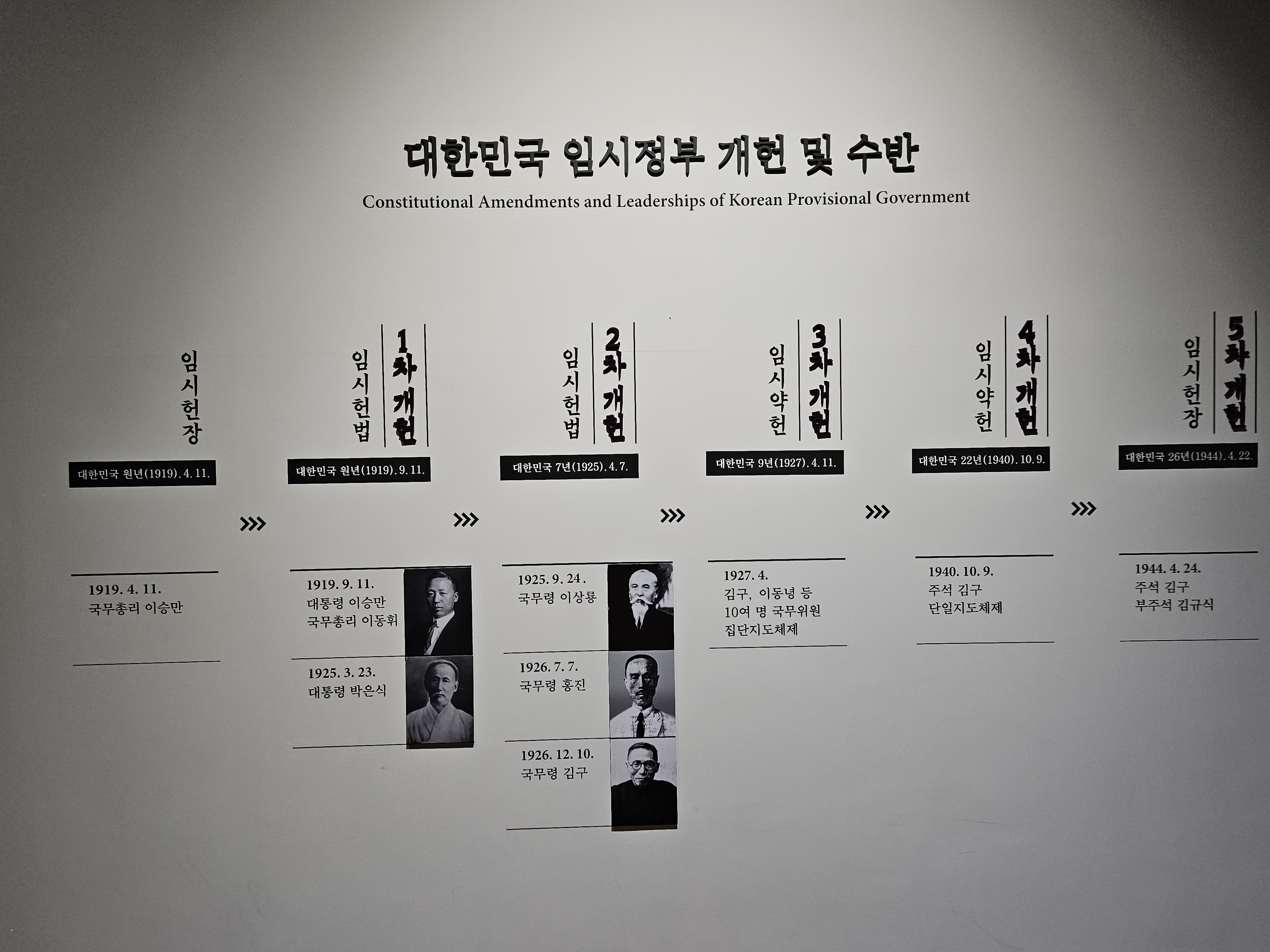 그 결과 1919년(대한민국 원년) 4월 11일, 한국 역사상 최초로 삼권분립에 기초한 민주공화제 정부가 수립되었습니다.