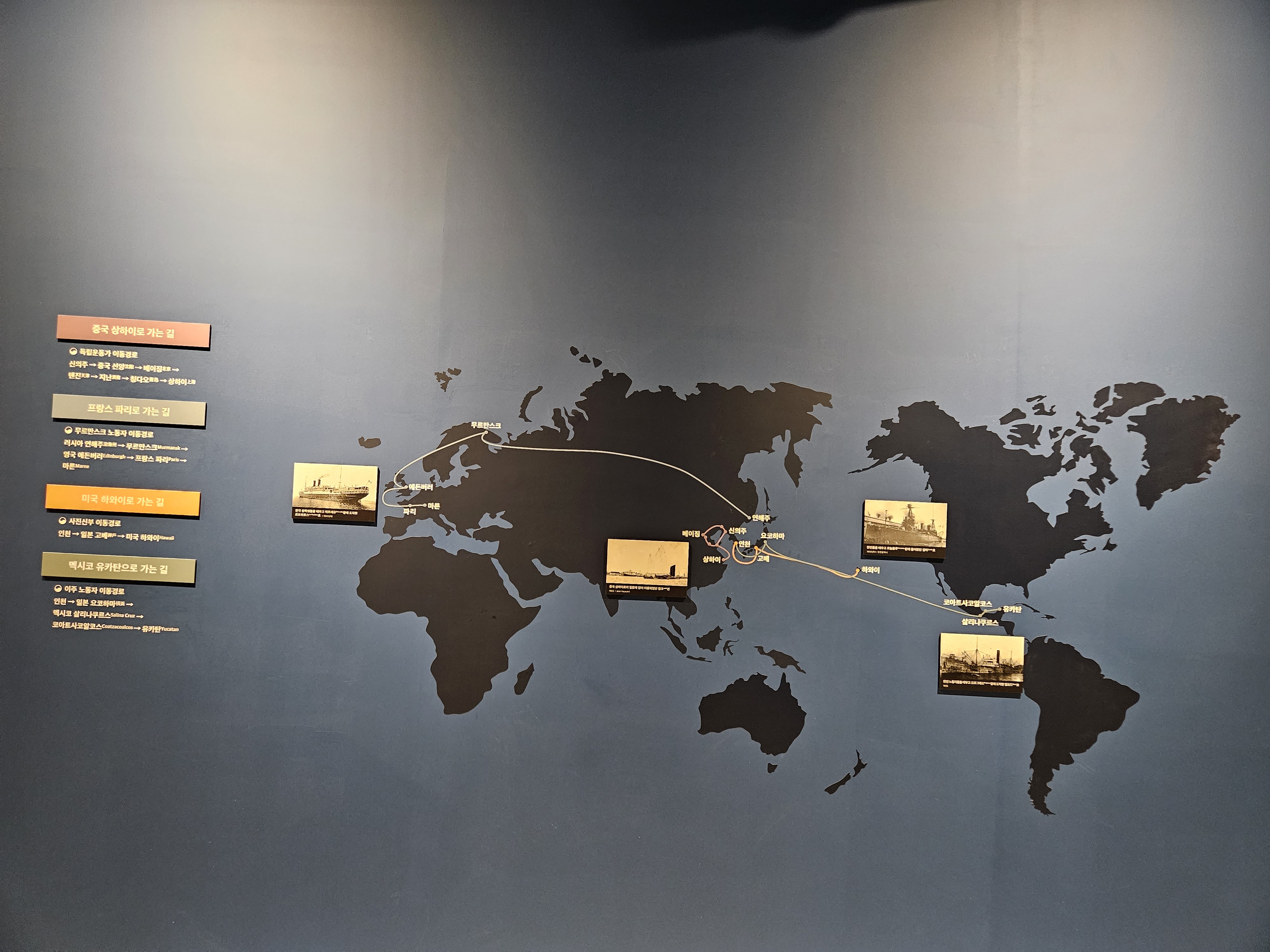 독립운동가의 이동경로, 무르만스크 노동자 이동경로, 사진신부 이동경로, 멕시코 이주노동자 이주경로