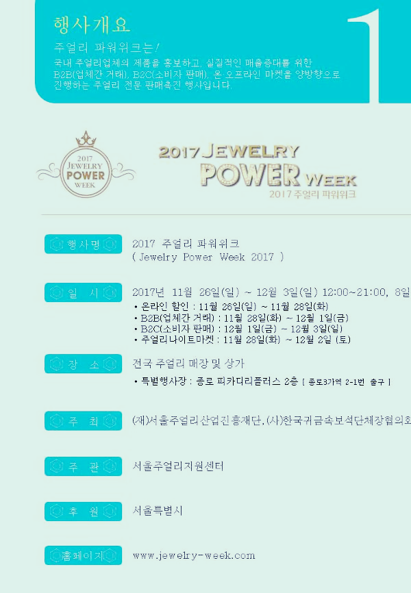 ◆ 행사명 : 2017 주얼리 파워위크(Jewelry Power Week 2017)