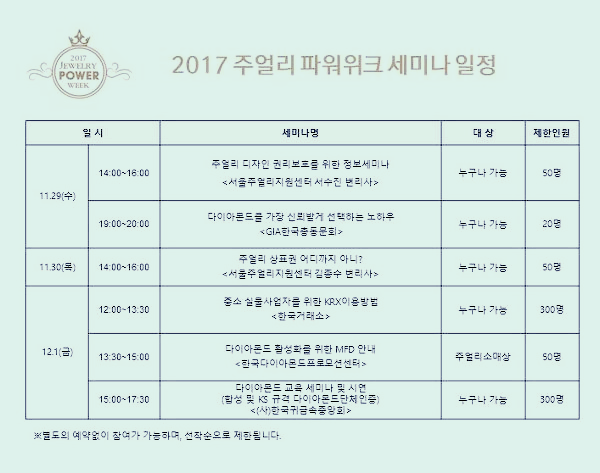 2017 주얼리 파워위크 행사기간 동안 각종 세미나가 진행되는데요.