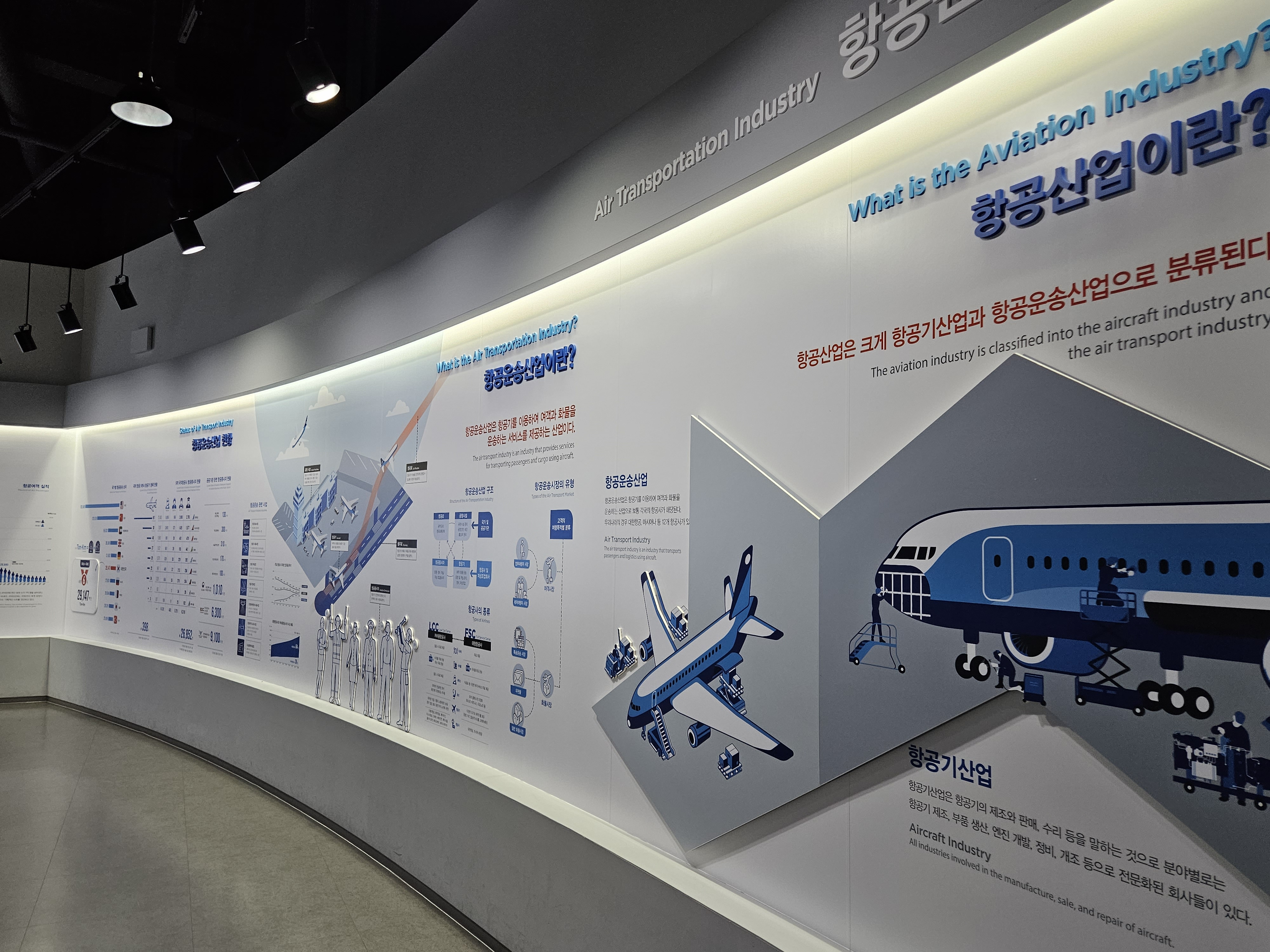 대한민국 항공산업의 현황과 전망, 항공운송과 공항 내 다양한 종사자들의 업무를 소개하는 전시관입니다.
