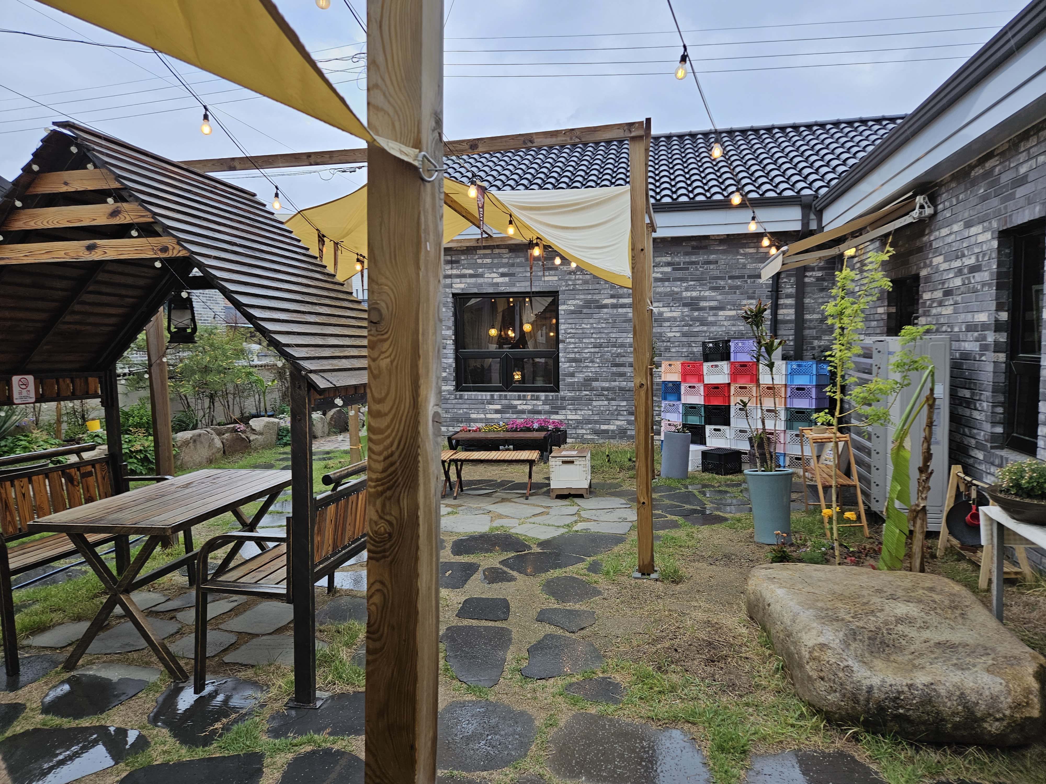카페 건물 옆에는 야외 캠핑장을 연상하는 분위기를 연출해 놓고 있습니다.