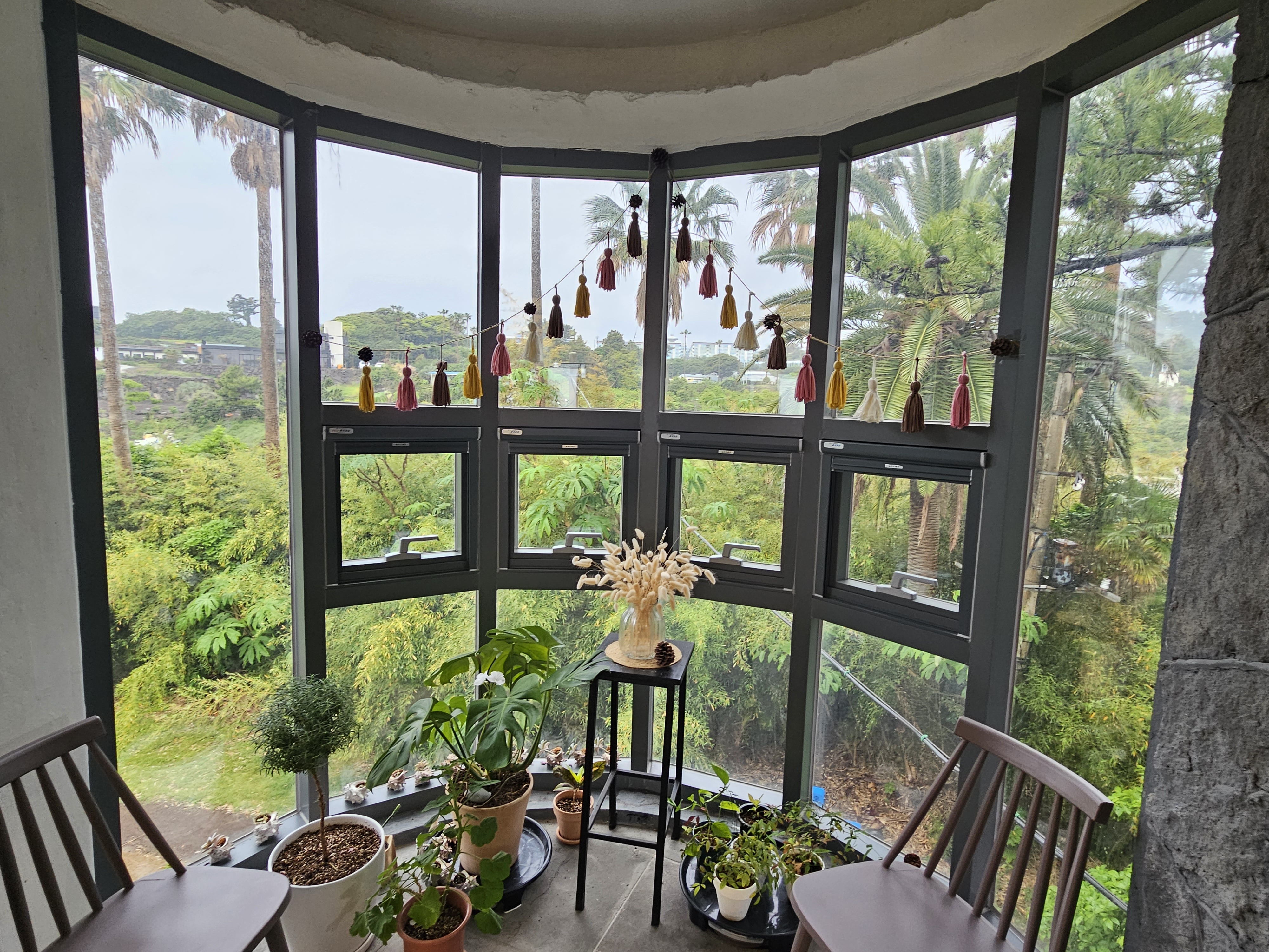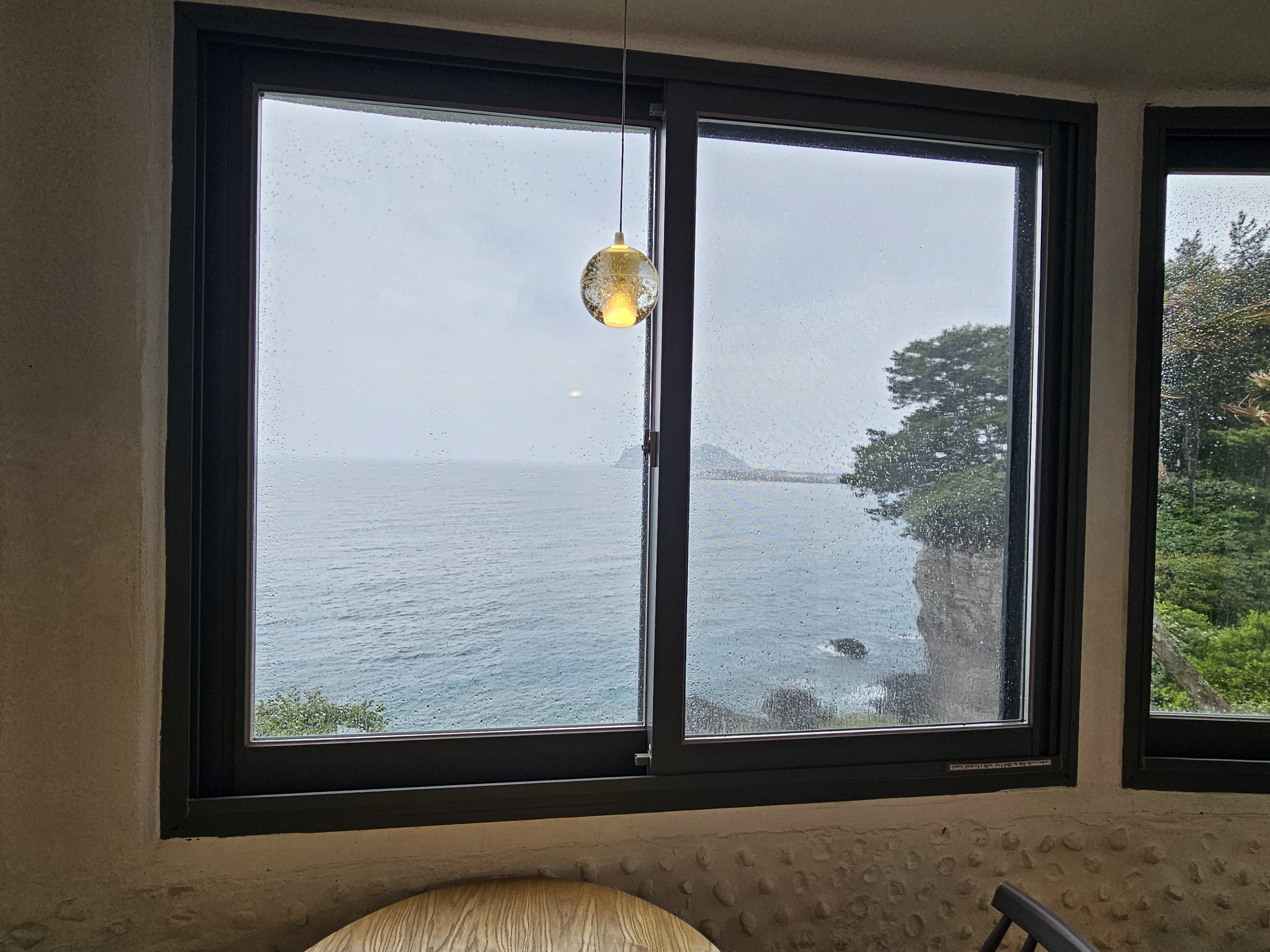 커다란 창문으로는 서귀포 바다가 넓게 펼쳐져 있습니다.