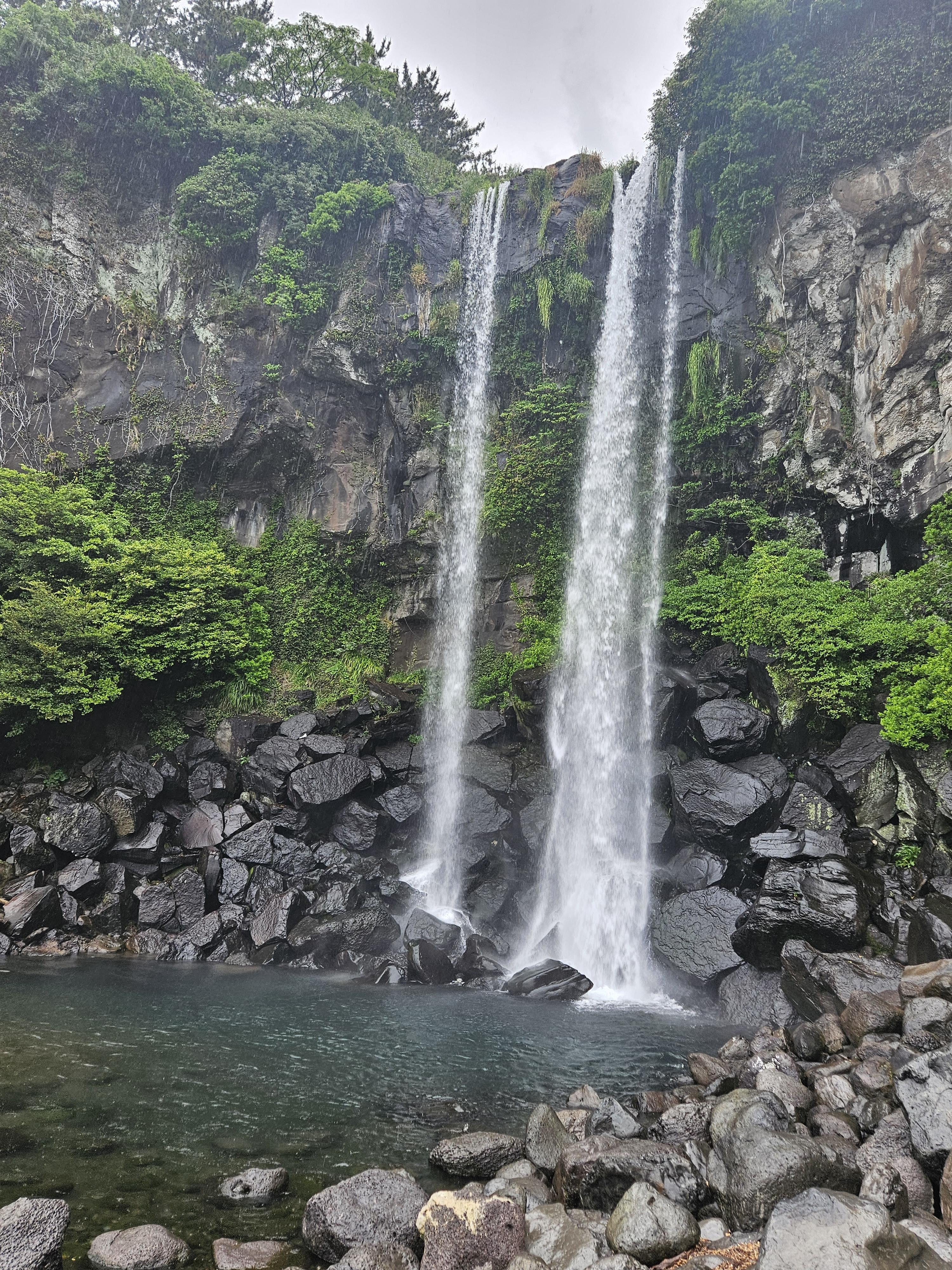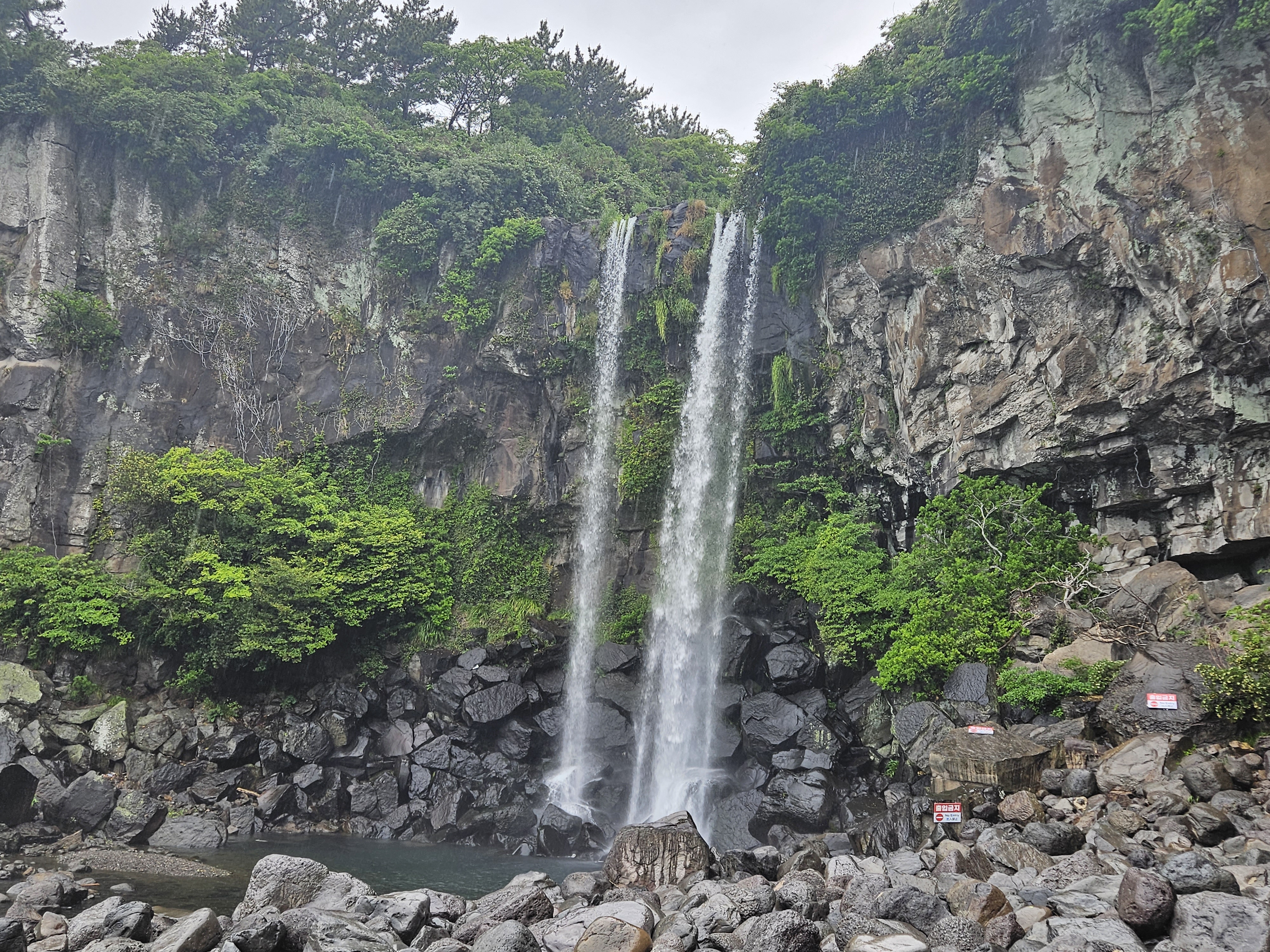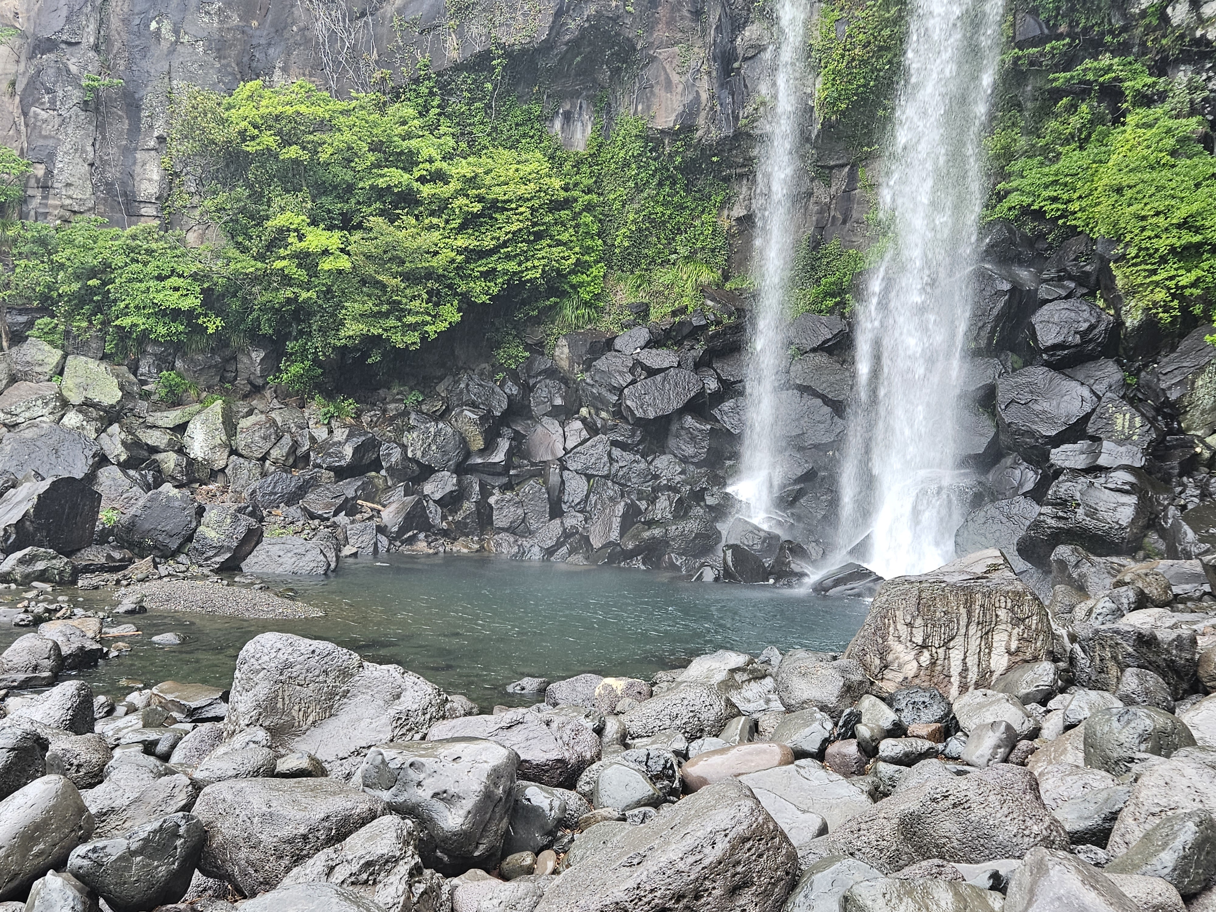 높이 23m, 너비 8m에 깊이 5m에 달하며, 동양에서 유일한 뭍에서 바다로 직접 떨어지는 폭포랍니다.