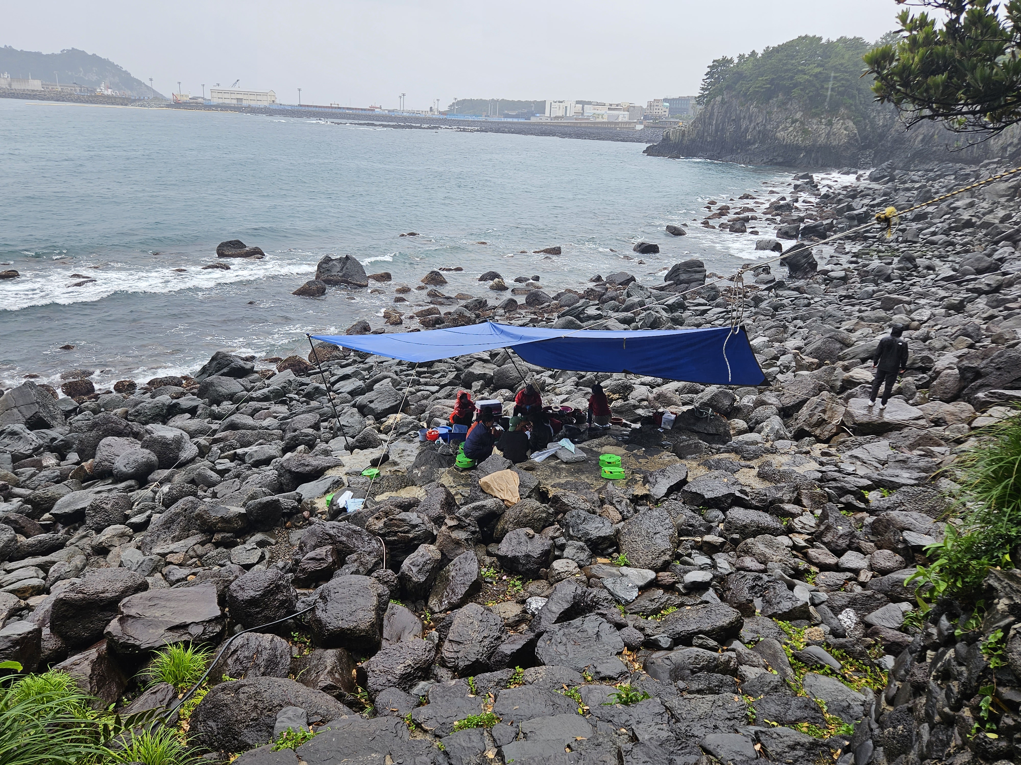 정방폭포 앞 해녀들이 수확한 해산물 판매하는 곳