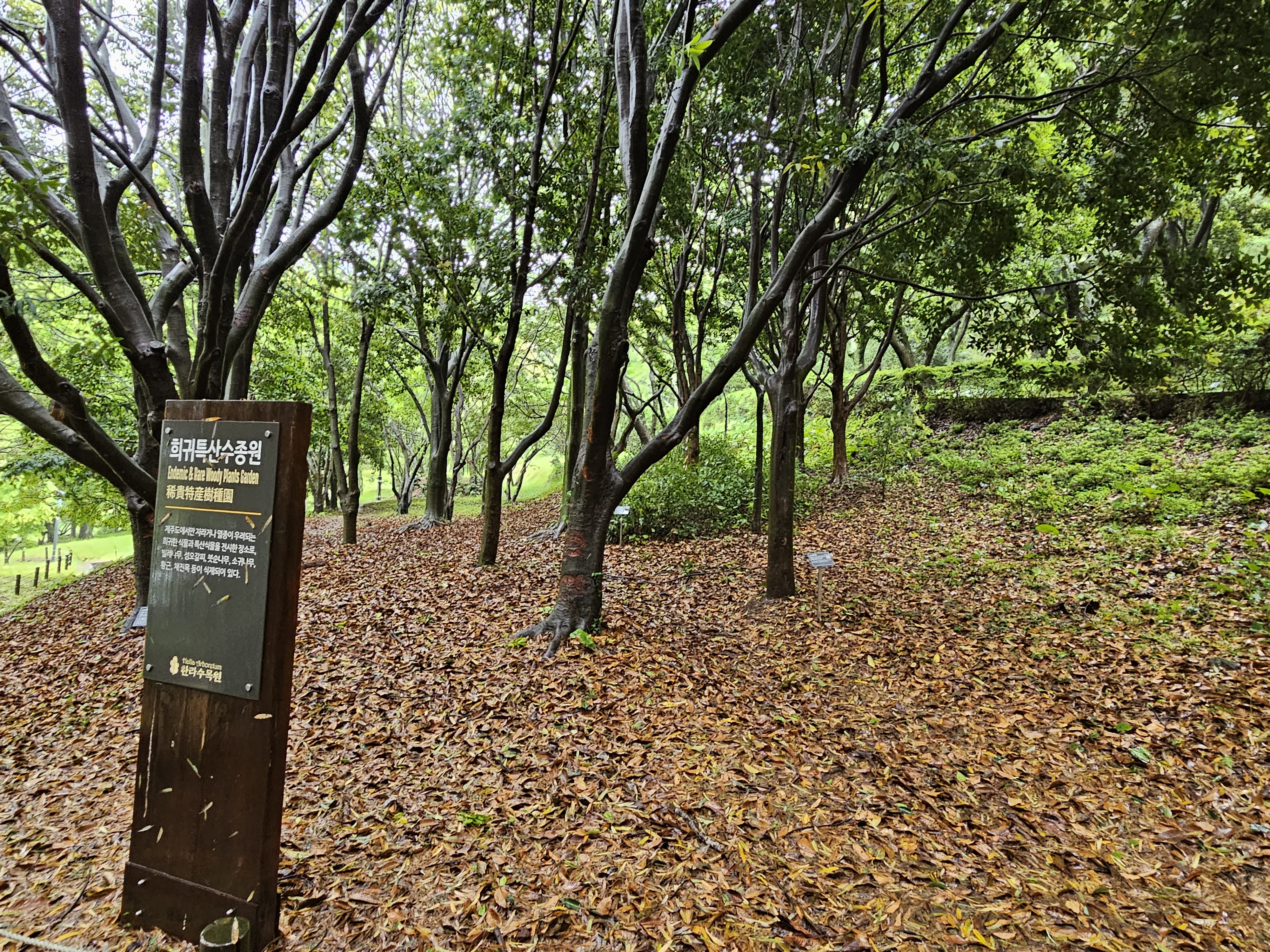 교목원, 관목원, 약용·식용원, 희귀 특산 수종원, 만목원, 화목원, 도외수종원, 죽림원, 초본원, 수생식물원 등 전문수종원 10개원과 온실, 양묘전시포, 삼림욕장, 시청각실, 휴게실, 체력단련시설, 편의시설 등이 갖추어져 있더군요.