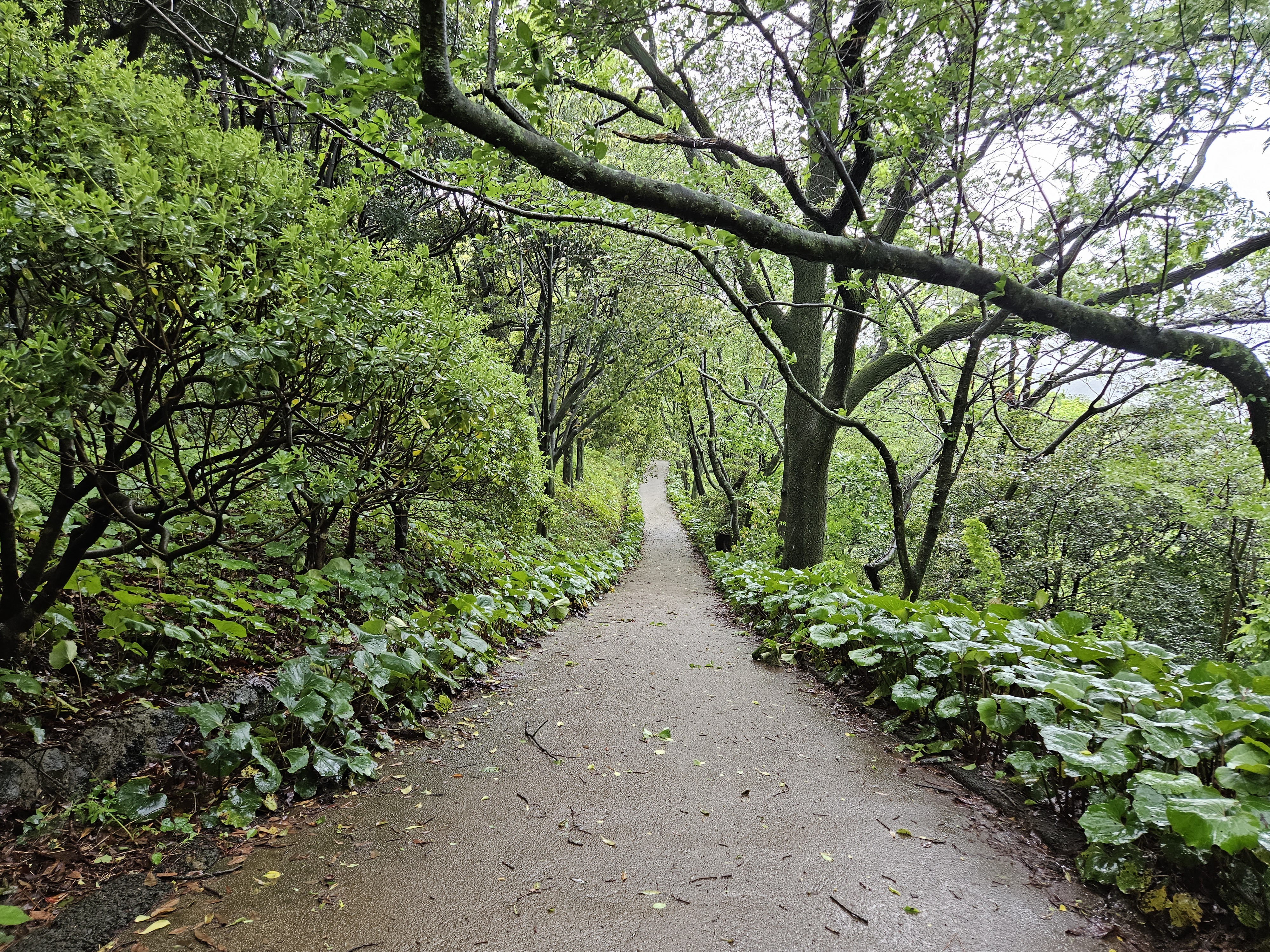 다행히 비바람이 불어도 숲길을 걷는 것이라 바람을 막아줘 우산을 써도 무방하더군요.