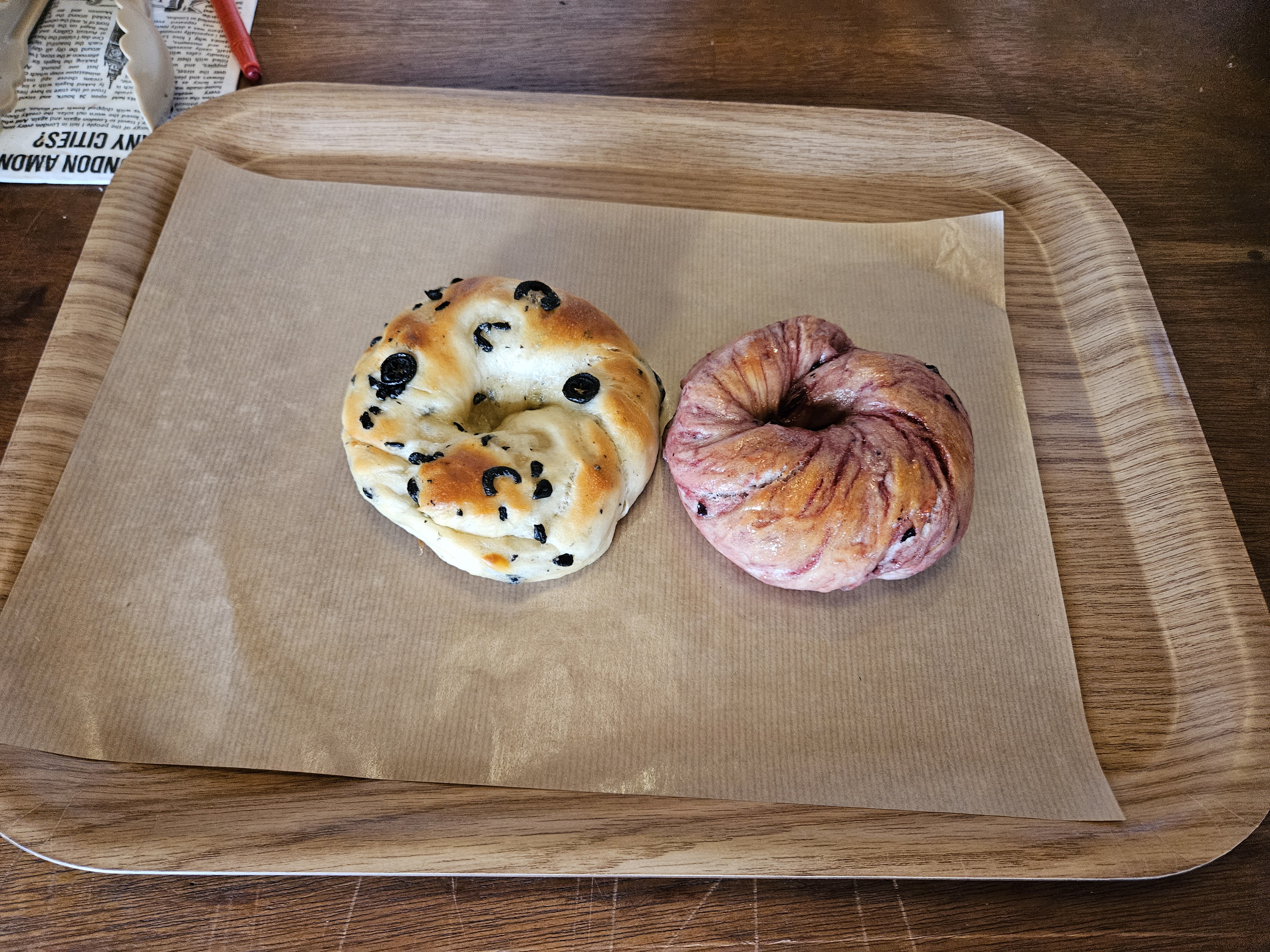 올리브 베이글과 블루베리 베이글 2개만 샀습니다.