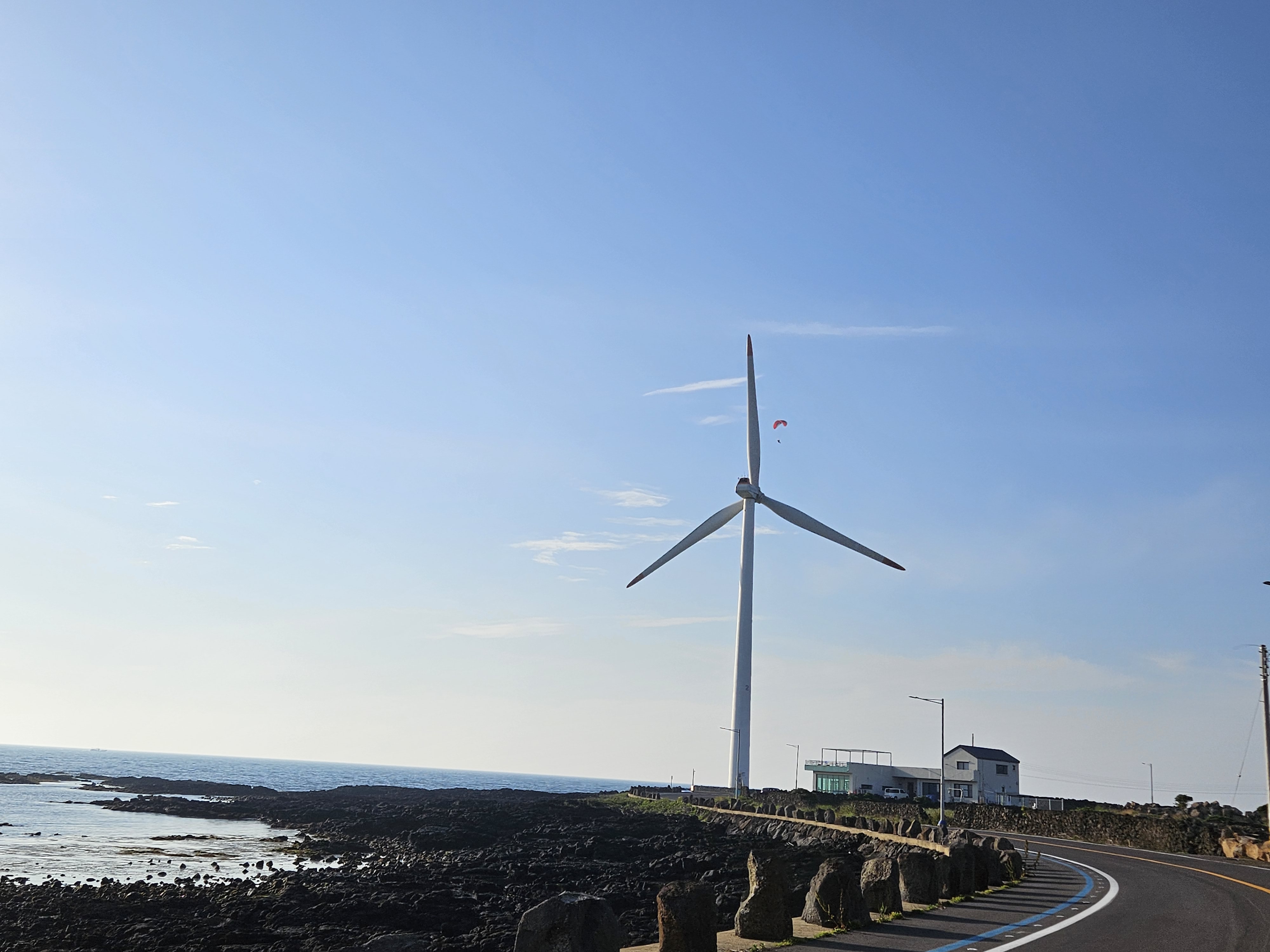 풍력발전기가 돌아가는 제주 바다는 소용돌이는 전혀 없고 아름다운 모습 그대로 간직하고 있네요.