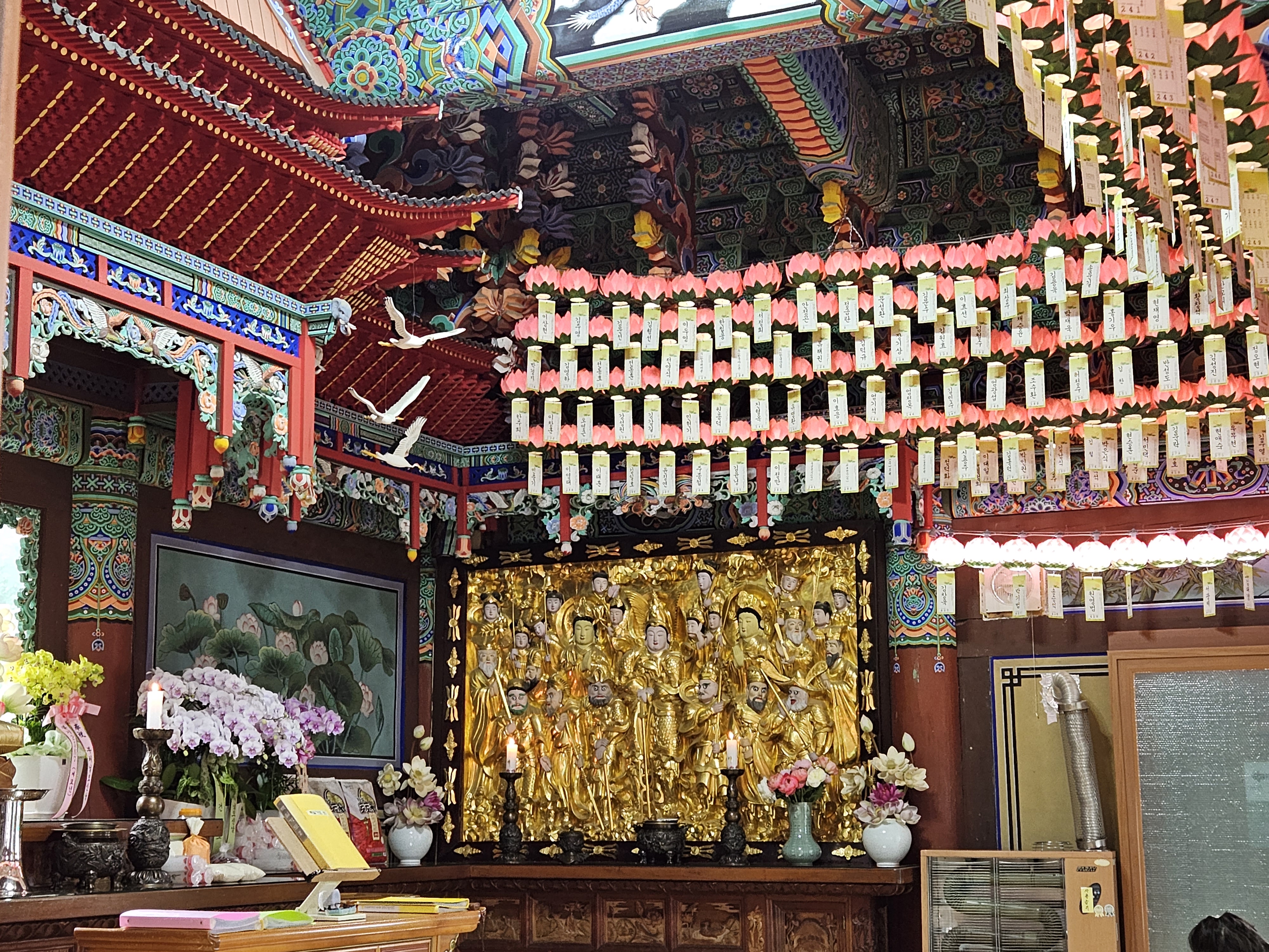 2층 누각으로 조성된 이곳은 부처님의 법을 전하는 사물인 법고(가죽걸친 짐승), 운판(날 짐승과 허공을 떠도는 영혼), 목어(물 속에 사는 생명)가 있는 곳입니다.