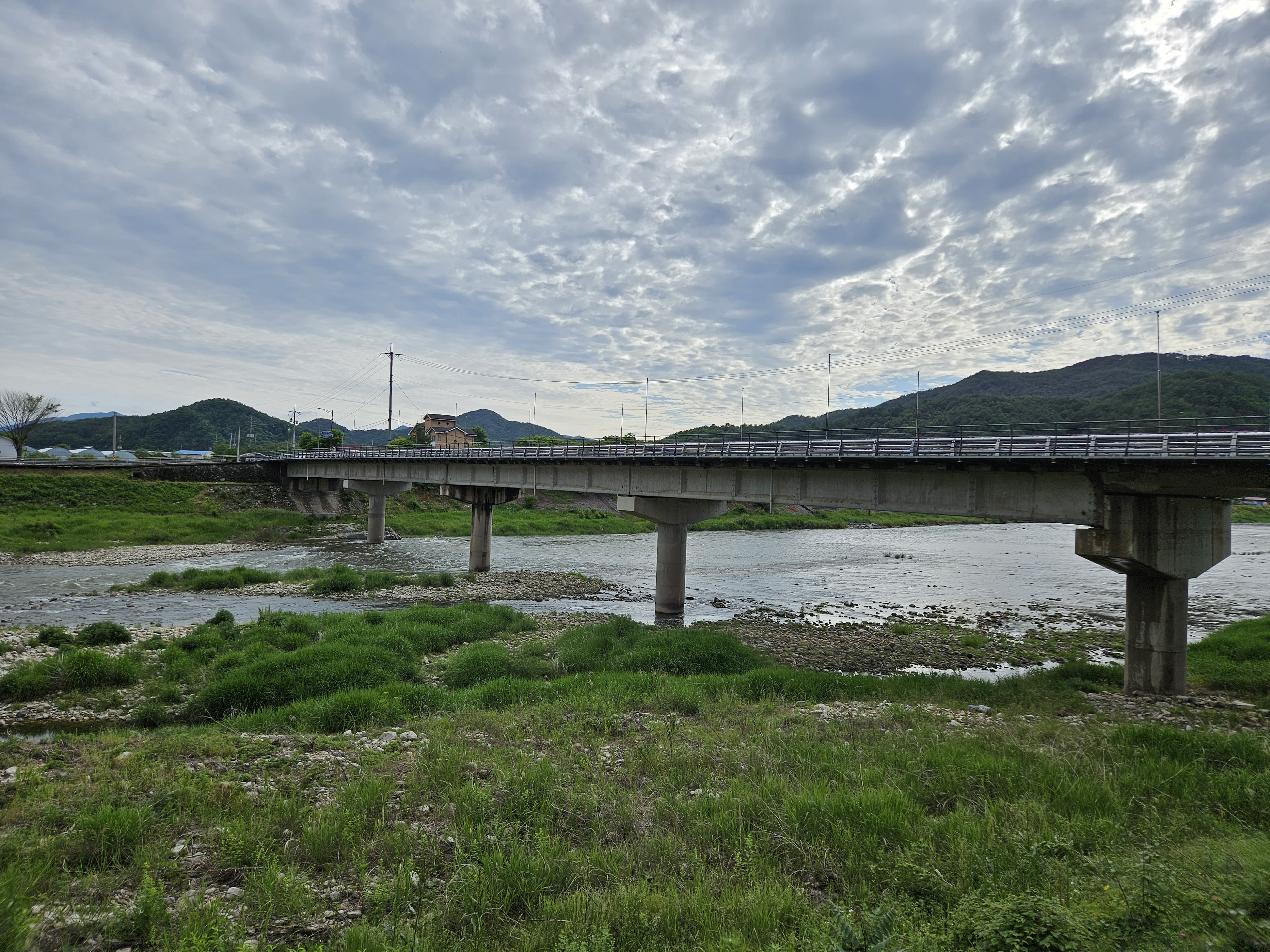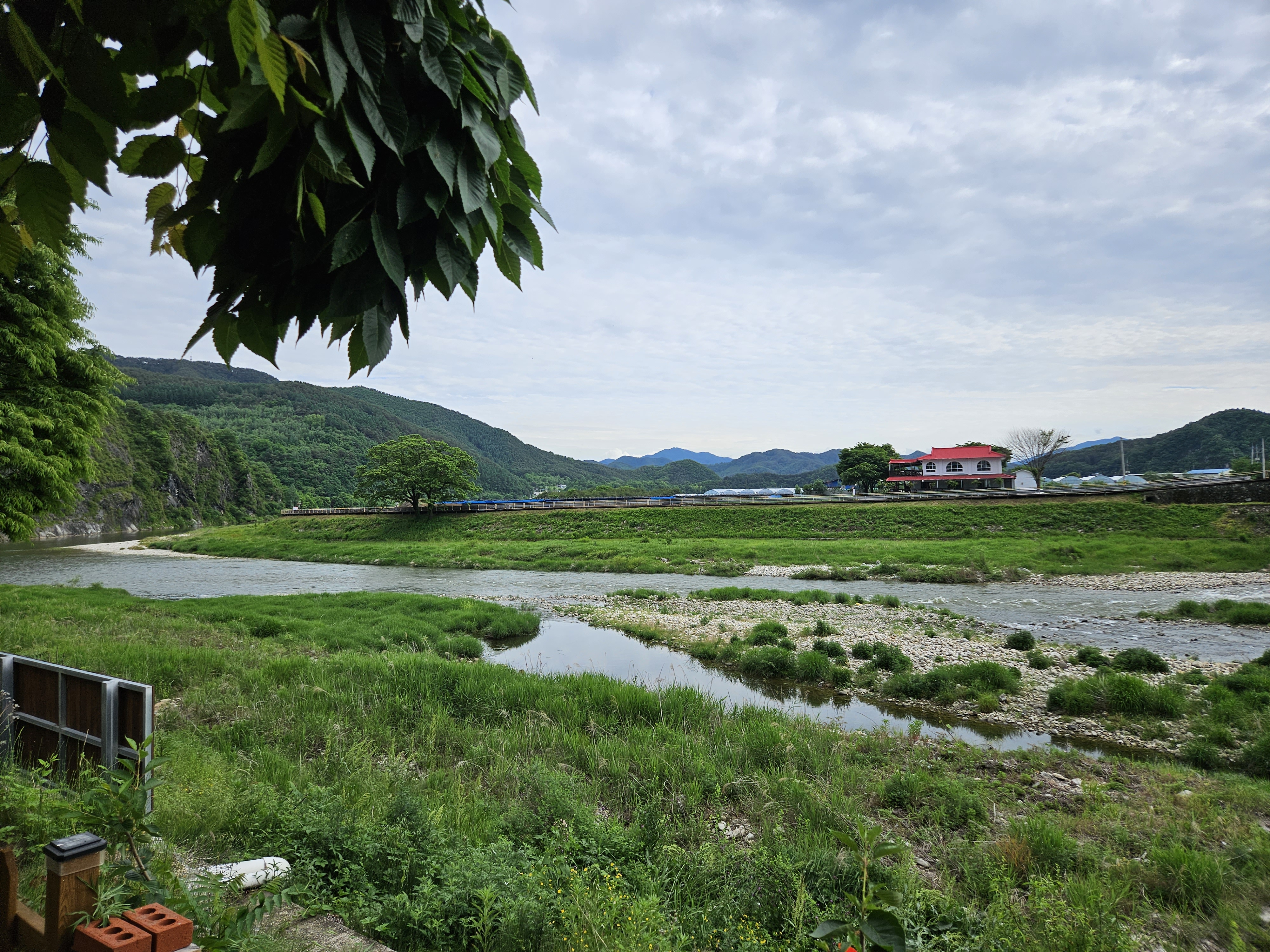 주천강변을 달리는 무릉법흥로에서 바라본 카페 플레이스영