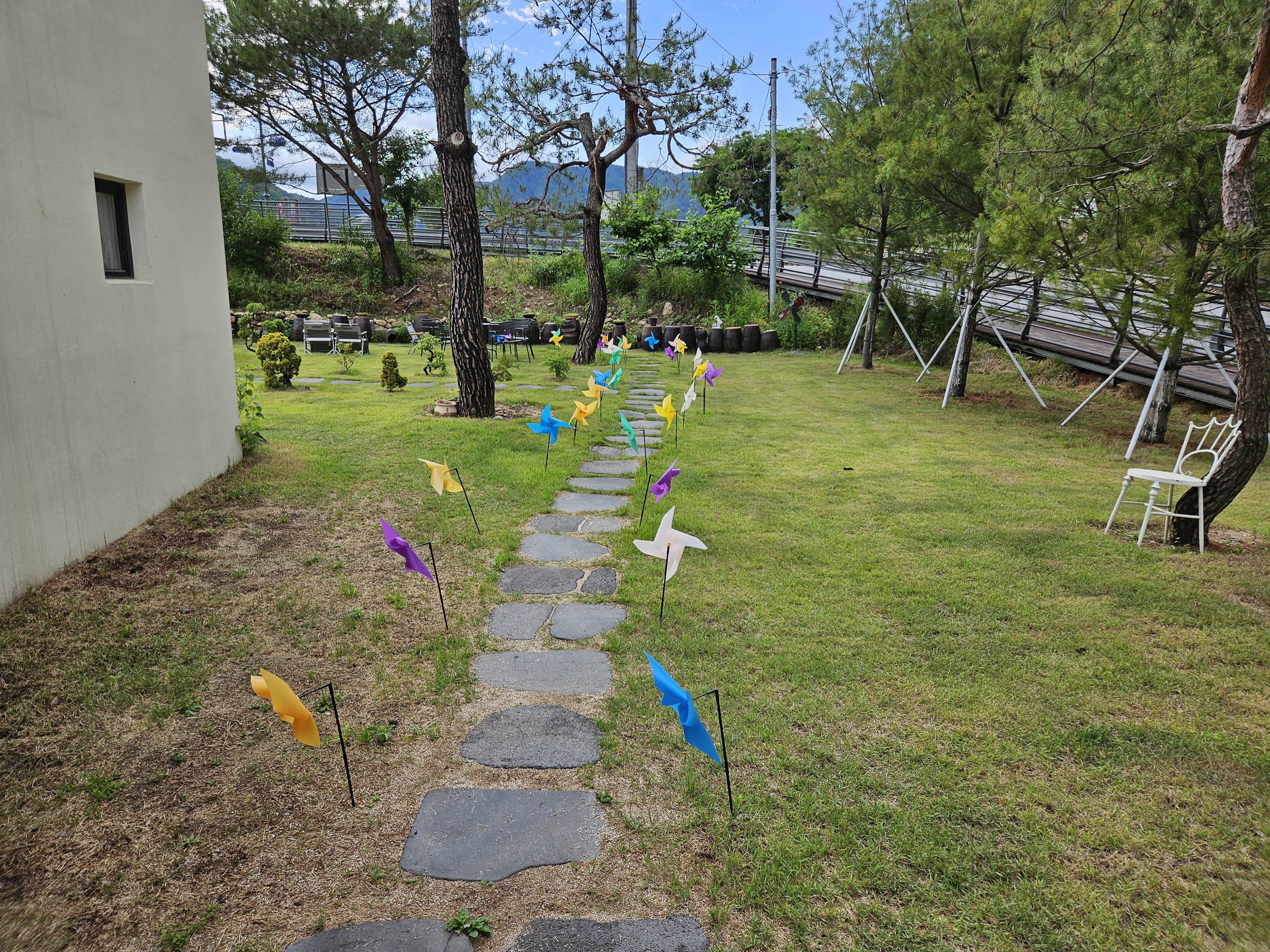 밖으로 나와보니 건물 사이에 바람개비가 있고,