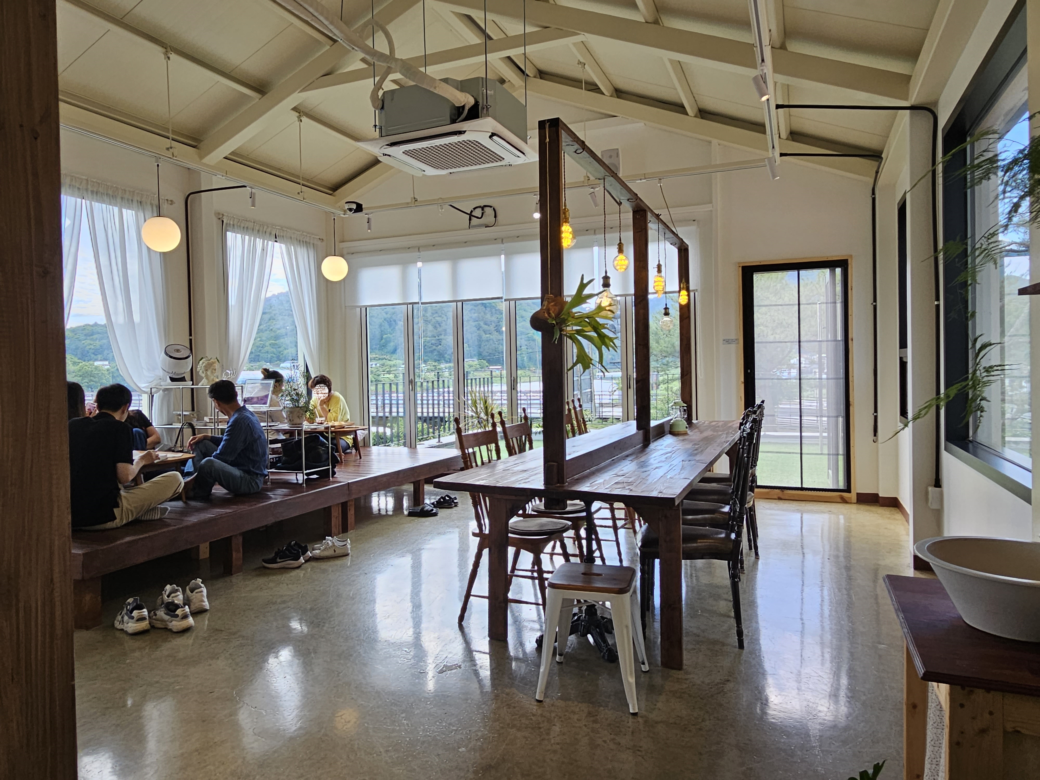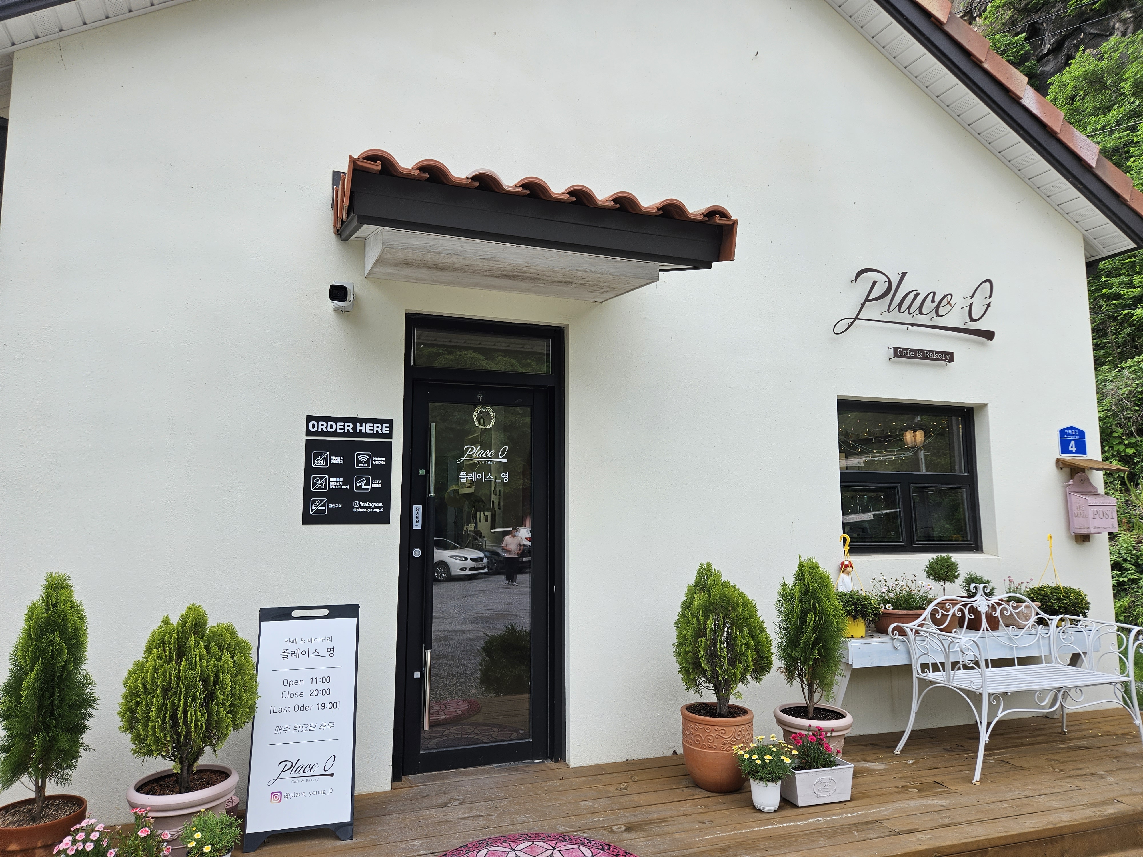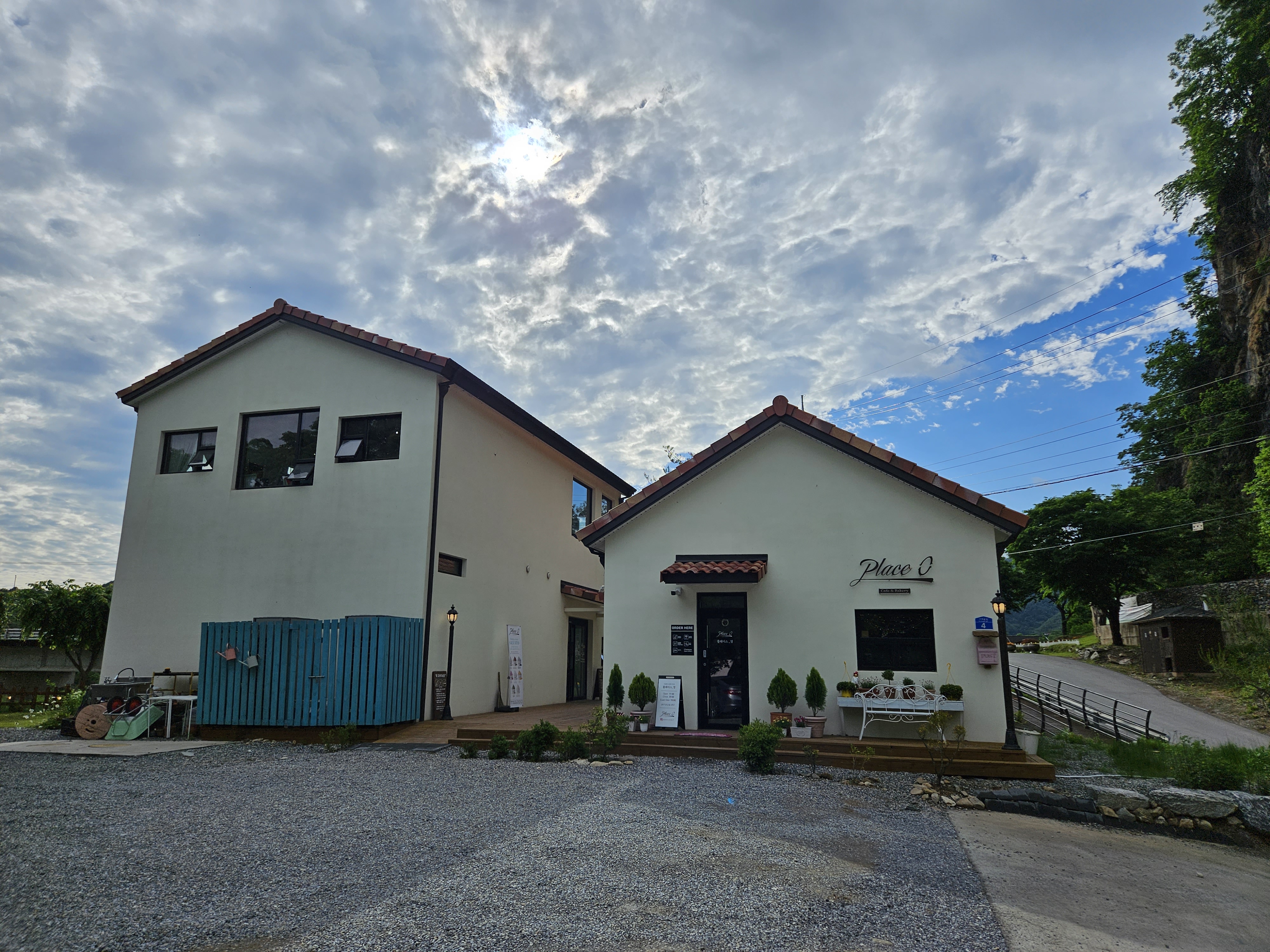 요선암과 요선정에서 1.7km 정도 떨어진 주천강변에 자리한 카페 플레이스영은 주천강변 무릉 2교 옆에 자리하고 있어서 강변풍경이 무척 매력적이라 근처의 핫플레이스 카페로 인기가 많은 곳이었습니다.