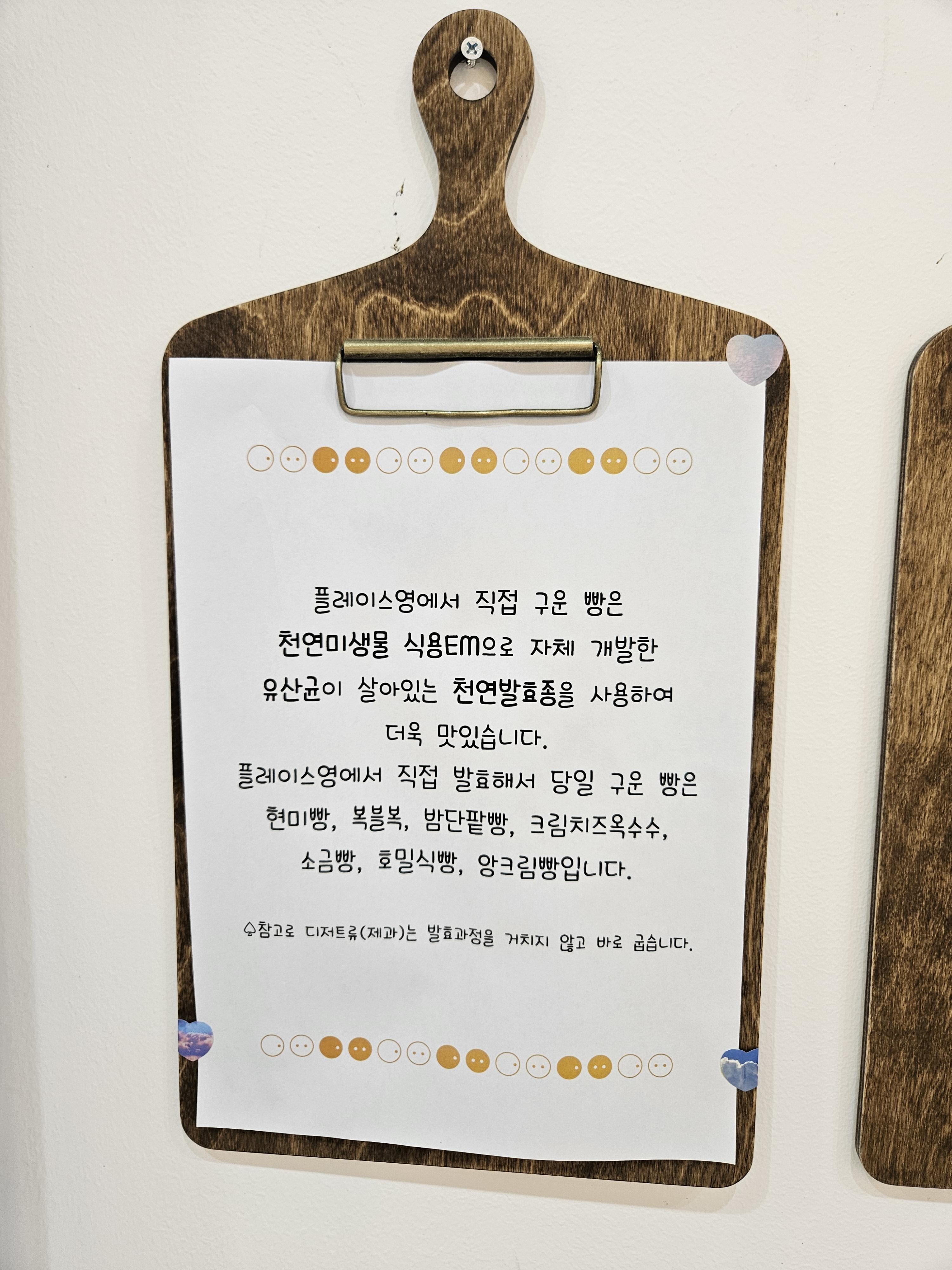 카페 플레이스영에서 직접 구운 빵은 천연미생물 식용 EM으로 자체 개발한 유산균이 살아있는 천연발효종을 사용했다고 합니다.