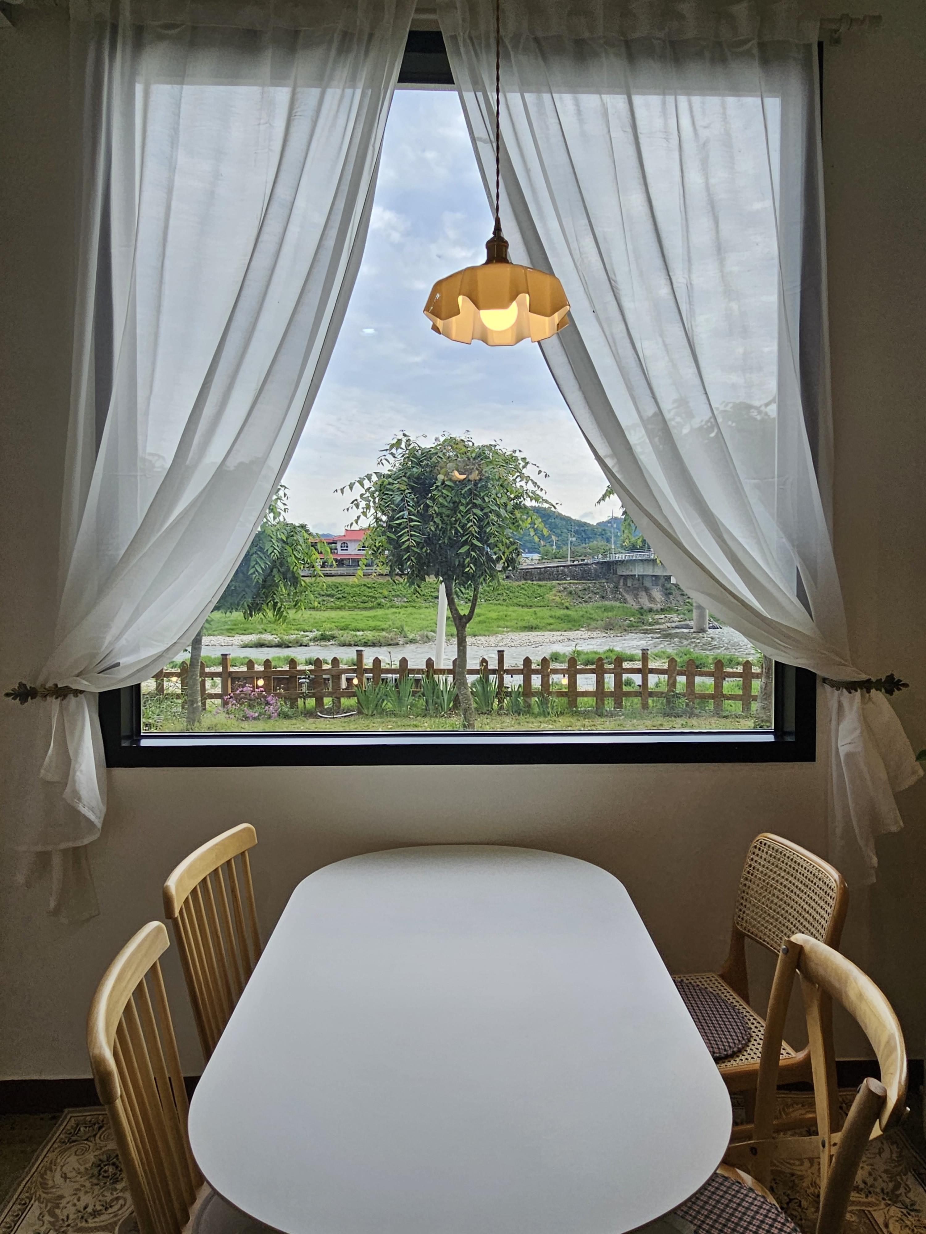 창가 테이블에서는 주천강 전망을 볼 수 있게 되어 있네요.