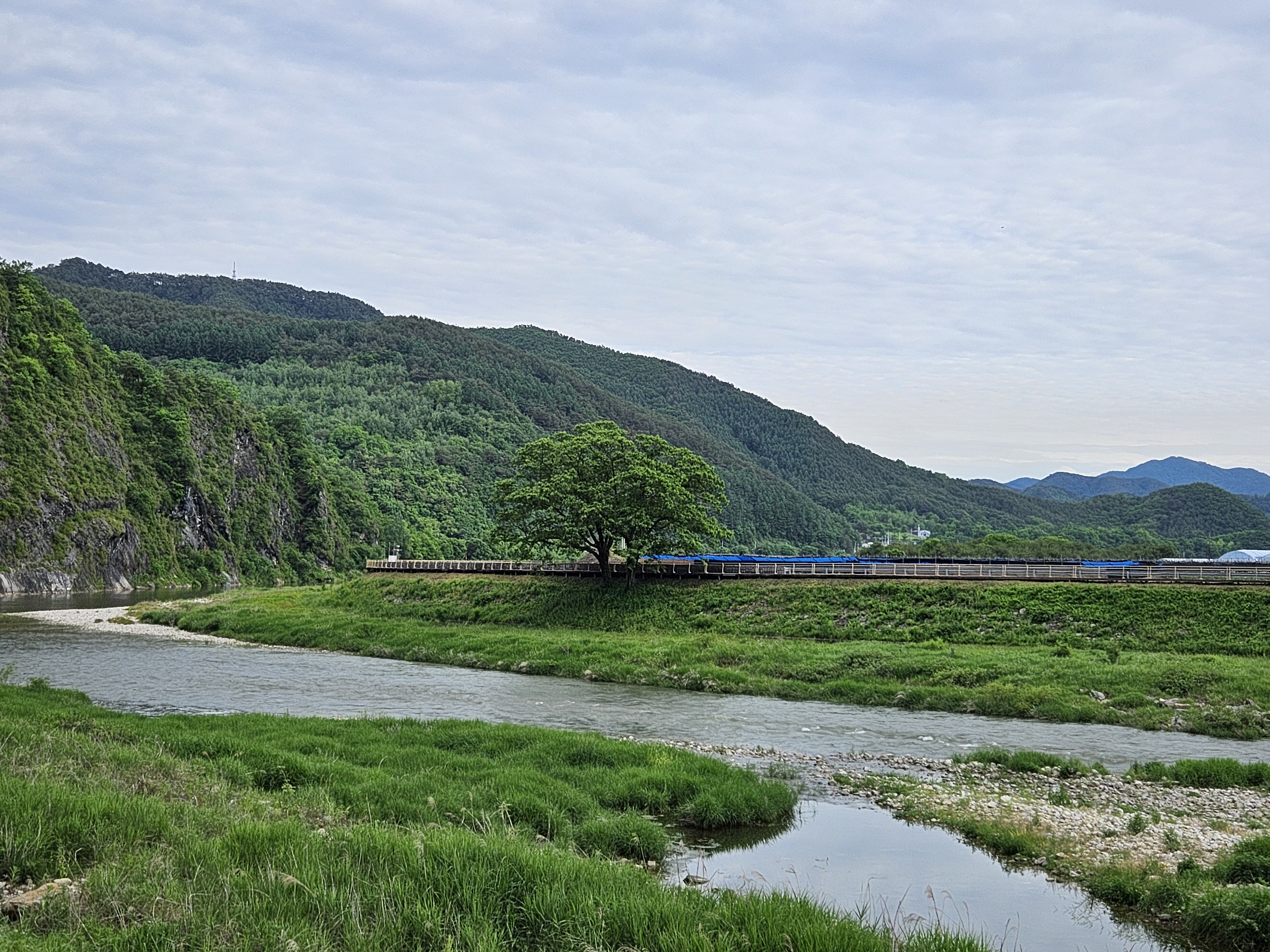 뒤에는 암벽 산이, 앞에는 주천강이 흐르고 있는 풍경이 정말 무릉도원이 따로 없는 듯합니다.