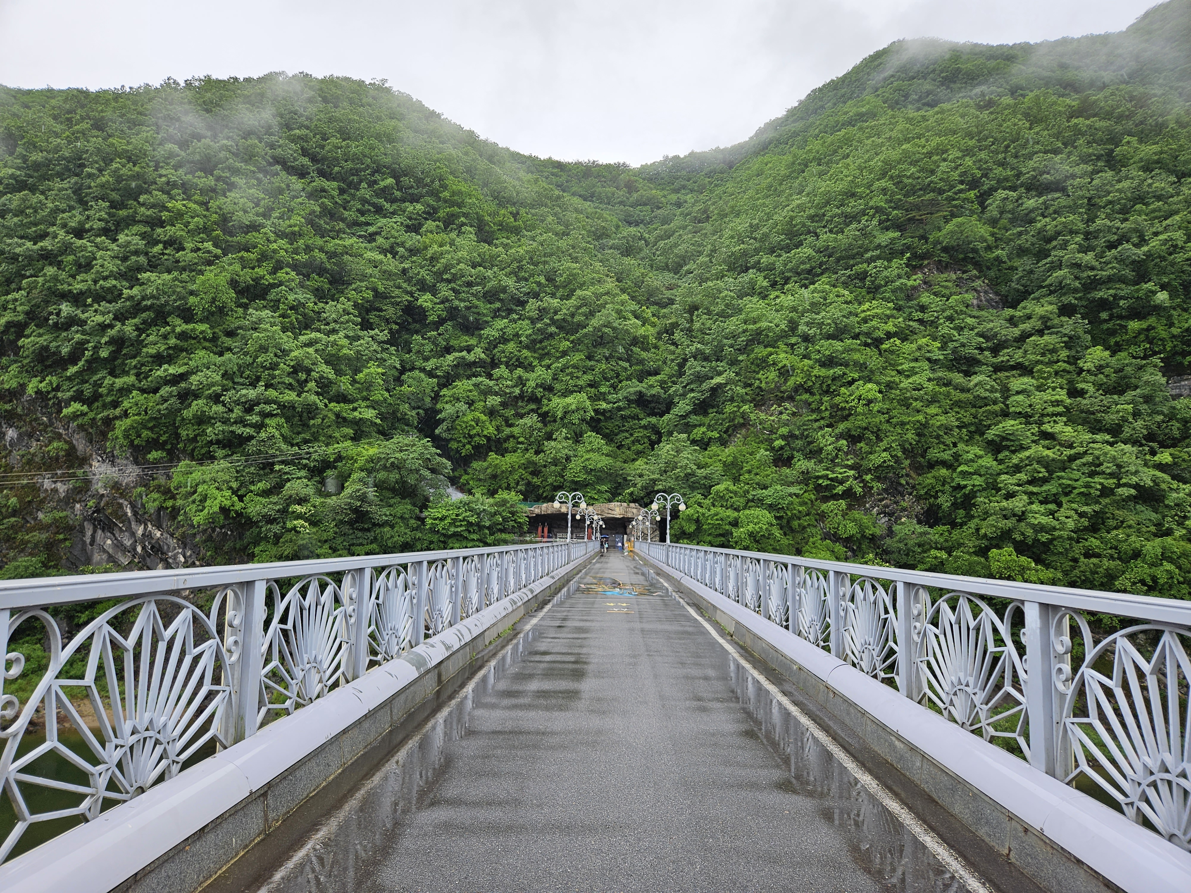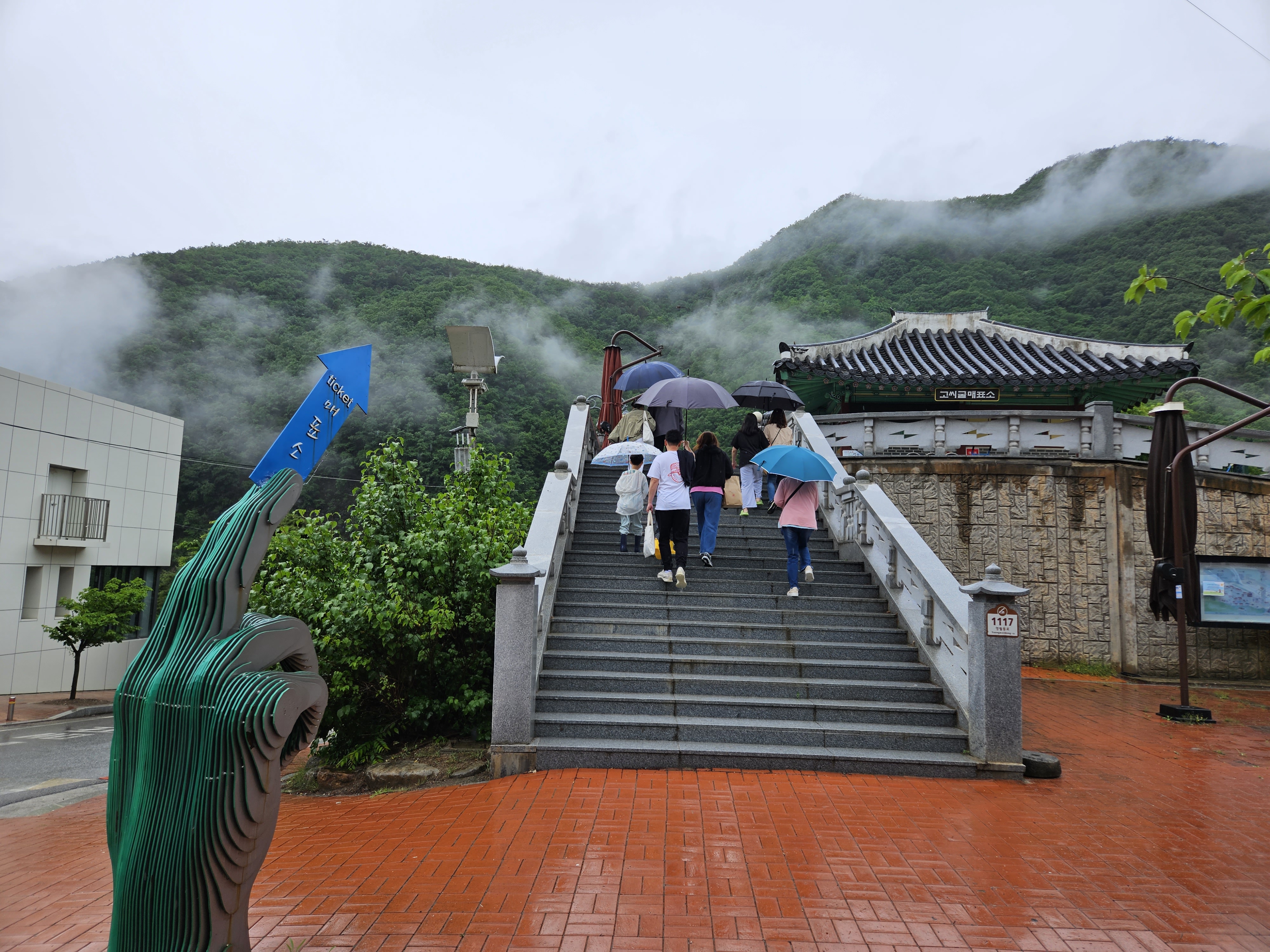 매표소가 한옥으로 지어져 있고, 구름에 싸인 산과 어울리는 풍경이네요.
