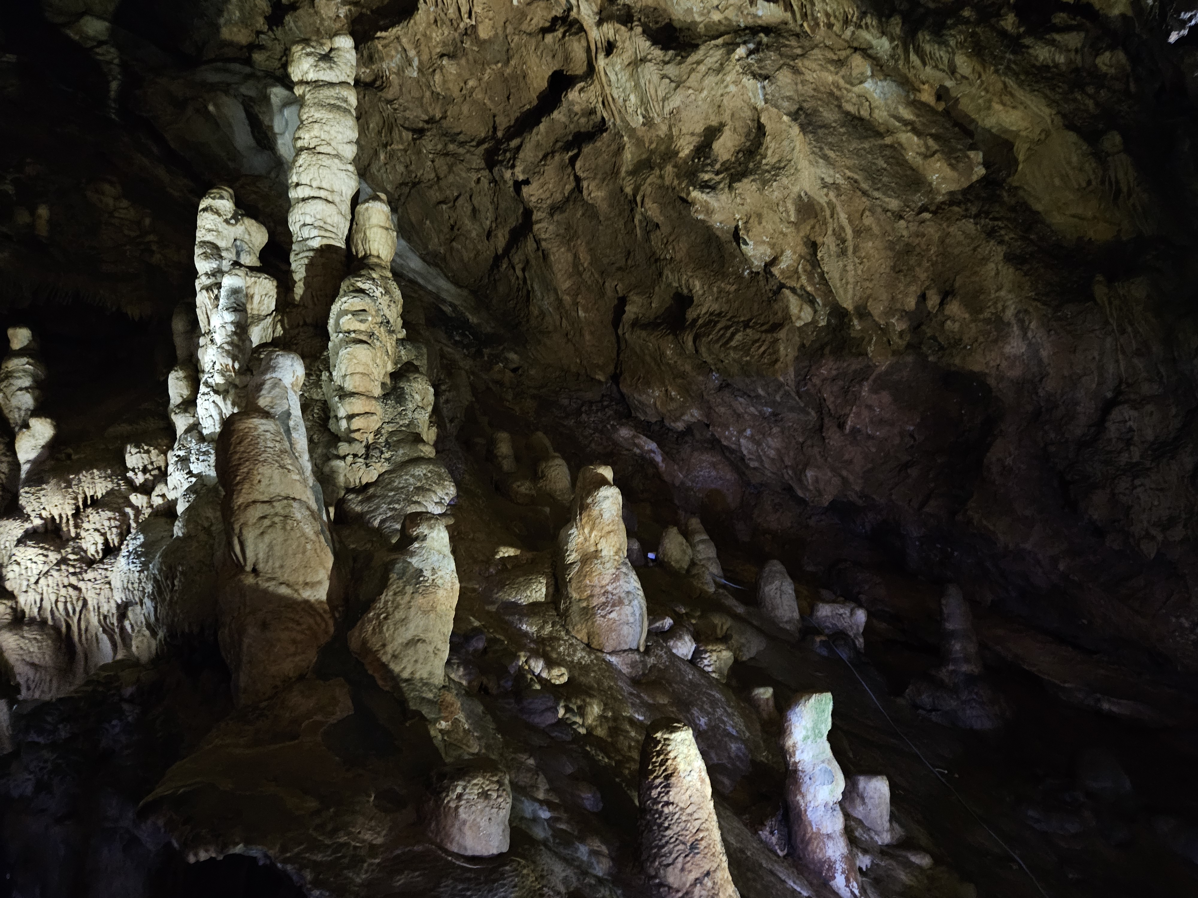 많은 석순이 모양이 다르게 자라고 있습니다.