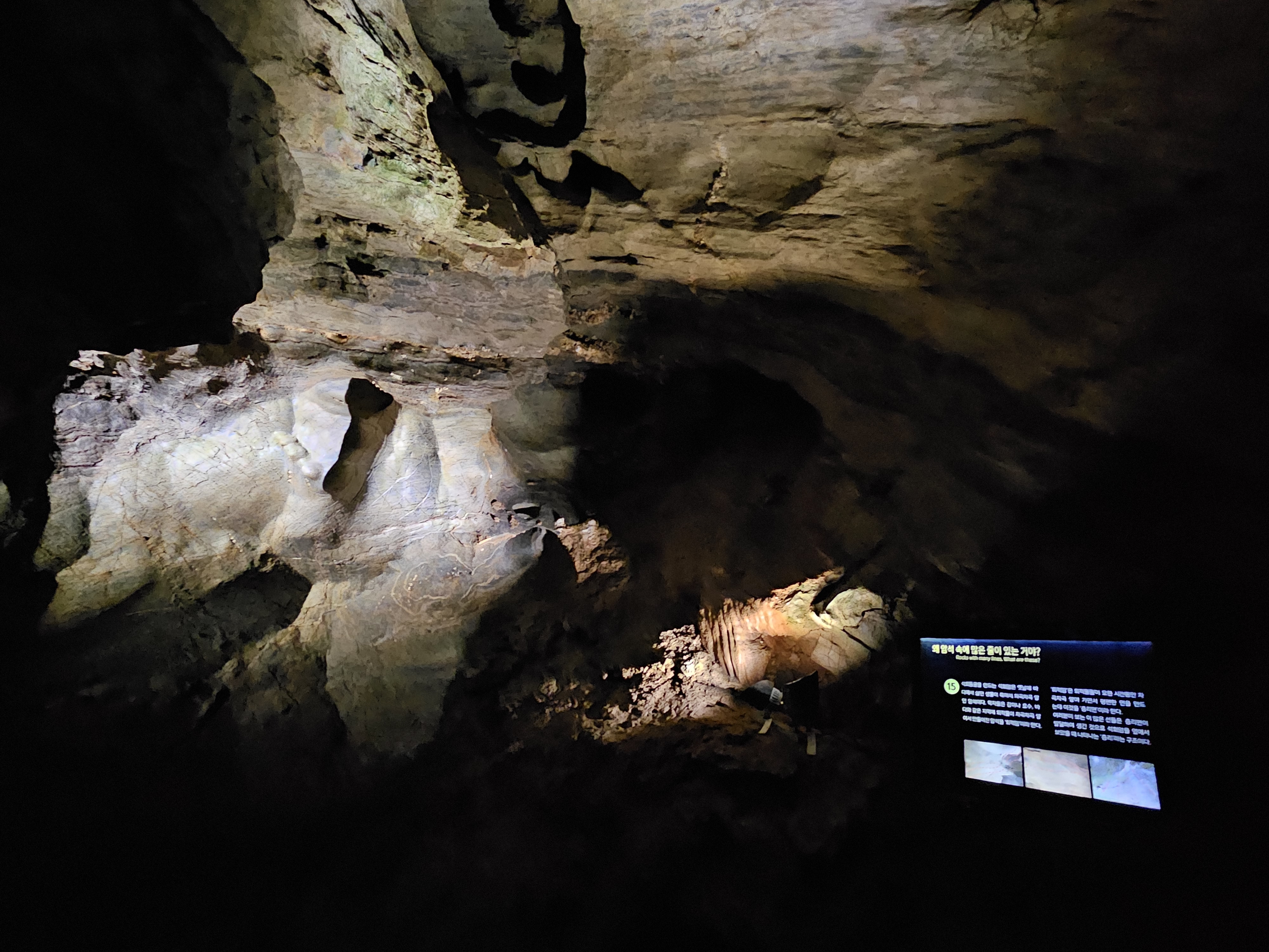석회동굴은 바다에 살던 생물이 죽어서 차곡차곡 쌓여 만들어진 암석입니다.