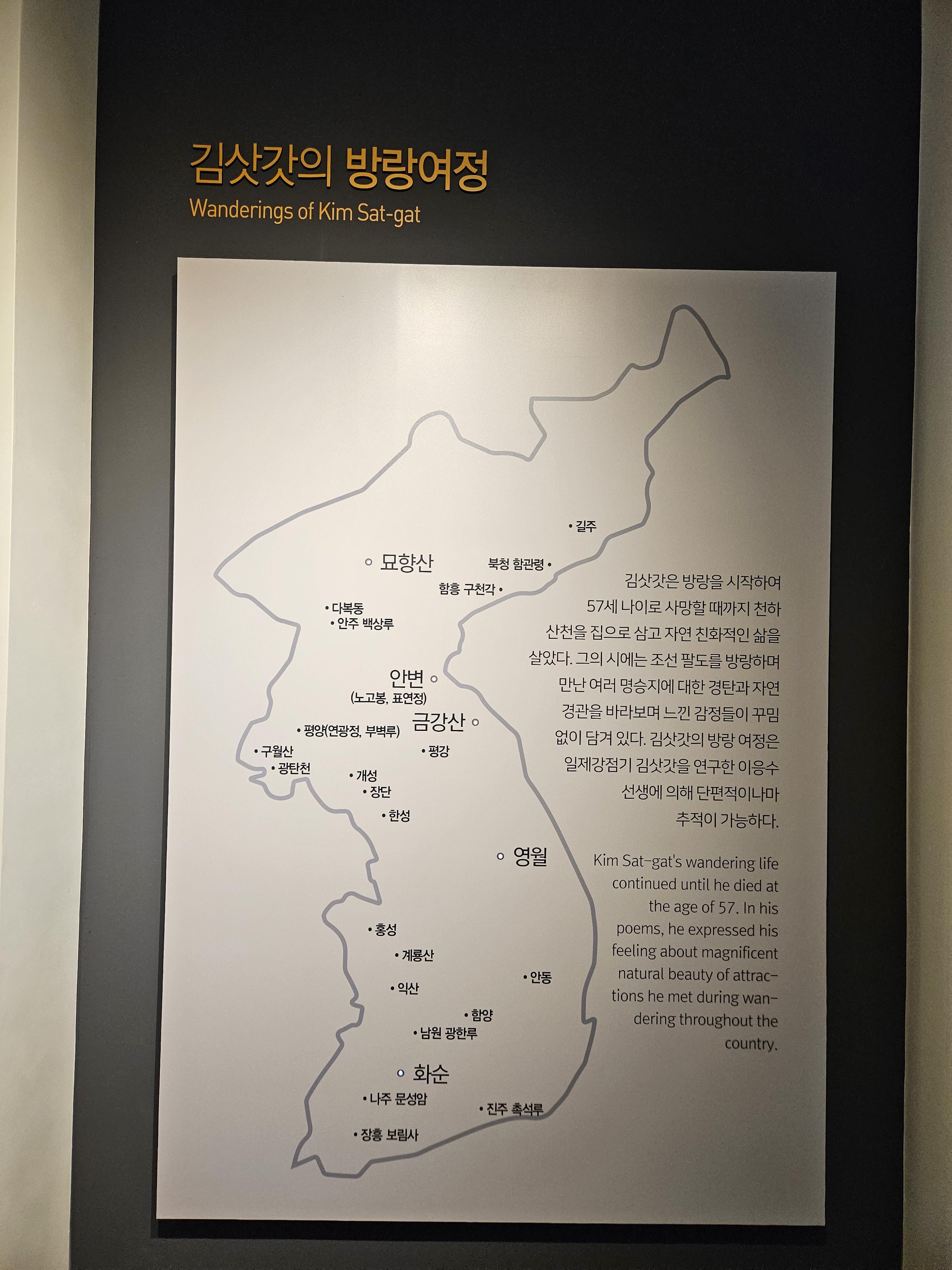 서책 전시와 애니메이션 영상, 감삿갓 시 창작 국악 듣기, 시 문구 써보기 등의 체험공간이기도 합니다.