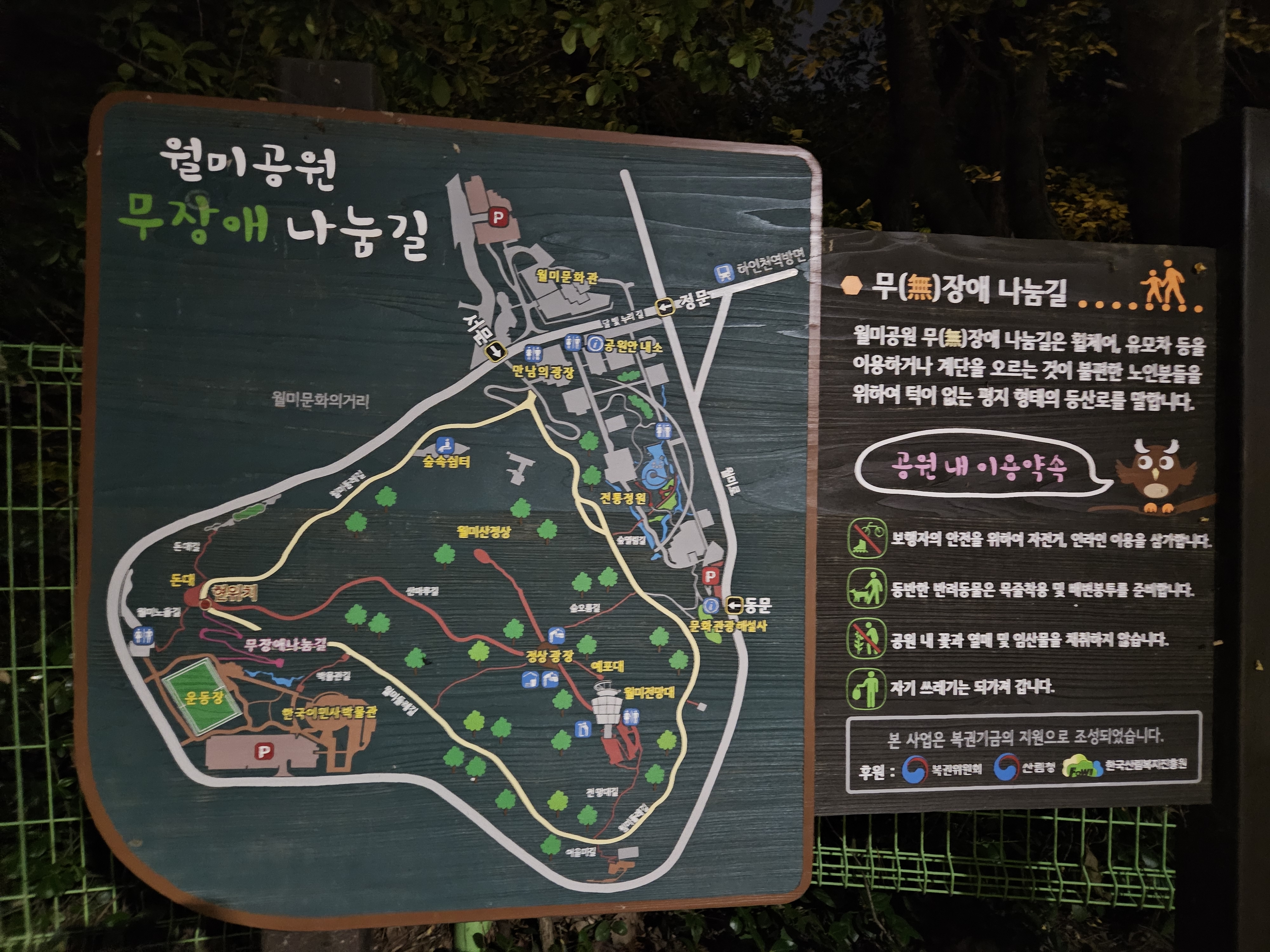 월미산 둘레길은 무장애길로 만들어져서 휠체어나 유모차를 끌고 정상까지 갈 수 있습니다.