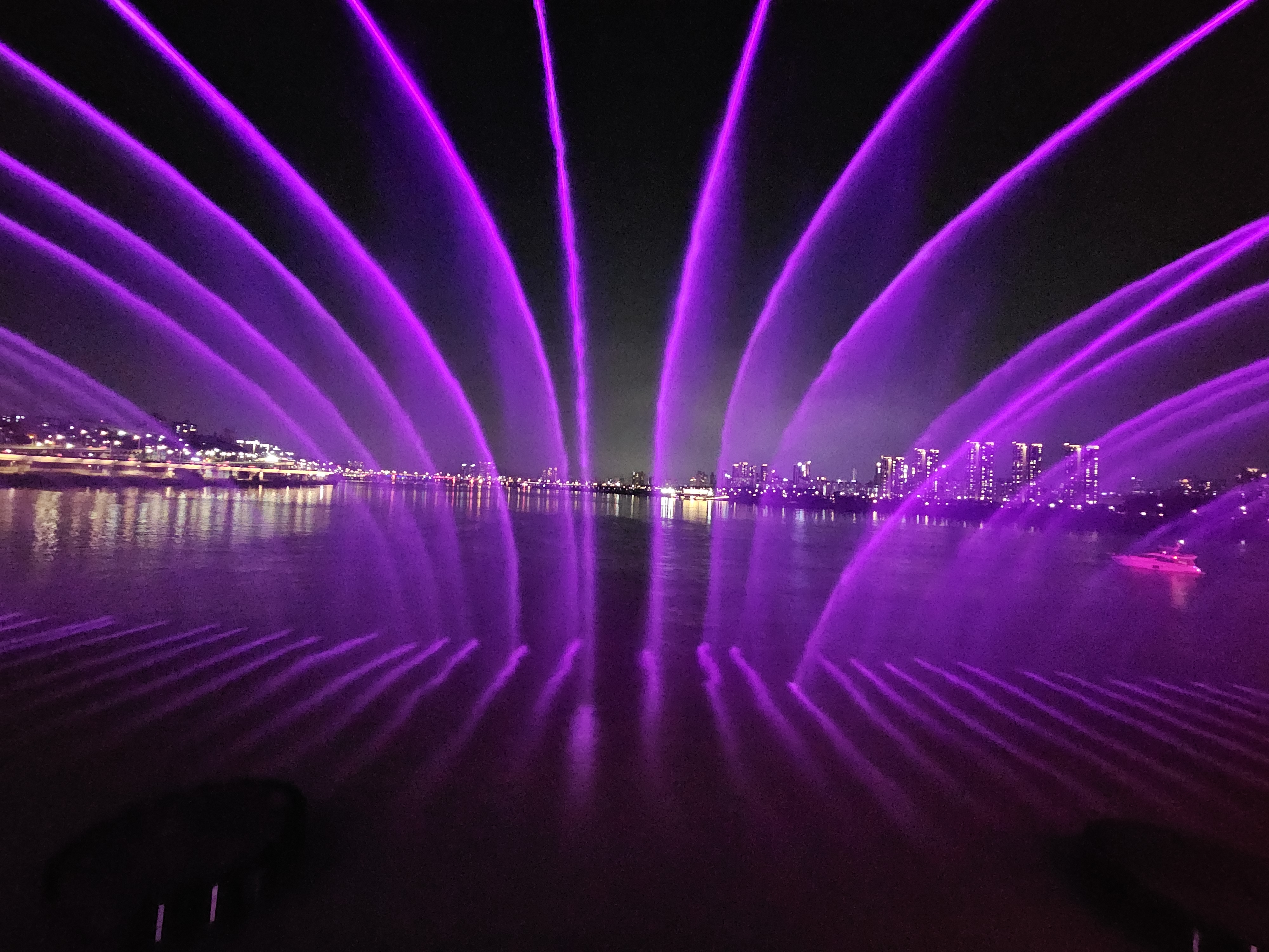 반포대교 달빛무지개분수는 주로 동쪽 분수를 틀어 주는데, 처음으로 세빛섬 방향의 서쪽 분수를 틀어주는 모습을 봤습니다.