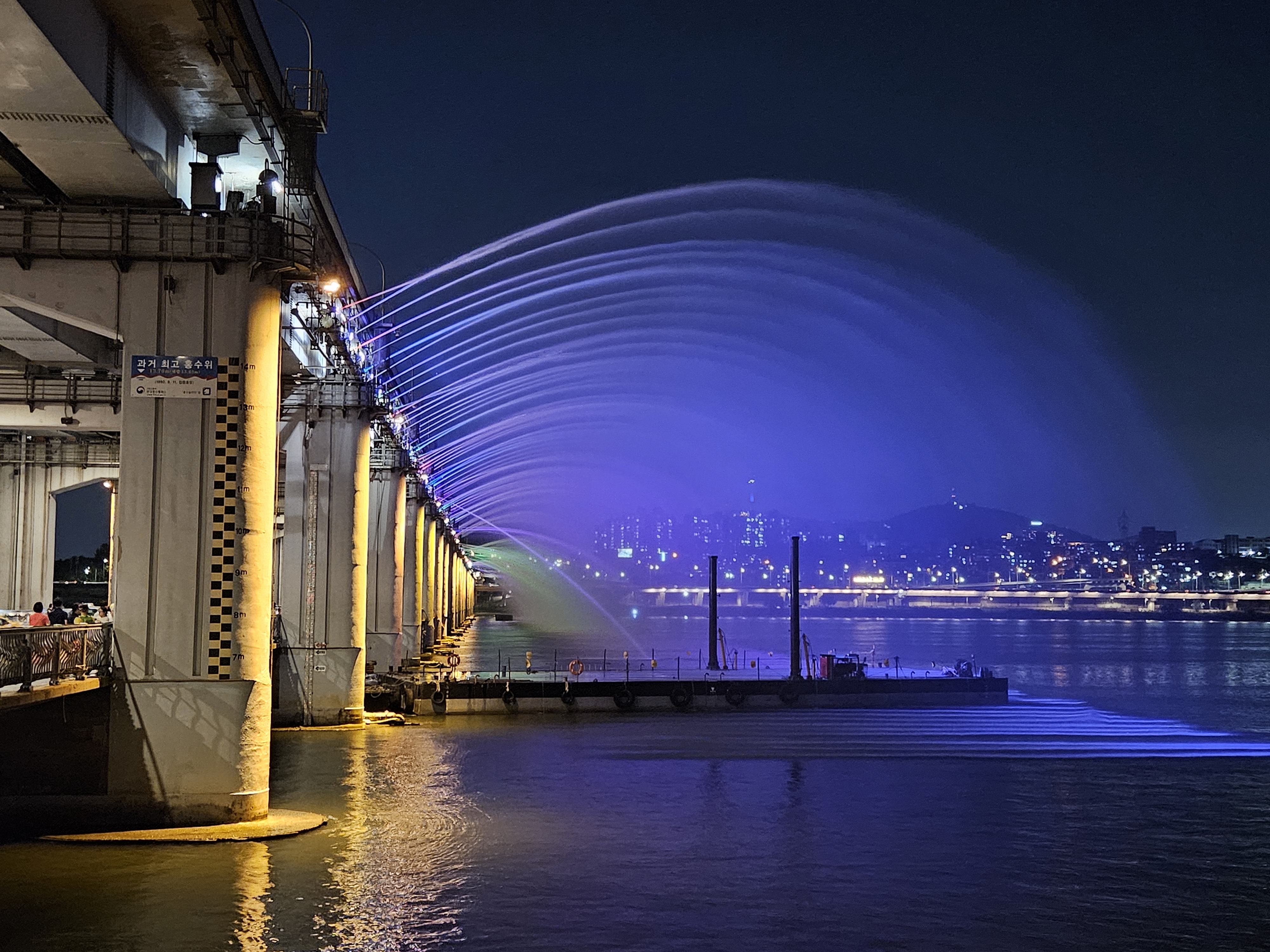 반포대교 아래 잠수교에서 바라본 달빛무지개분수