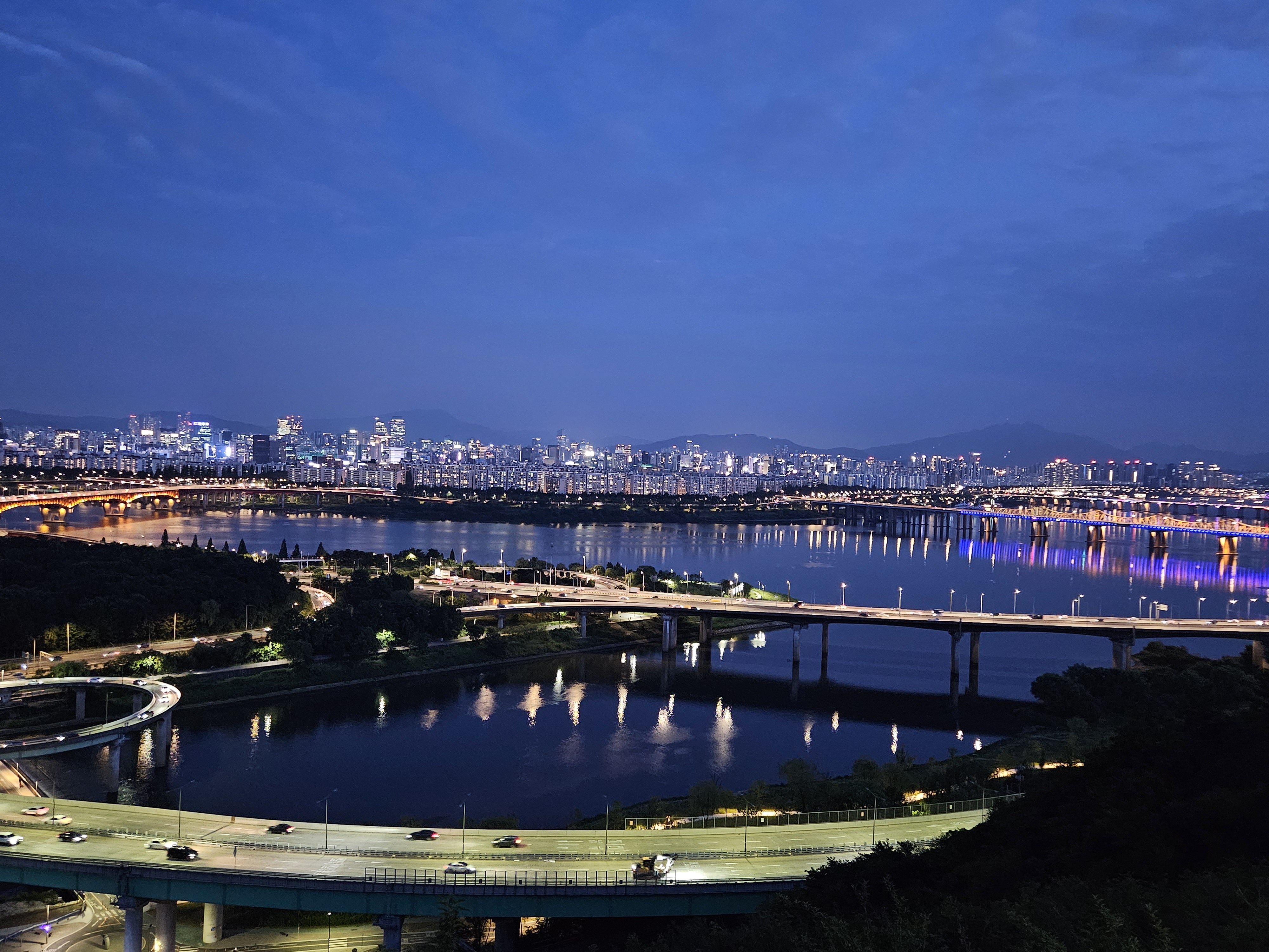 한강야경을 찍은 사진은 갤럭시 S23이며, 아무런 효과 없이 카메라에 담은 사진입니다.
