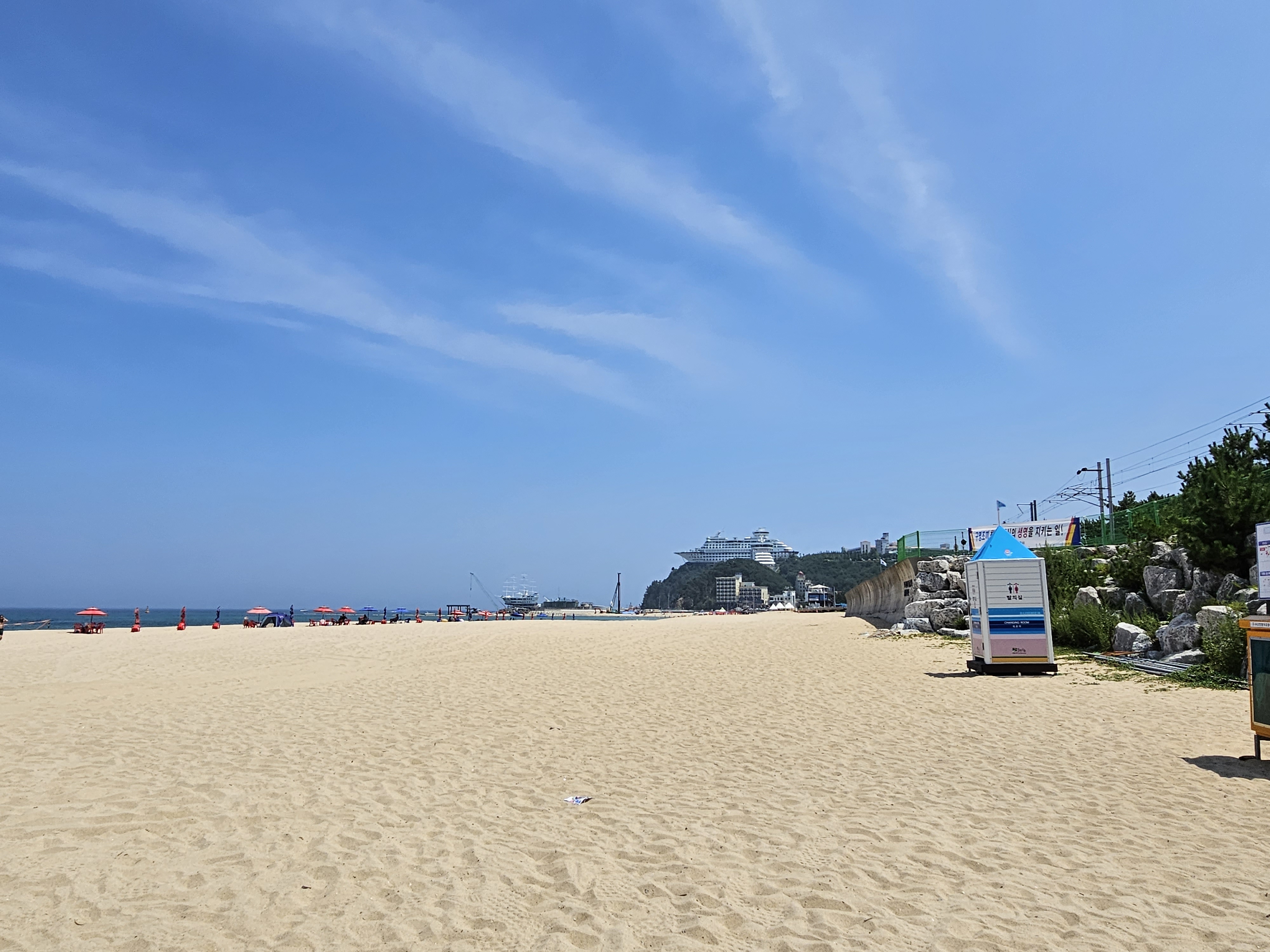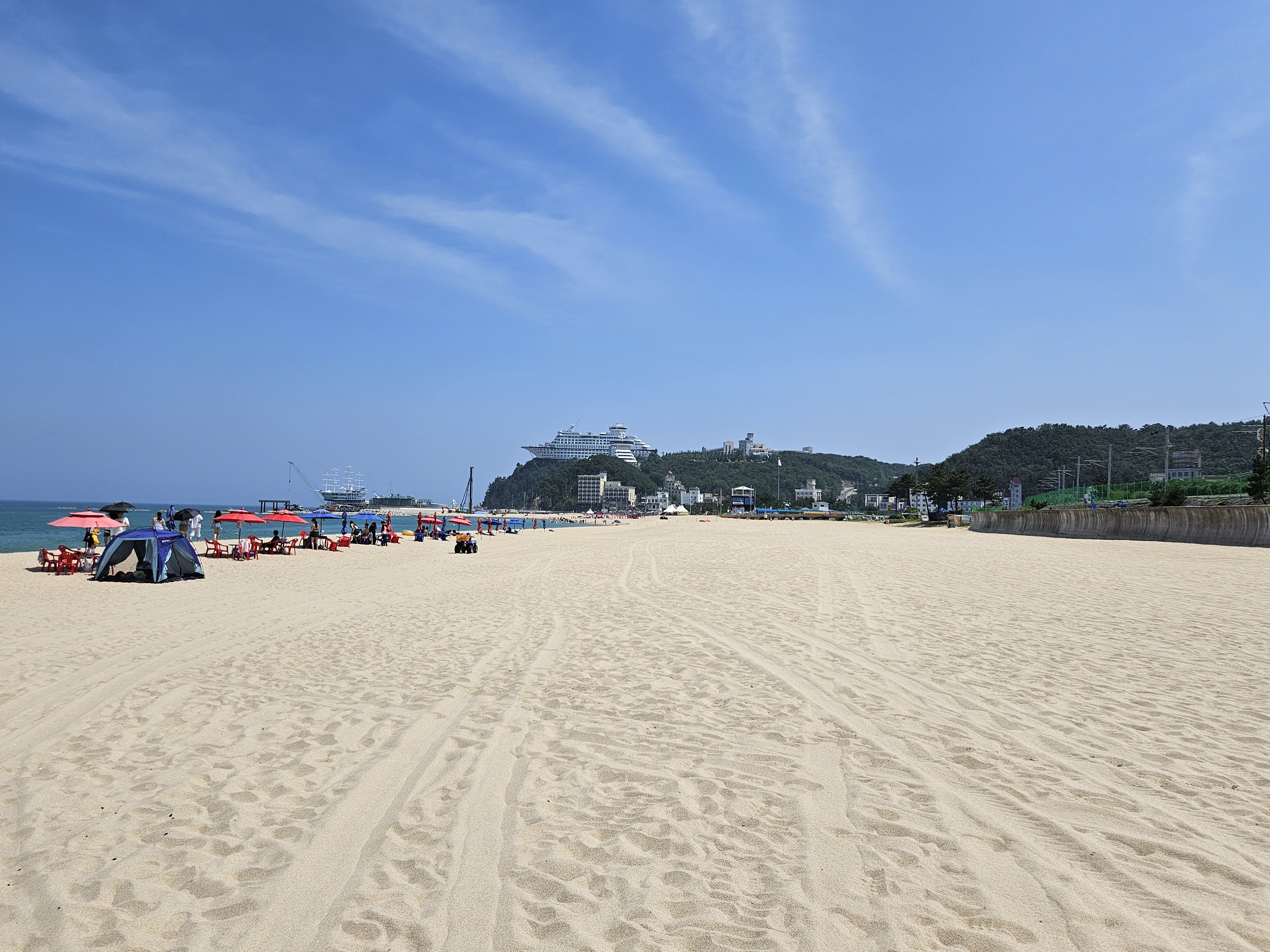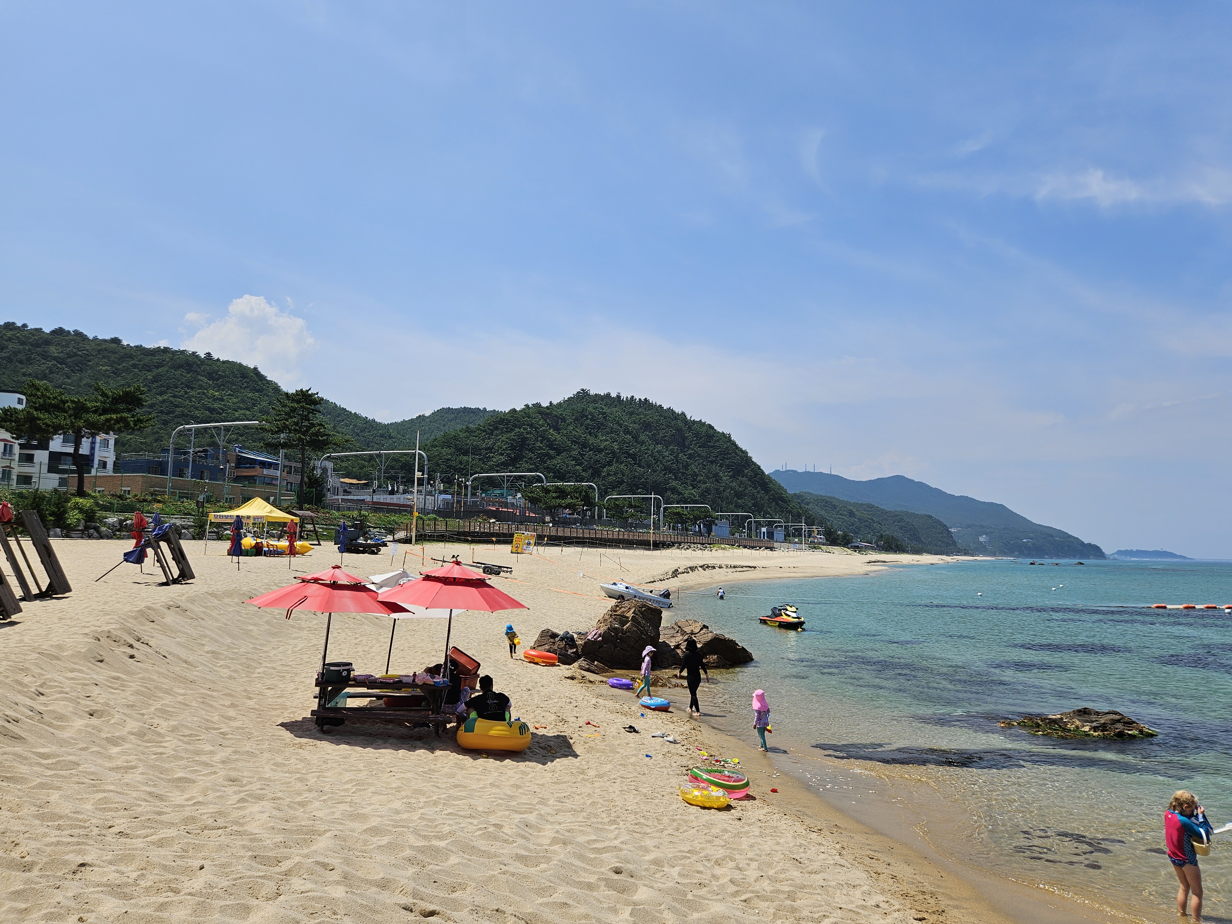 바닷물이 깨끗하고 긴 백사장과 고운 모래, 수심이 얕고 경사가 완만하여 안전하게 즐길 수 있는 해변이죠.