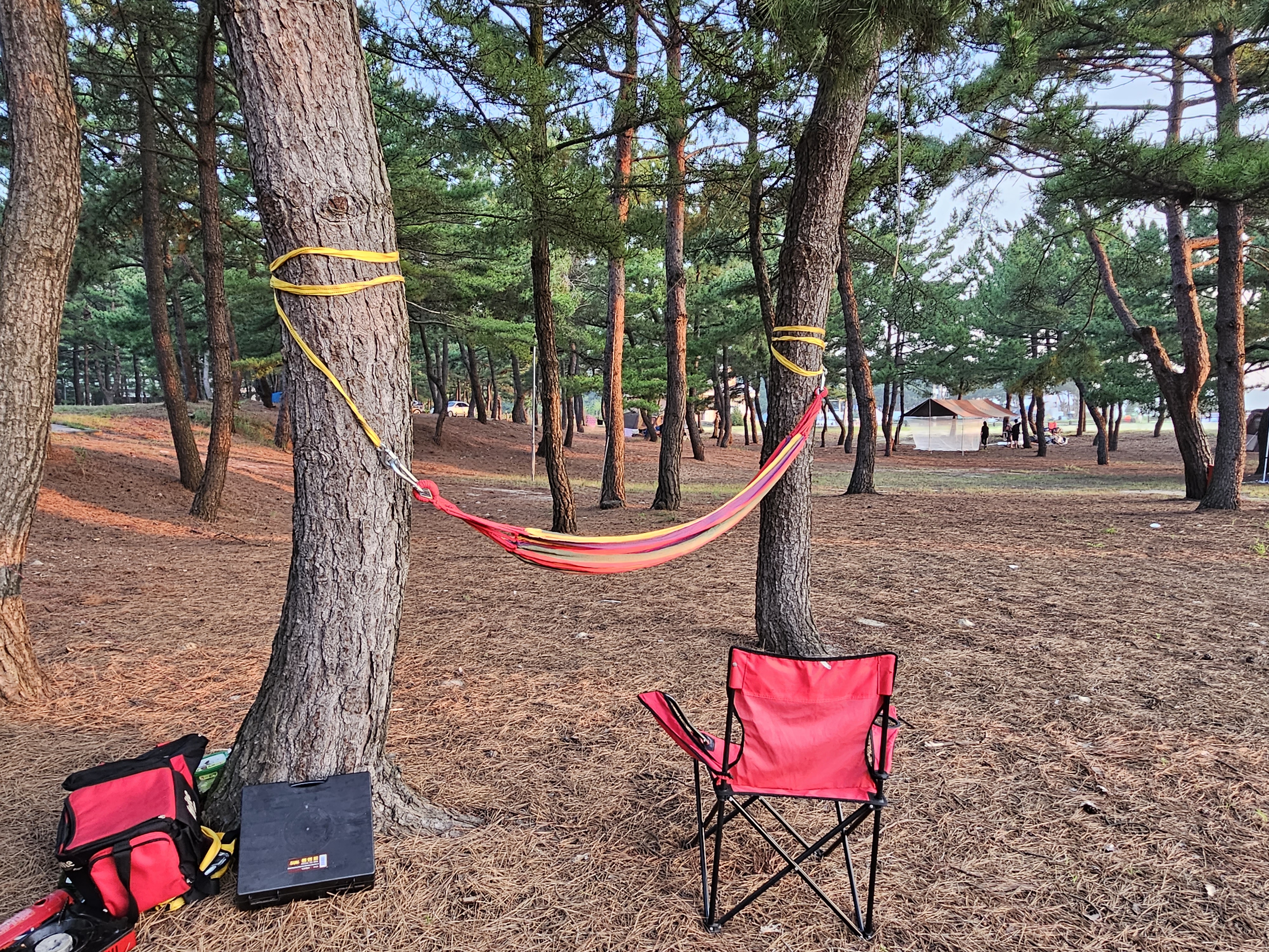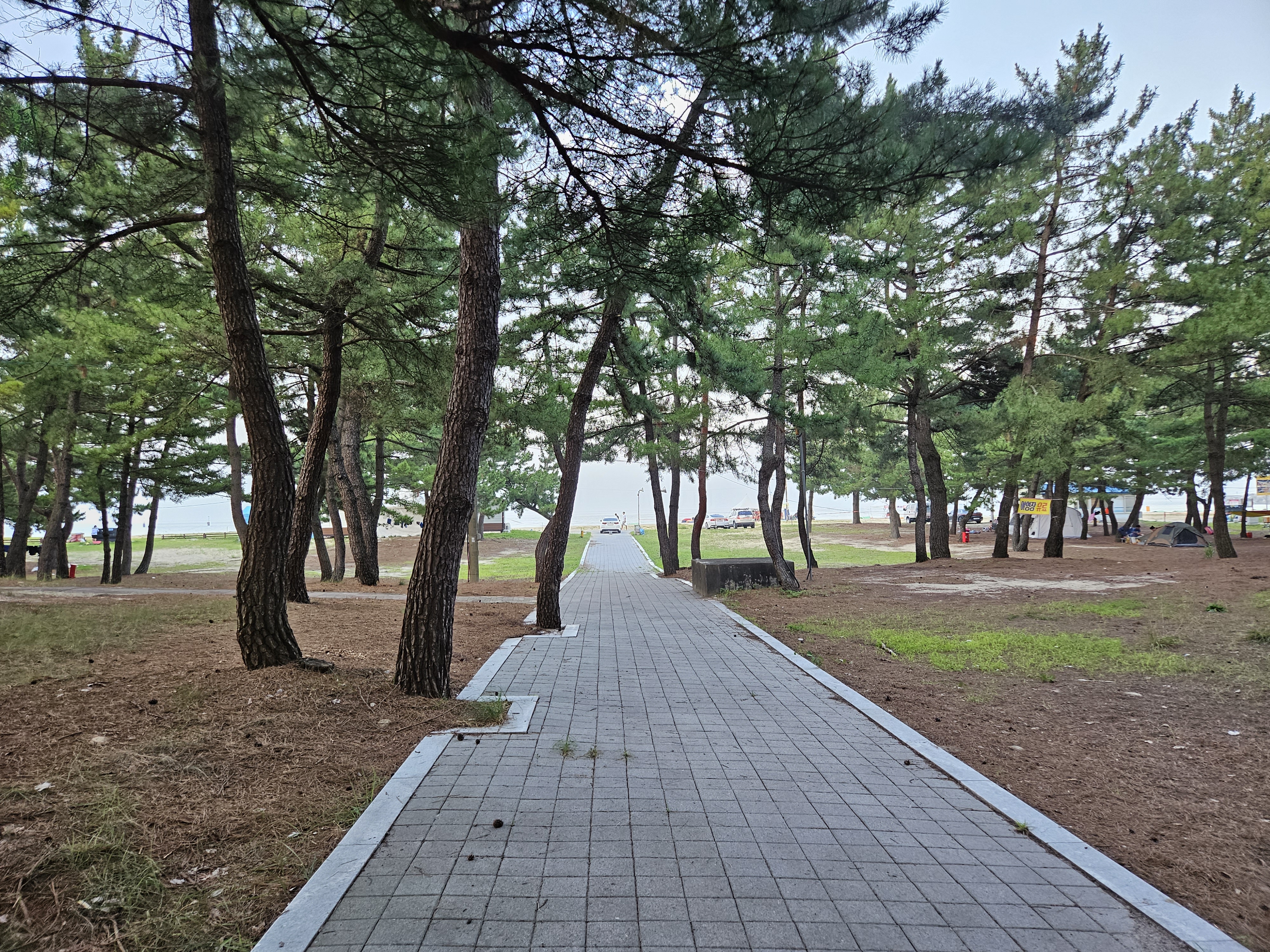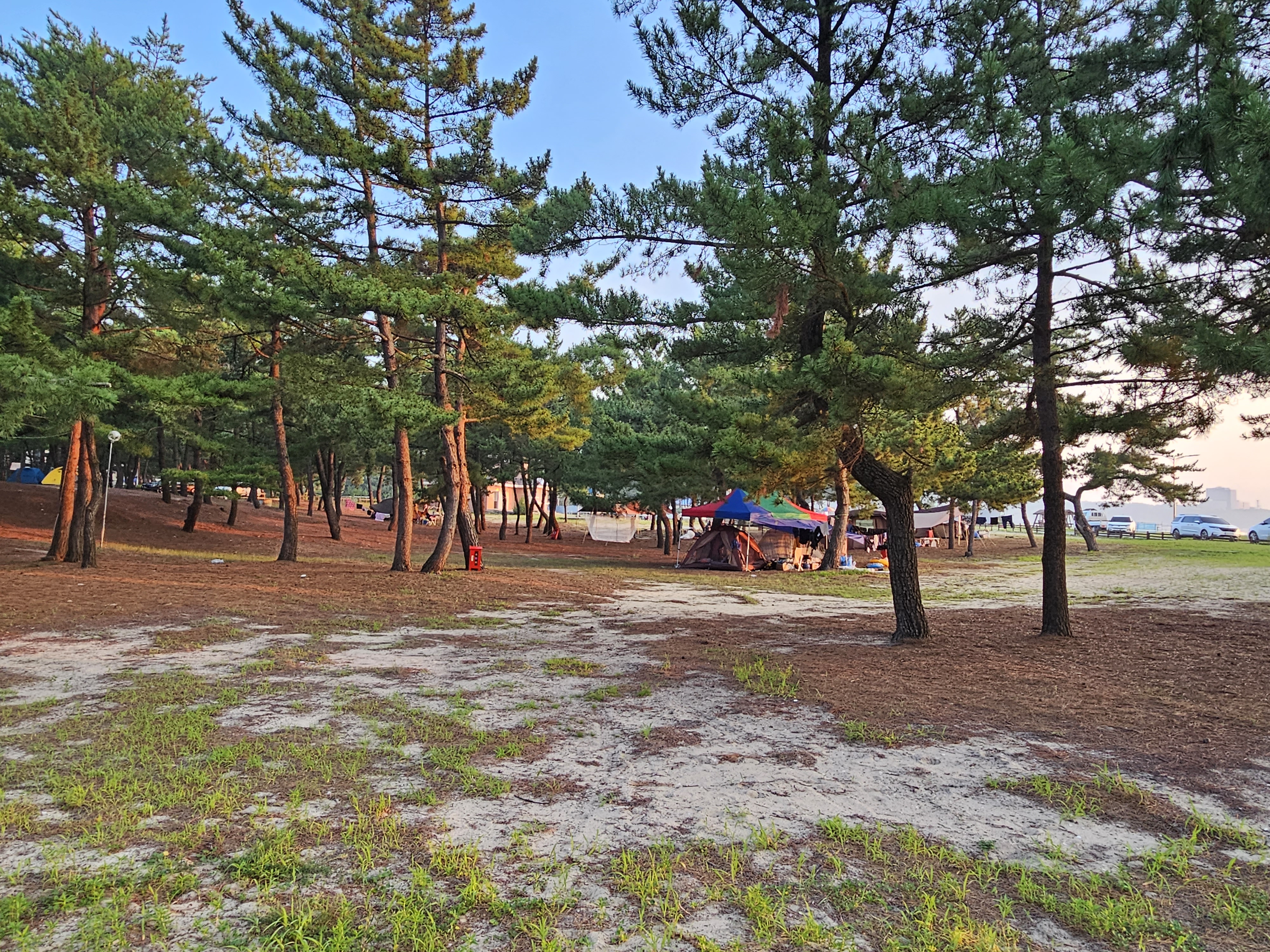 깨끗하고 넓은 백사장과 수령이 40여 년 된 송림지역이 울창하게 있어 야영장으로는 이 만한 곳도 없을 듯싶었습니다.