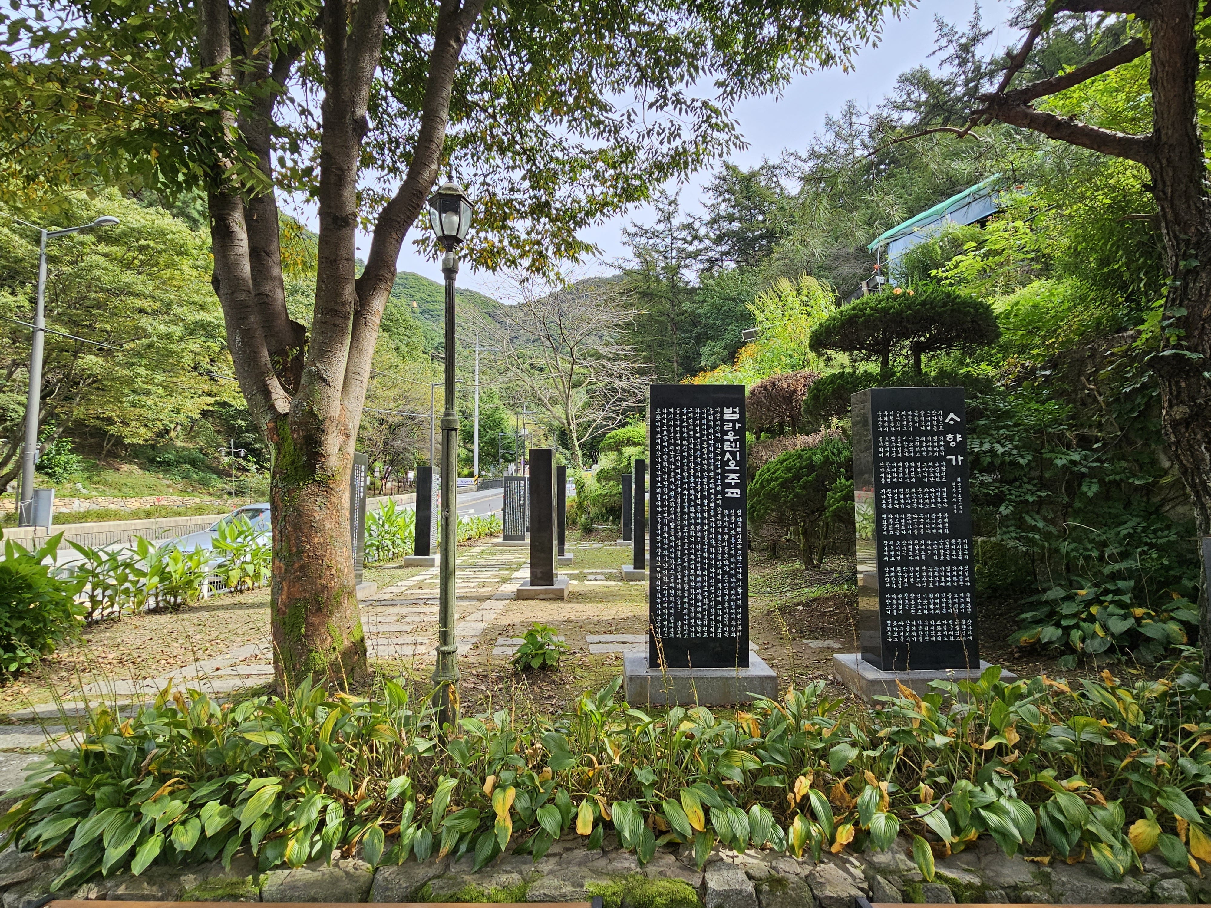 수리산 성지 앞으로 수리산 계곡물이 흐르고 있습니다.