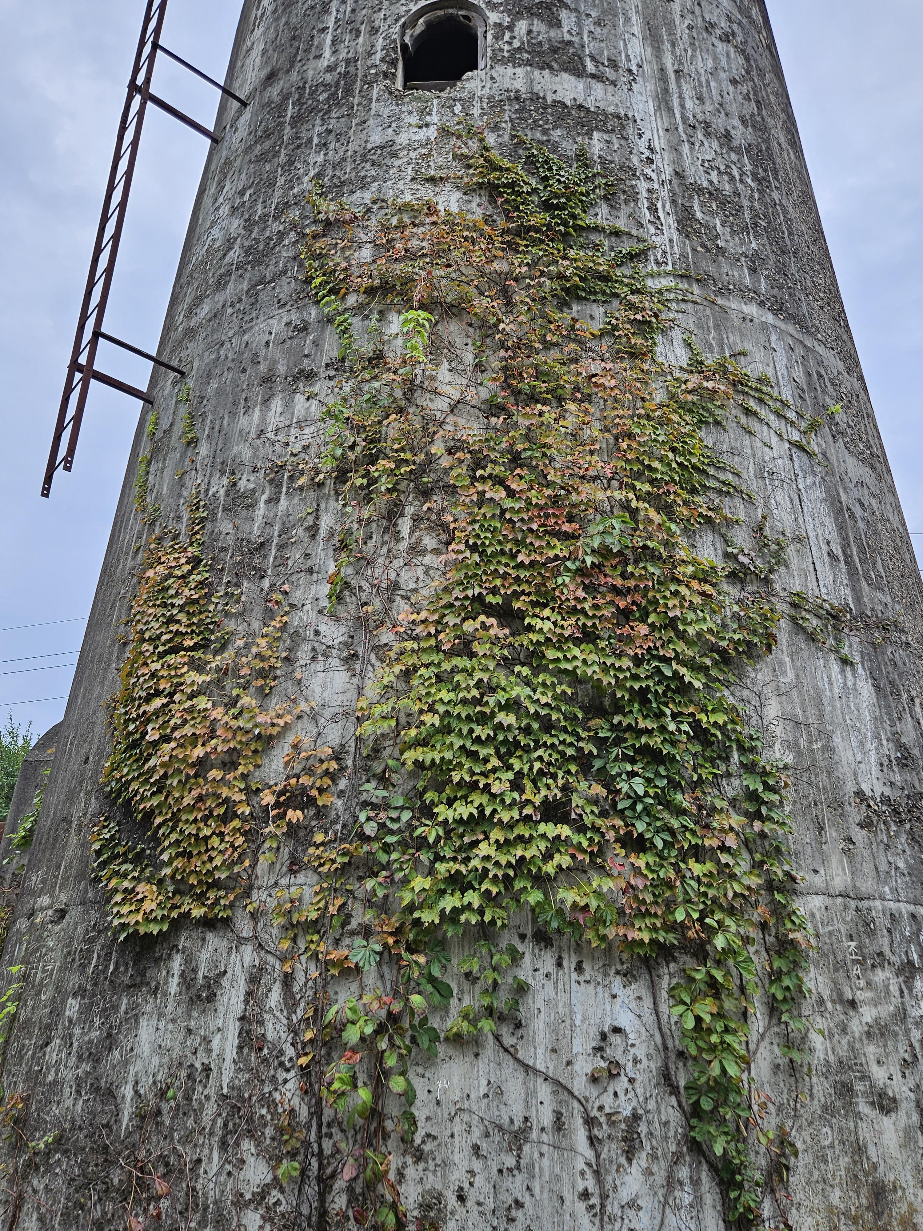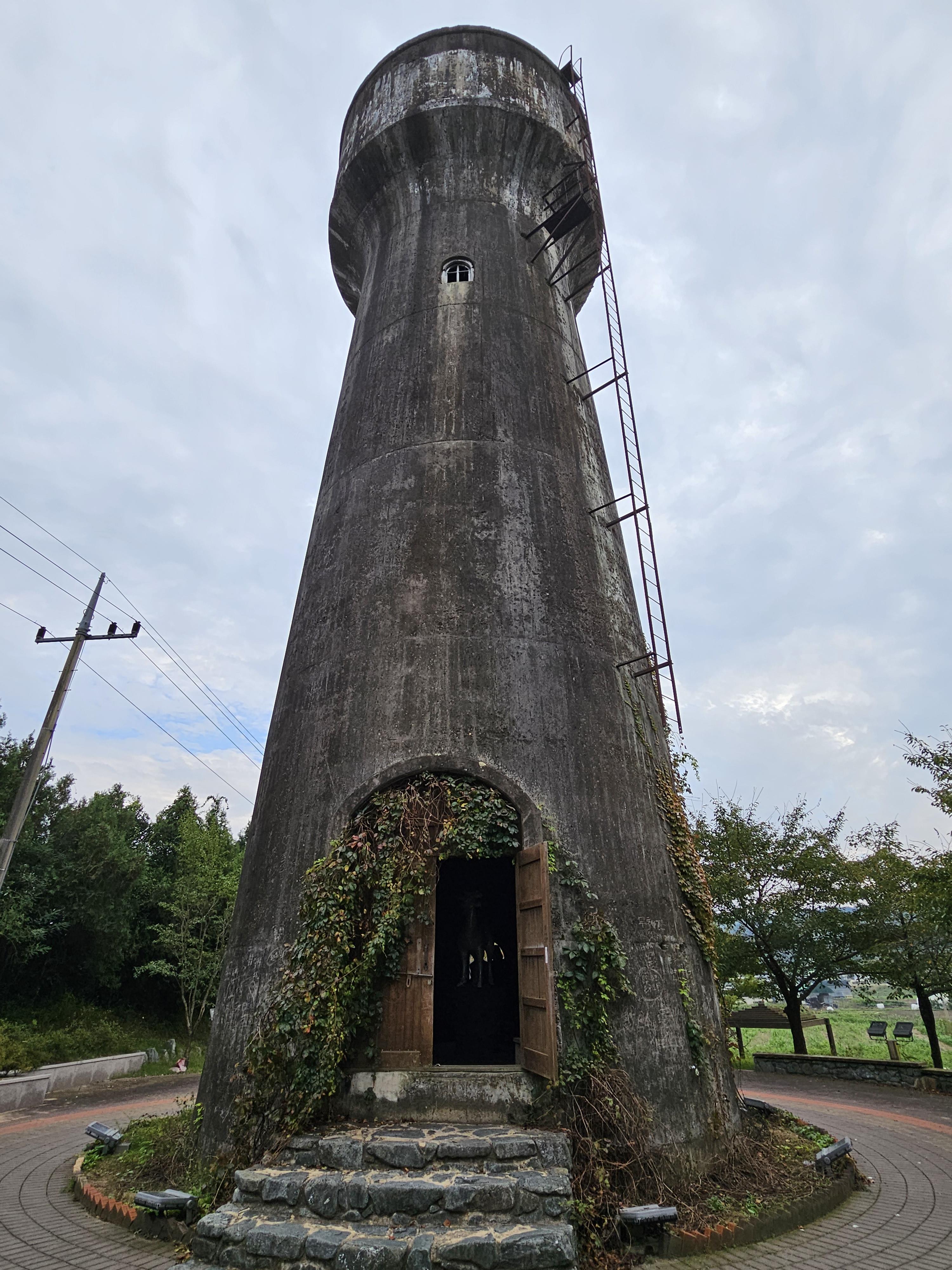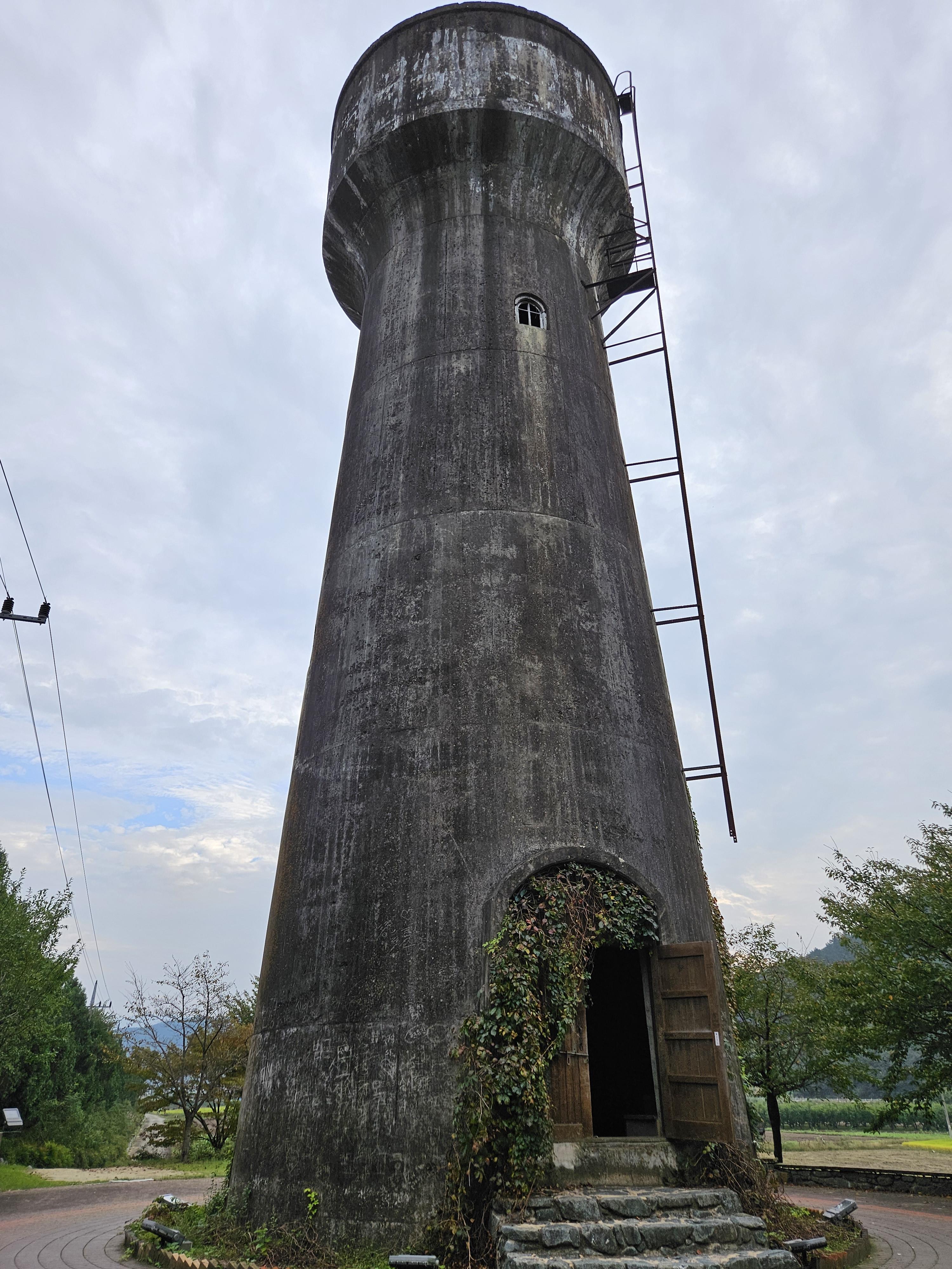 높이가 25미터, 하단 지름이 5미터, 상부 물저장 탱크 지름이 4미터에 달하고 외부에서 담쟁이덩굴로 싸여 이색적인 모습을 볼 수 있습니다.