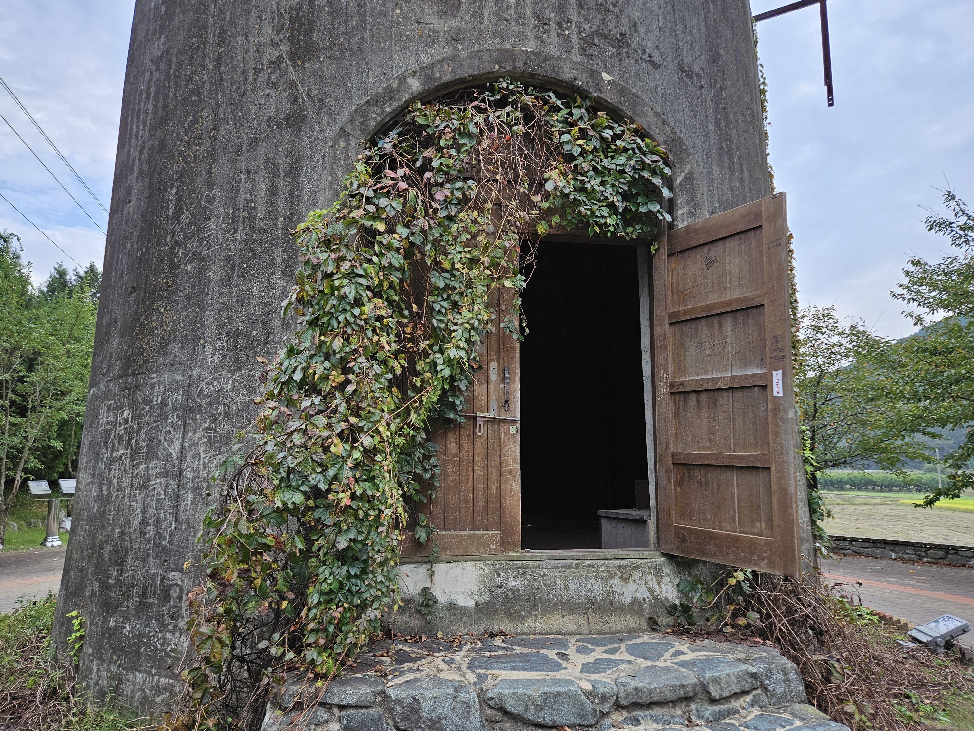 담쟁이덩굴로 덮인 화본역 급수탑