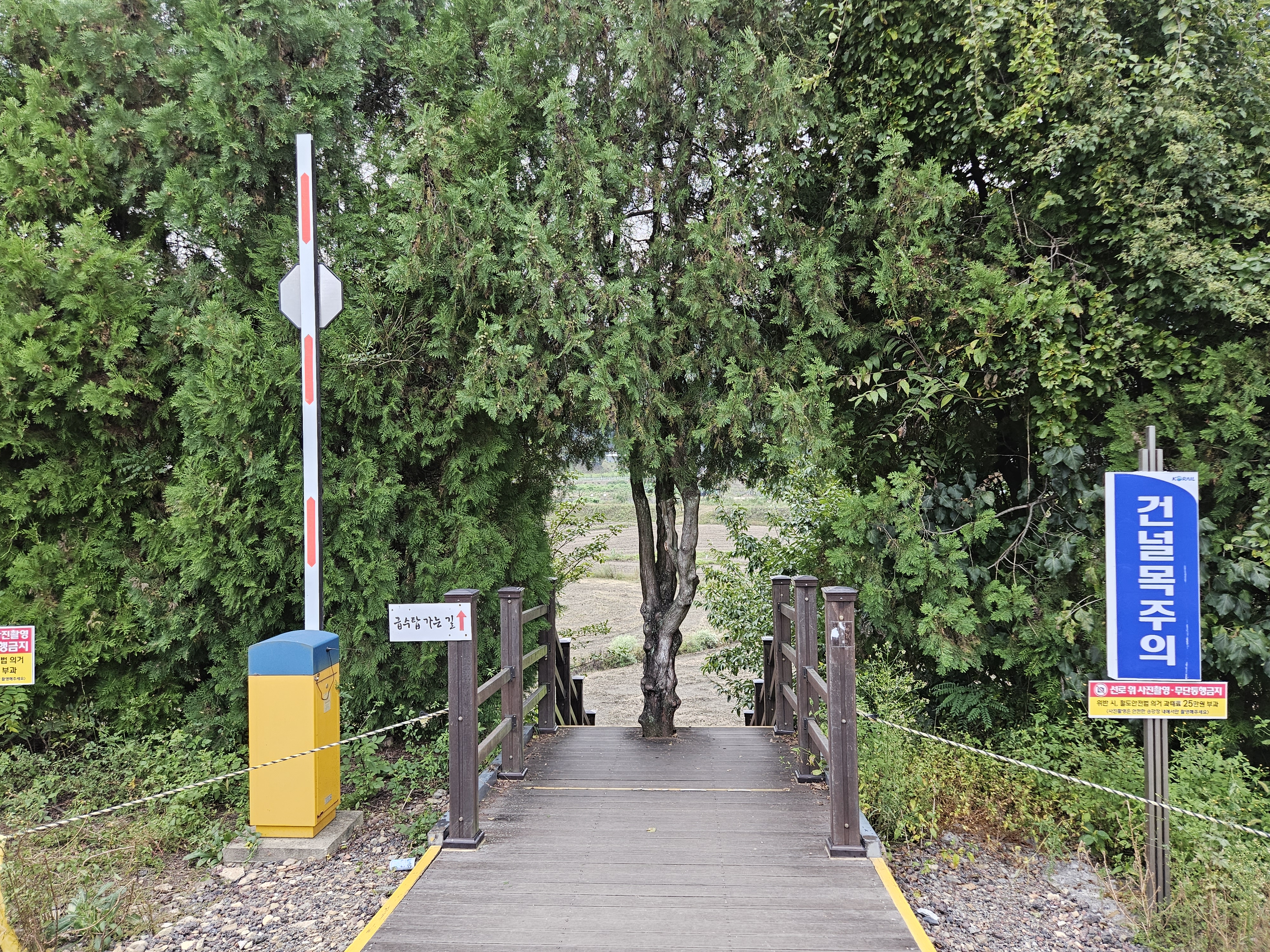 철로 건너엔 오래된 화본역 급수탑을 볼 수 있는 길로 이어집니다.