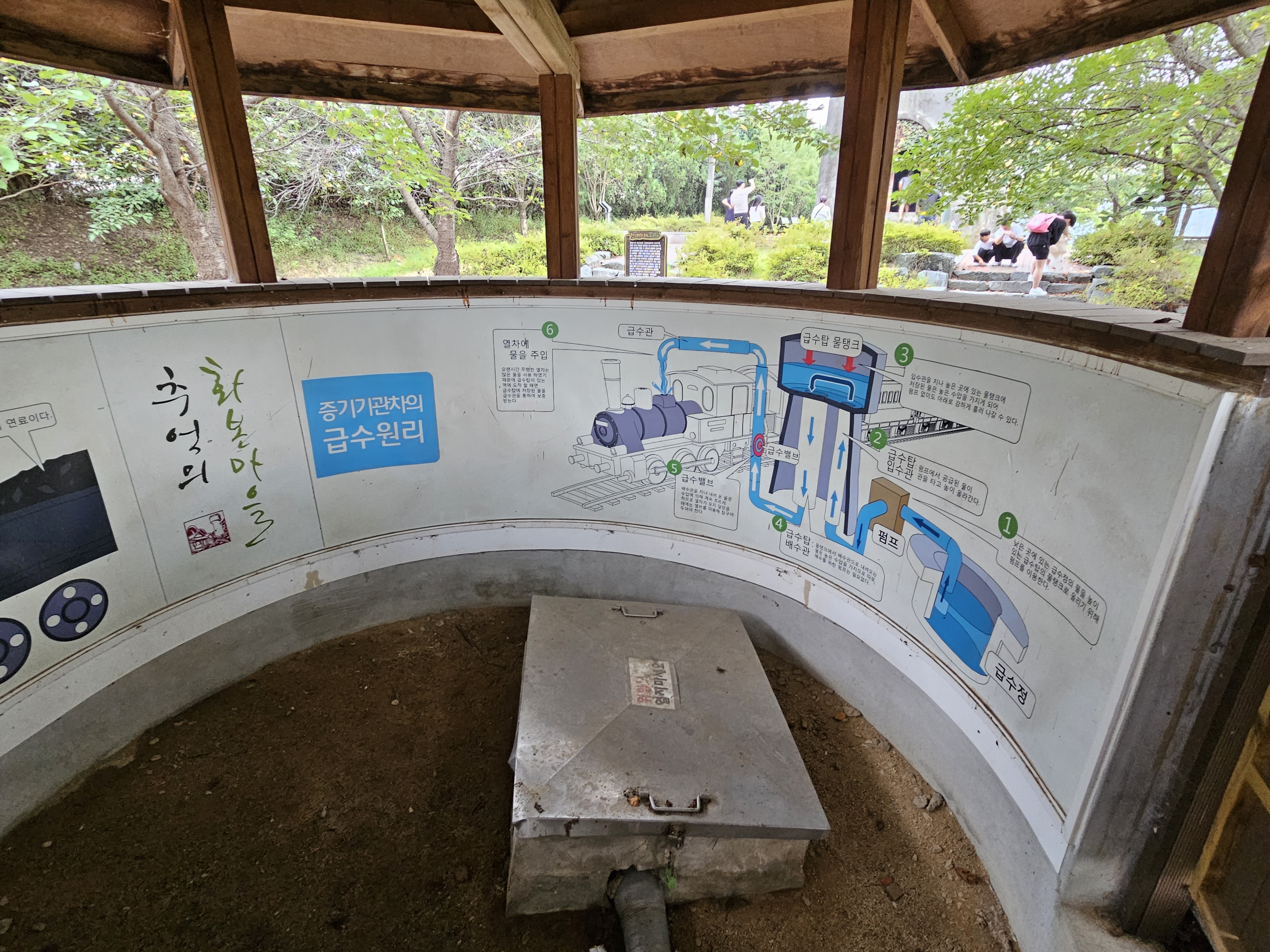 지금은 우물은 메꿔진 상태이며, 안에 증기기관차의 급수원리, 증기기관차의 작동원리에 대한 설명을 해놓고 있습니다.