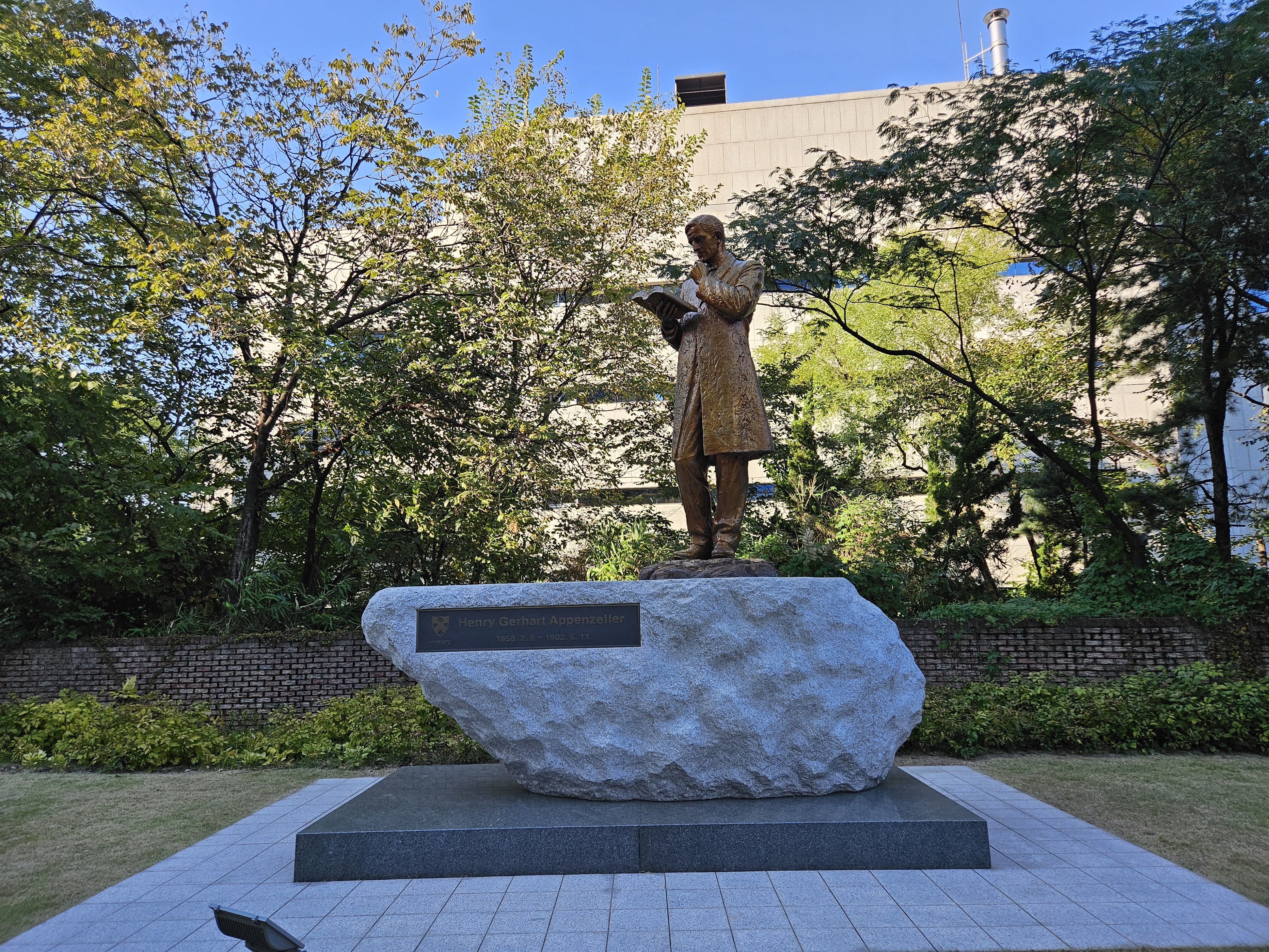 배재학당역사박물관에서 나오면 헨리 게어하드 아펜젤러 동상이 있습니다.