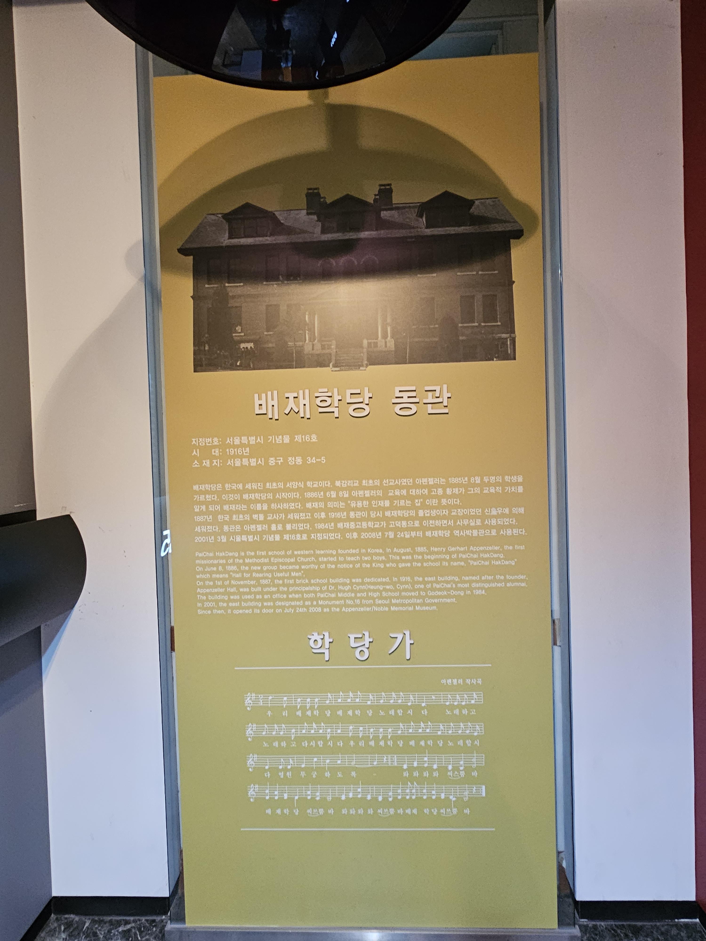 1916년에 배재학당 동관이 준공되었고, 2001년에 서울시 기념물로 지정, 2008년에 배재학당역사박물관을 개관했습니다.