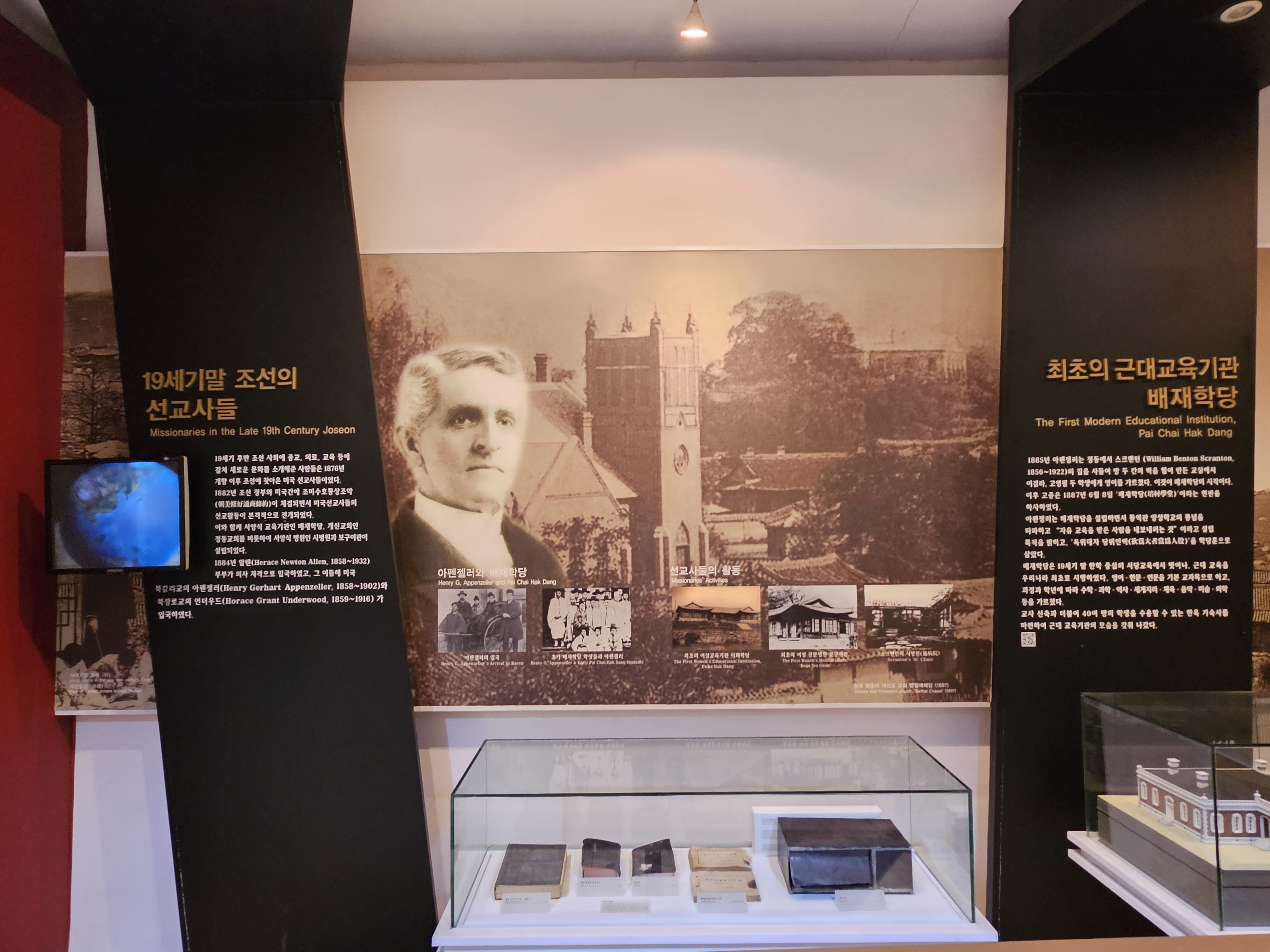 헨리 게르하트 아펜젤러(Henry Gerhart Appenzeller, 1858~1902년)의 선교여행, 기독교 정신을 바탕으로 설립한 배재학당, 아버지의 뒤를 이어 한국 기독교와 교육에 헌신한 그 자녀들의 일대기를 전시하고 있습니다.