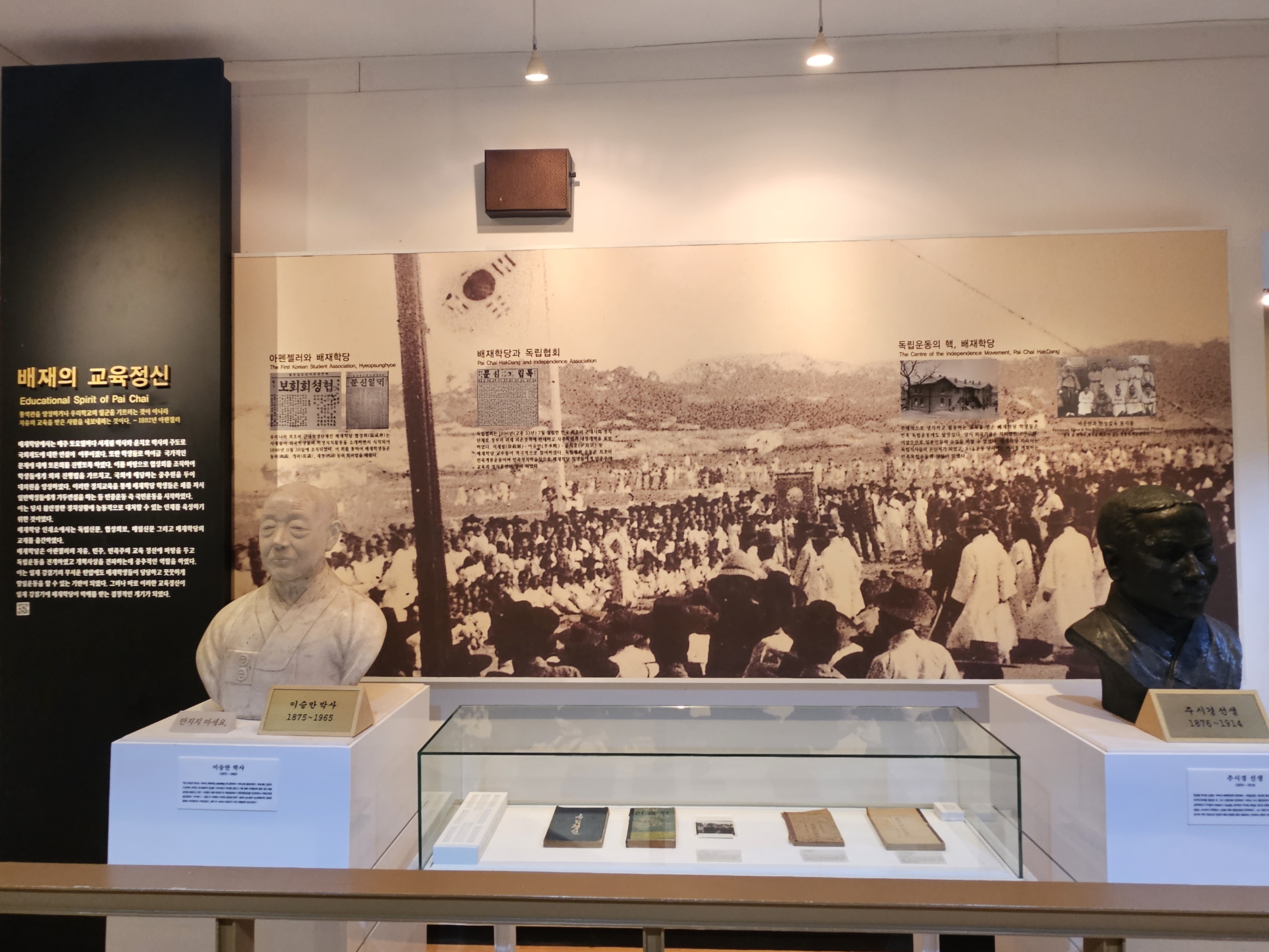 이승만 전 대통령과 주시경 선생이 배재학당 출신이며, 이승만은 초기 아펜젤러의 제자 중 한 명이었습니다.
