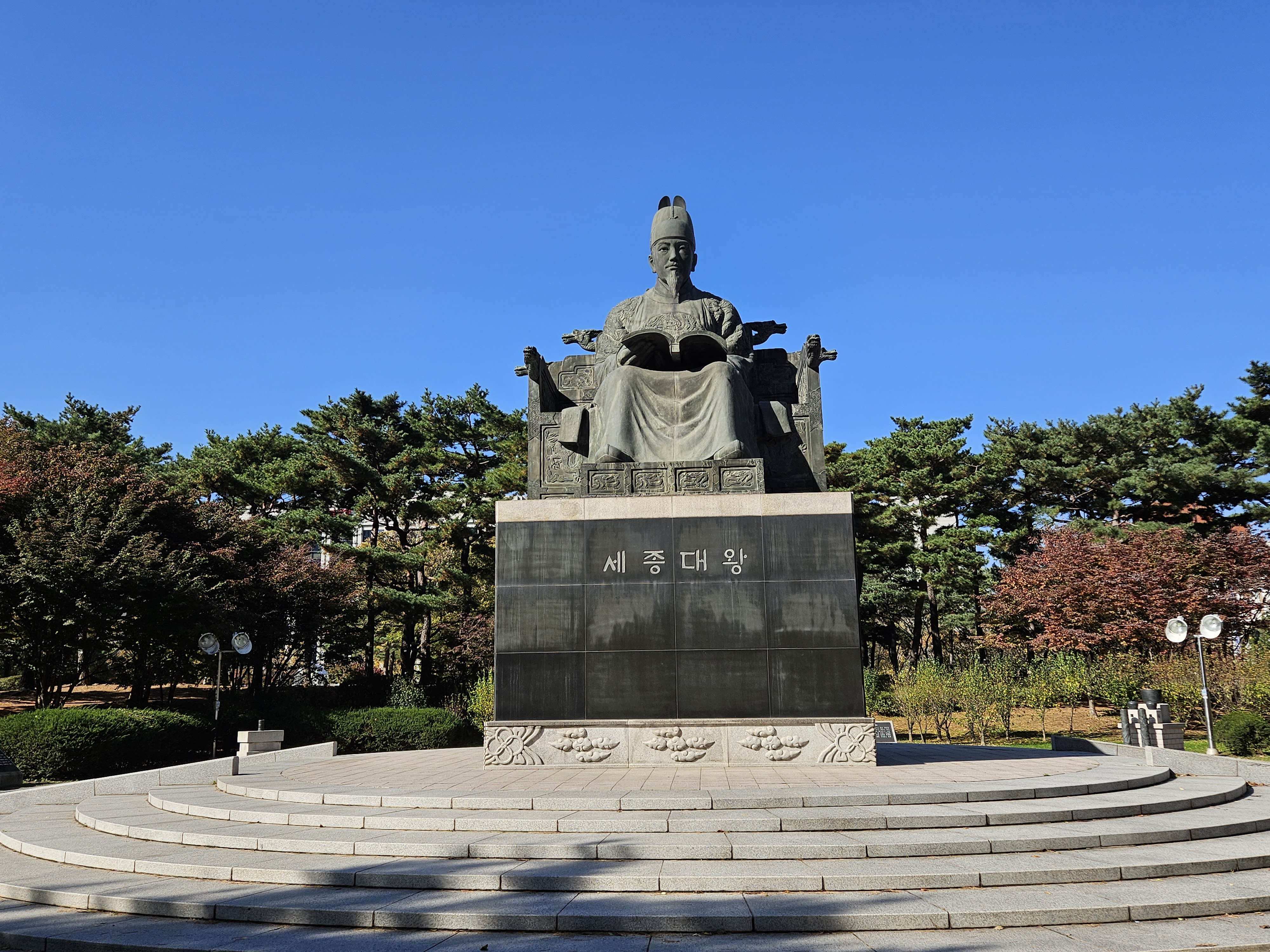 세종대왕 동상이 있는 지점부터 남쪽으로 해서 북쪽으로 돌아 나오는 타원형 산책로를 따라 걸었습니다.