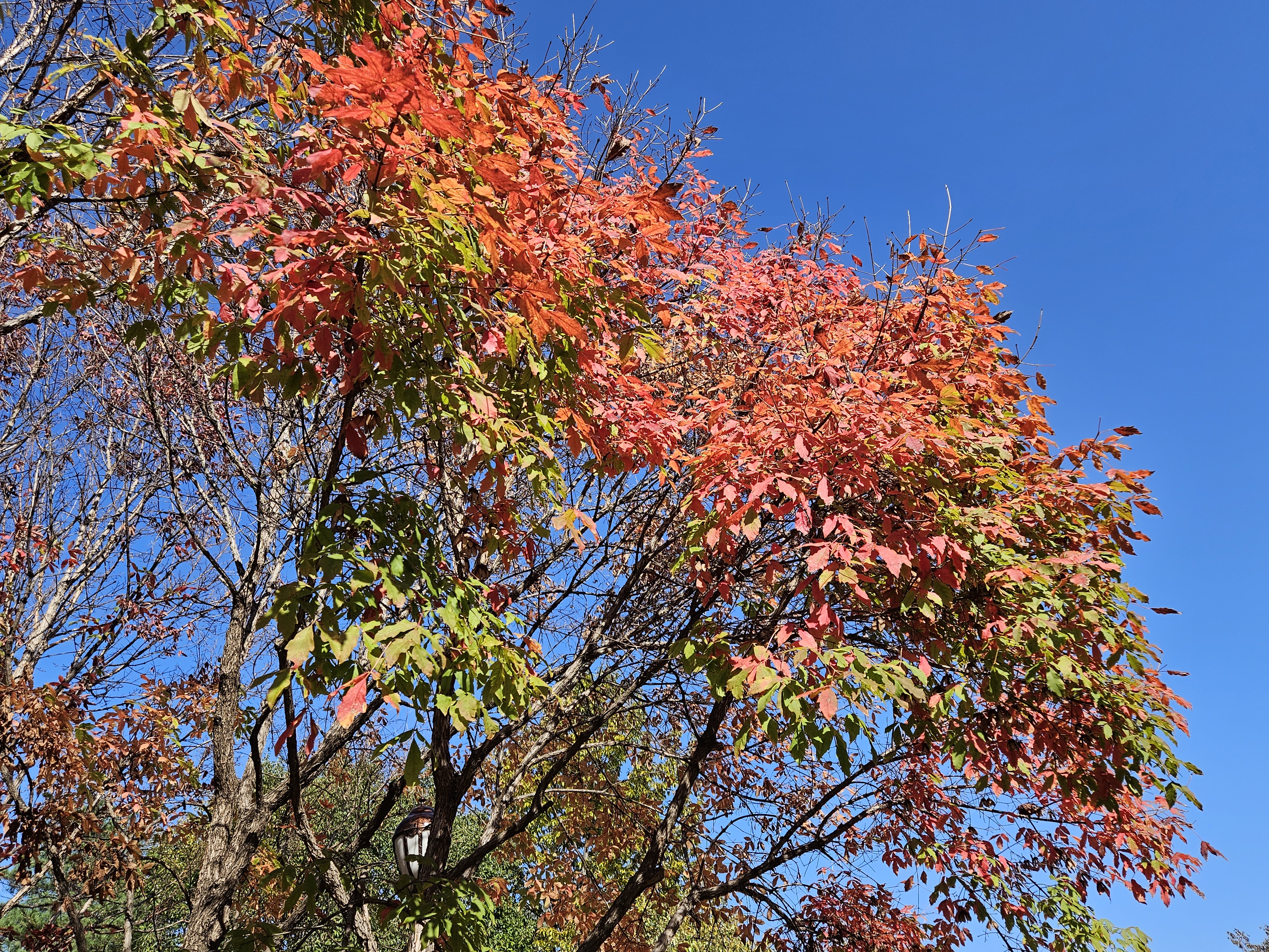 단풍나무는 아직 초록빛이 훨씬 많네요.