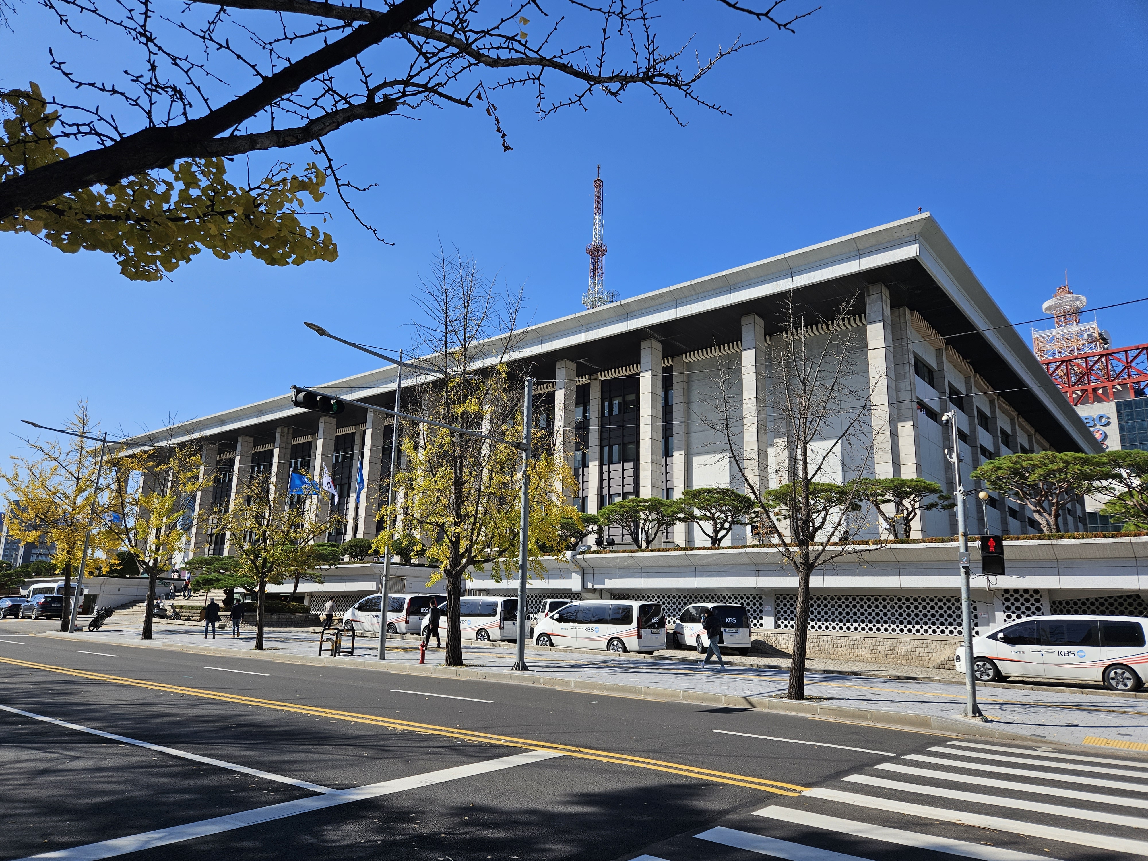 한국방송공사(KBS) 수신료 분리 징수를 위한 방송법 시행령 개정안이 국무회의를 통과한 이후 여의도 KBS 앞에 근조화환들이 길게 놓여 있습니다.