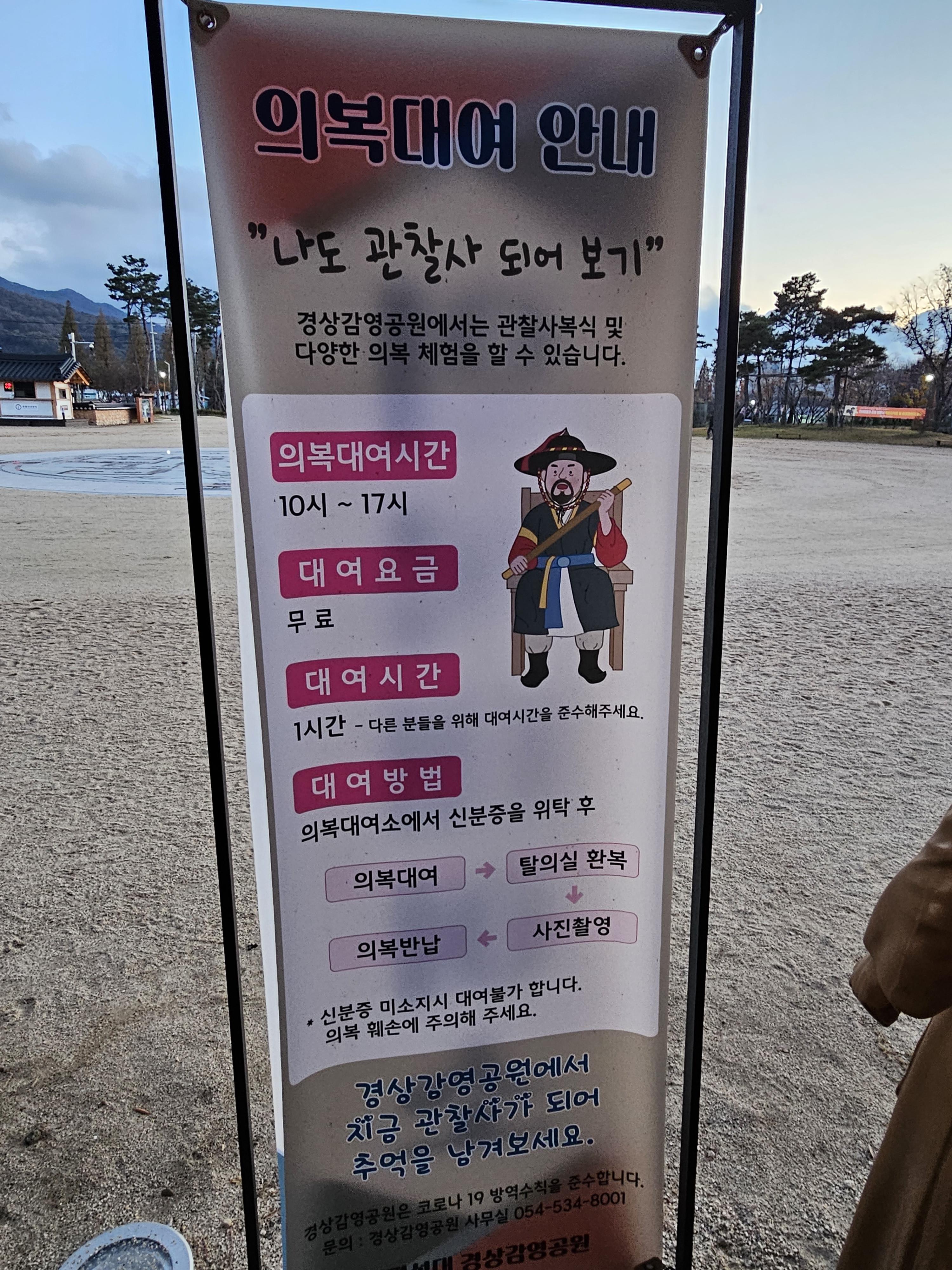 또한 경상감영공원에서는 관찰사 의복 외에도 포졸, 아전, 주막 여인 등 재미있는 의복 체험도 가능한 곳이라 아이와 함께 방문하면 좋은 곳입니다.