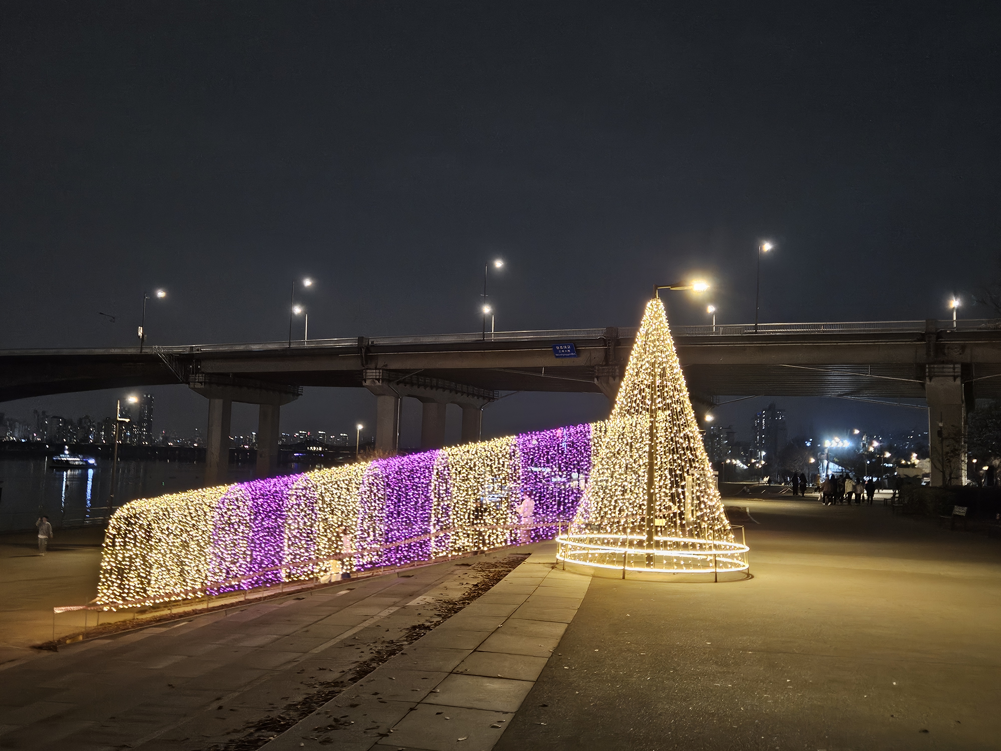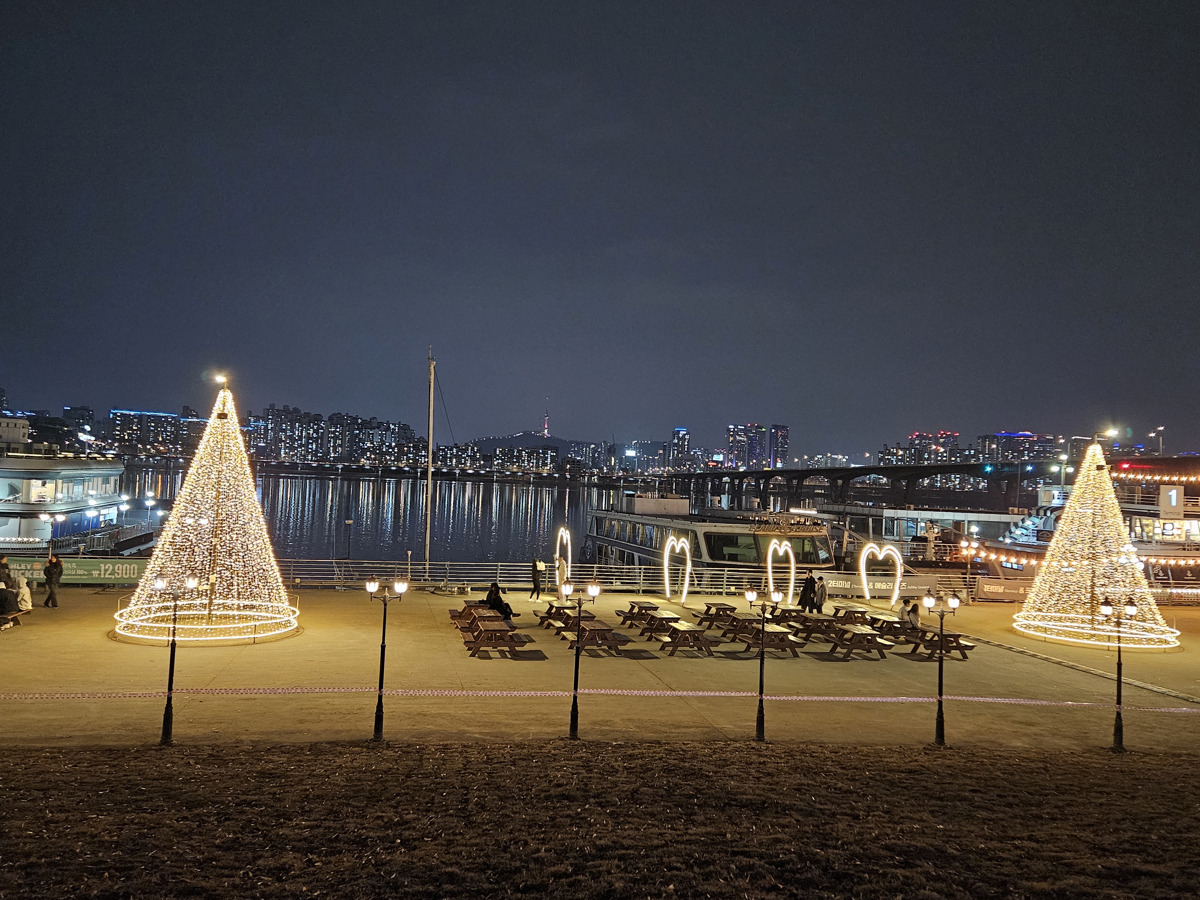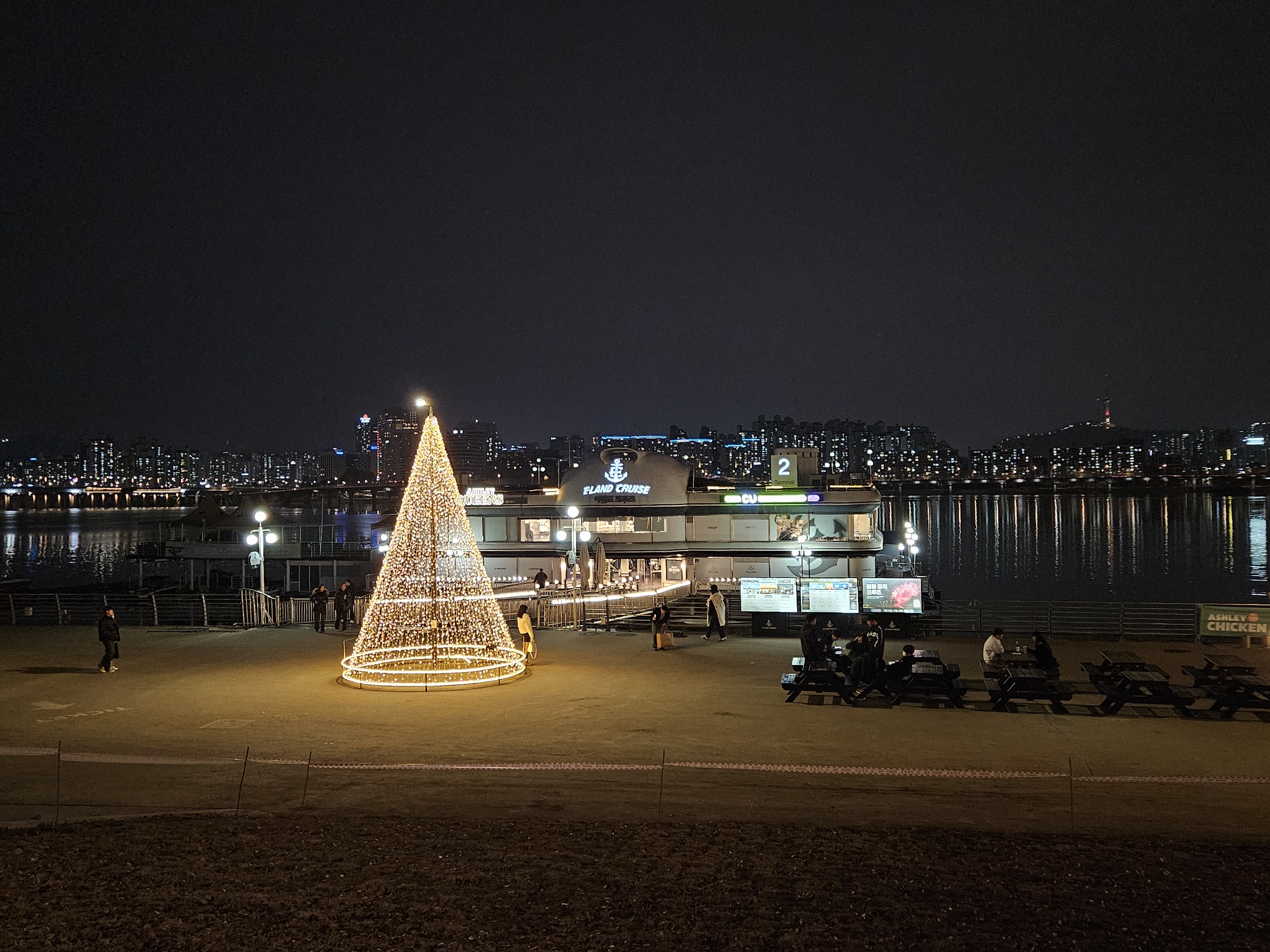 연말이 되면서 곳곳에 크리스마스 트리와 같은 불빛 야경을 선사하고 있는데, 여의도 한강공원에 가니 한강 유람선 선착장인 이랜드크루즈의 불빛야경이 아름다워서 잠시 카메라에 담았습니다.