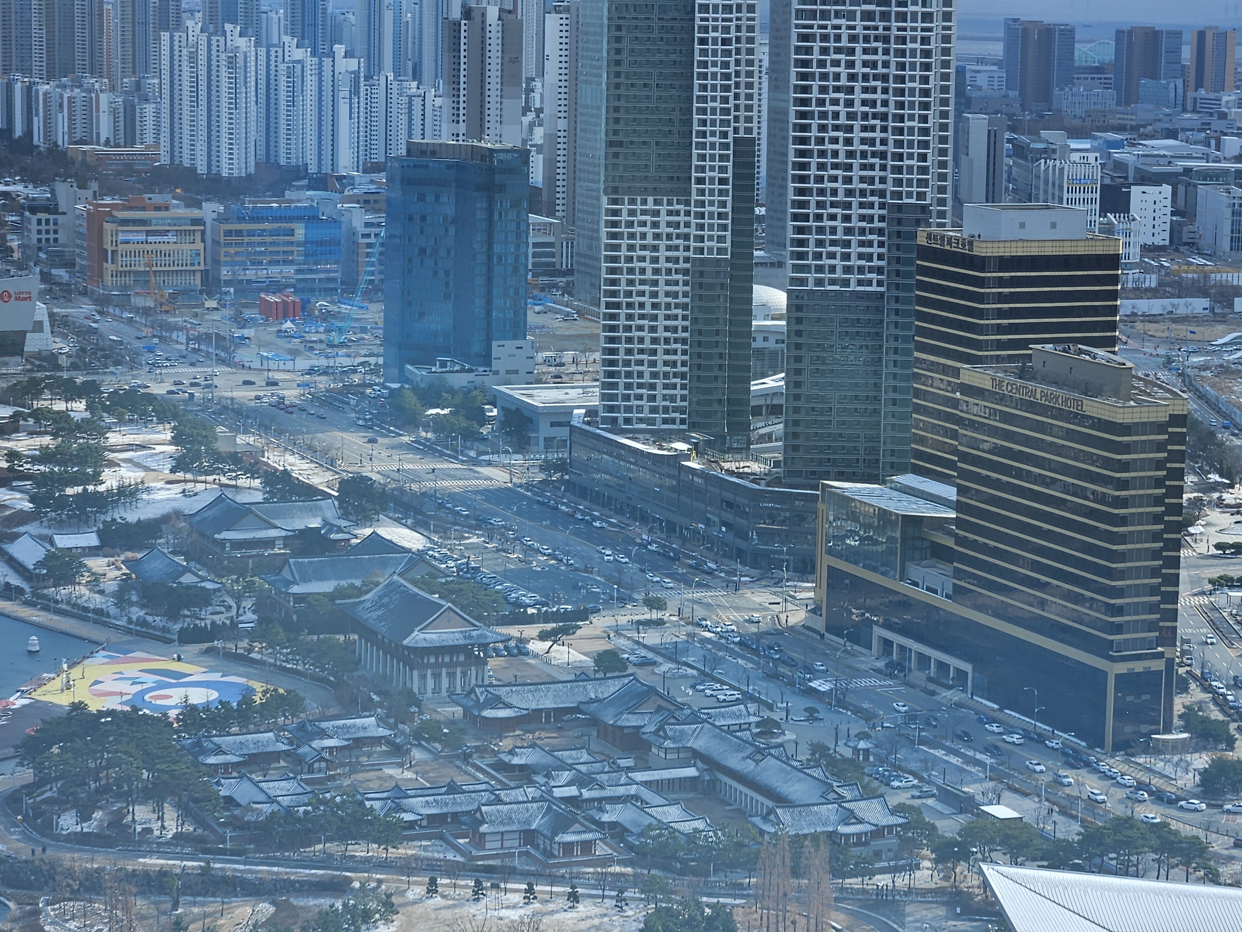 트라이볼 뒤쪽에는 정겨운 한옥으로 지어진 경인재 엠배서더 인천호텔이 있고, 그 앞에 송도센트럴파크 호텔이 있습니다.