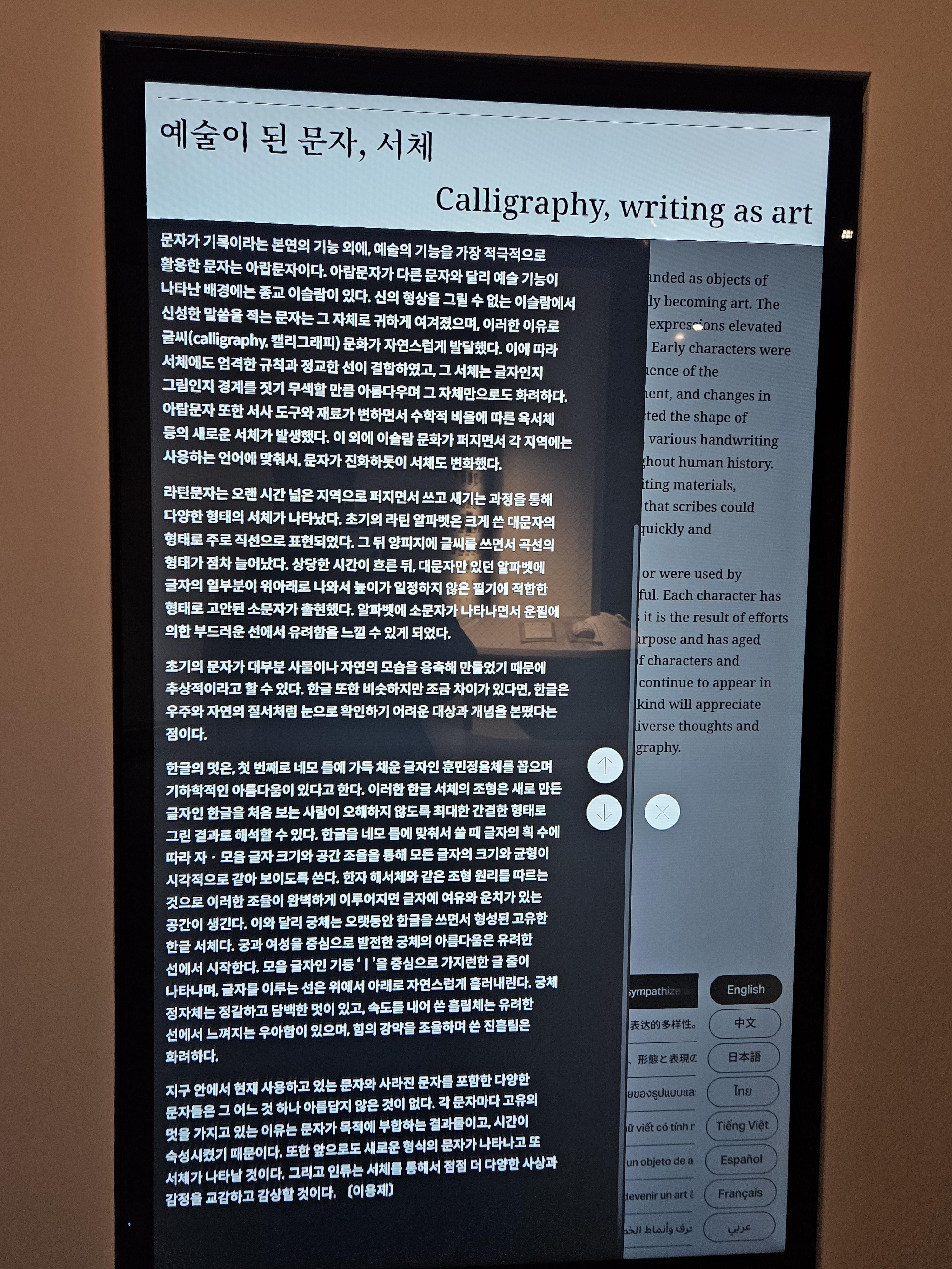 국립세계문자박물관에서는 하루 3~4차례 한국어 해설과 외국인을 위한 특별해설도 있으니 활용하면 좀 더 유익한 시간을 가질 수 있을 것 같습니다.