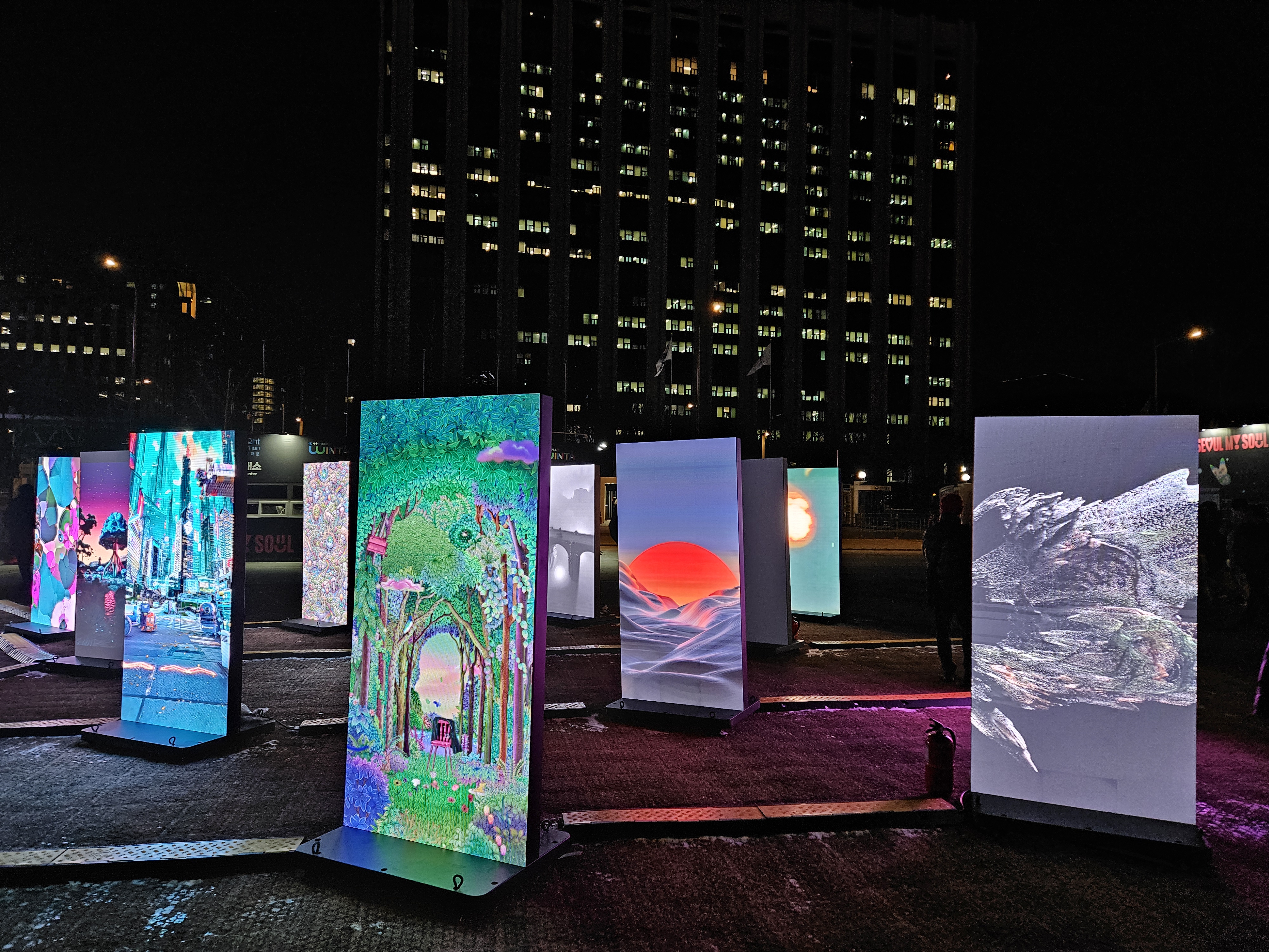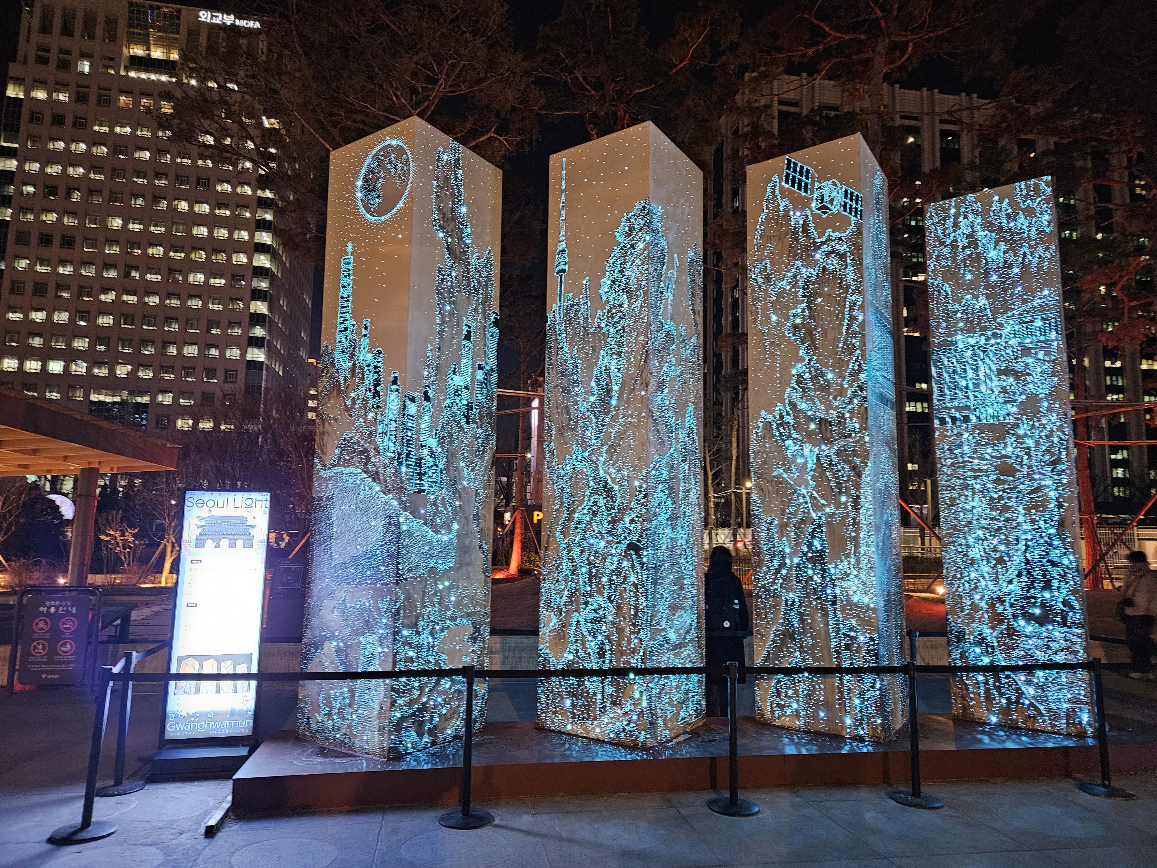 광화문광장을 따라 세워져 있는 '이순신 불멸의 혼', '행성 아래', '인투더 월드', '광화트리', '청용', '만월', '몽유도원도', '대전환', '화이트홀' 등의 작품이 상영된다고 합니다.