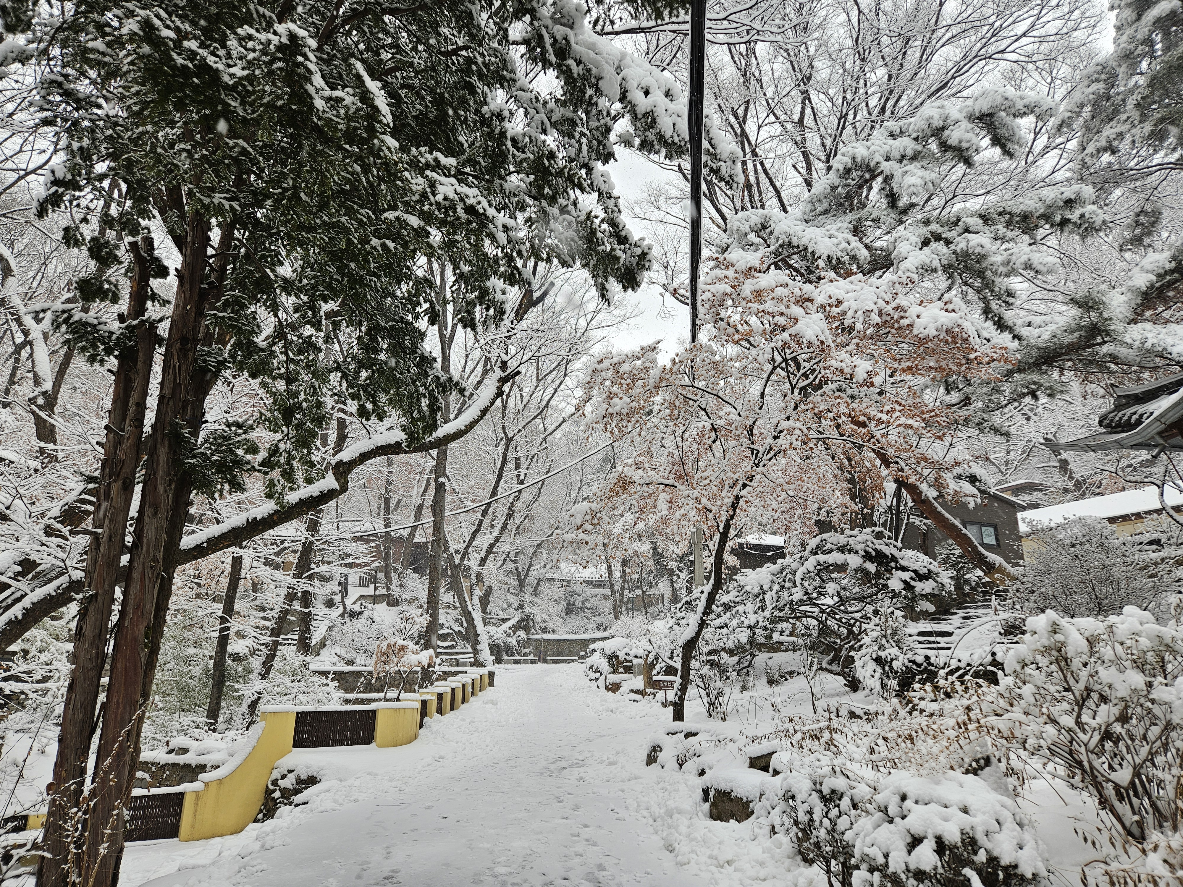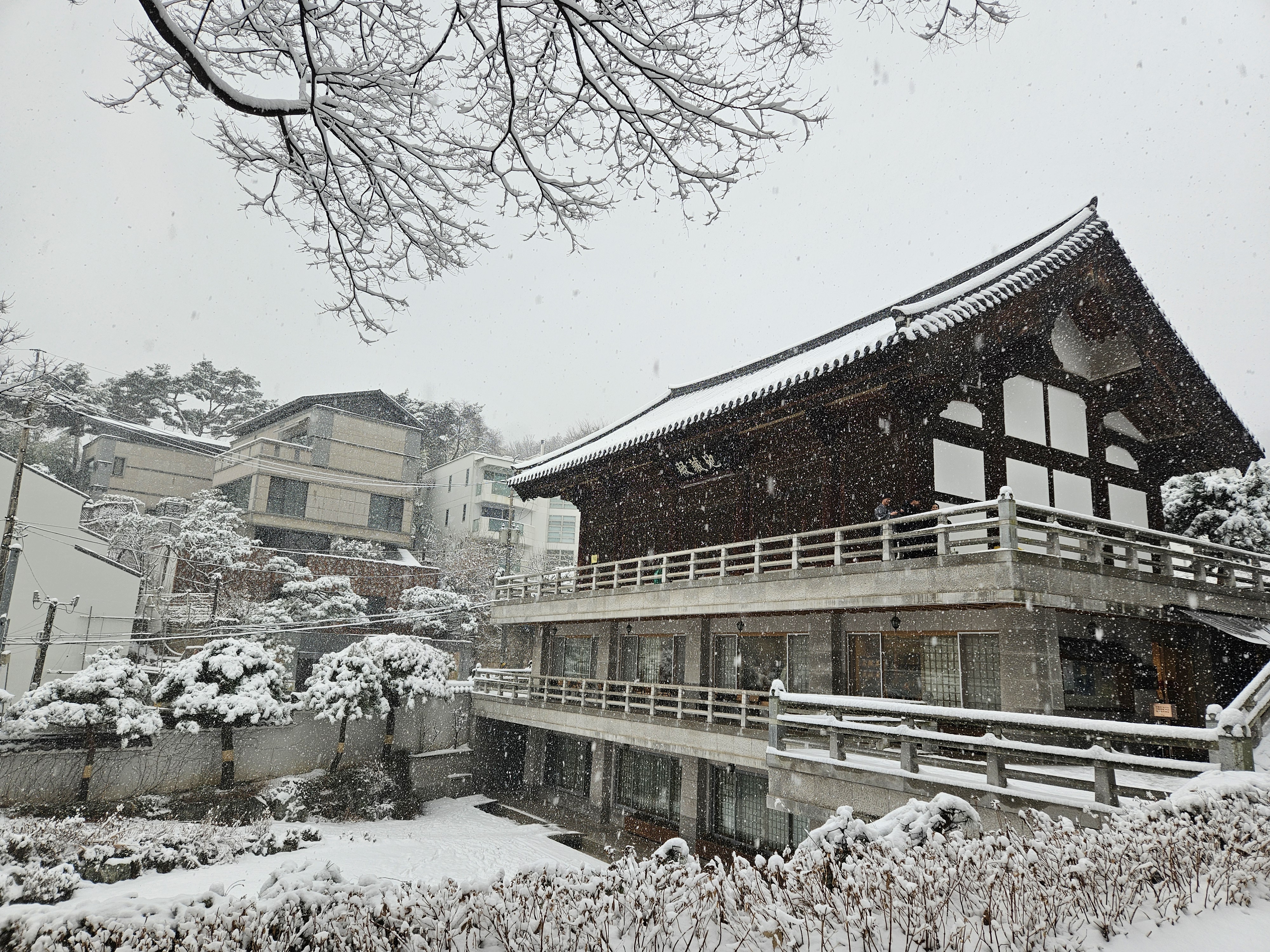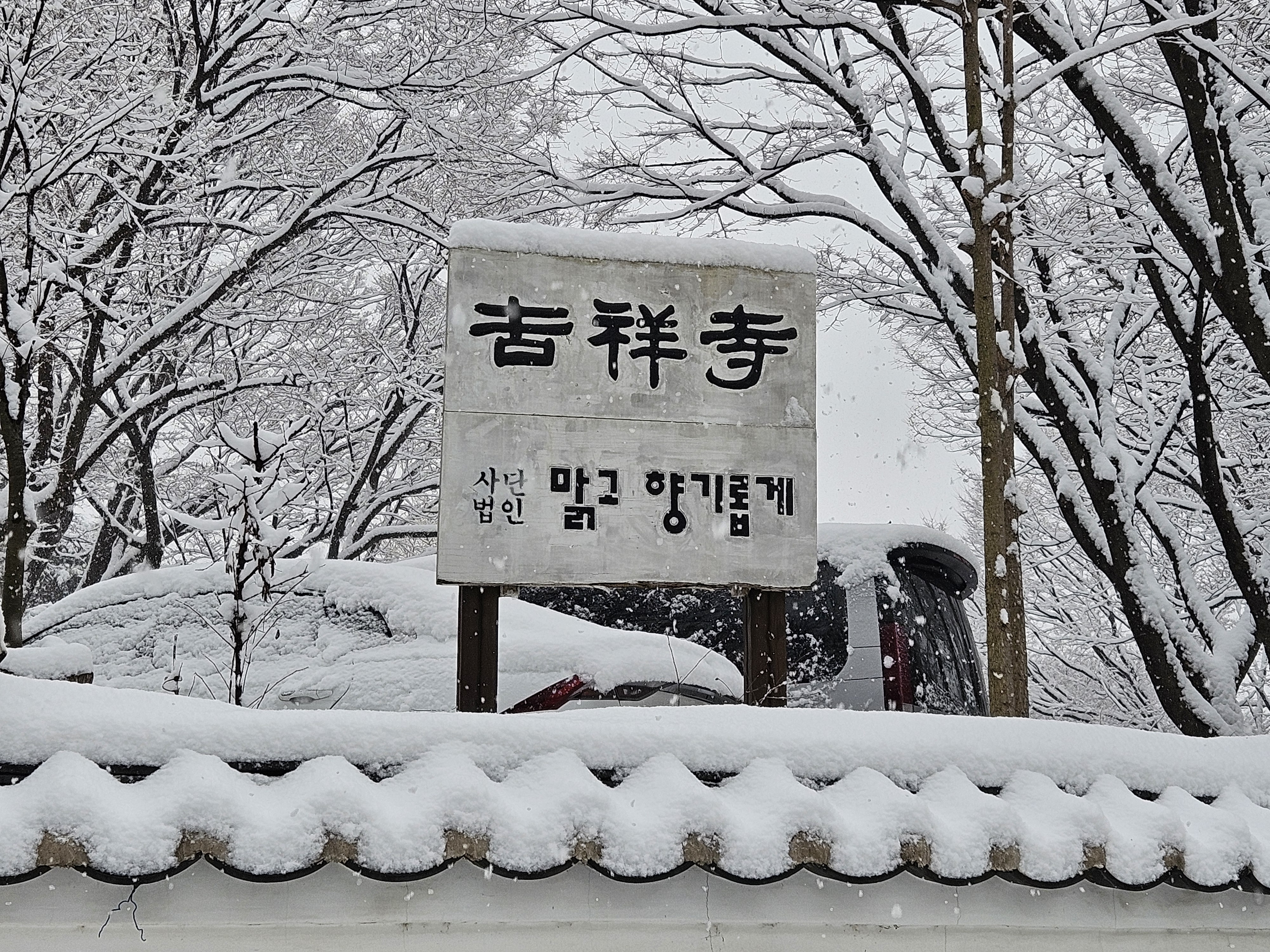 하얗게 뒤덮인 길상사 설경이 무척 아름다웠는데요.