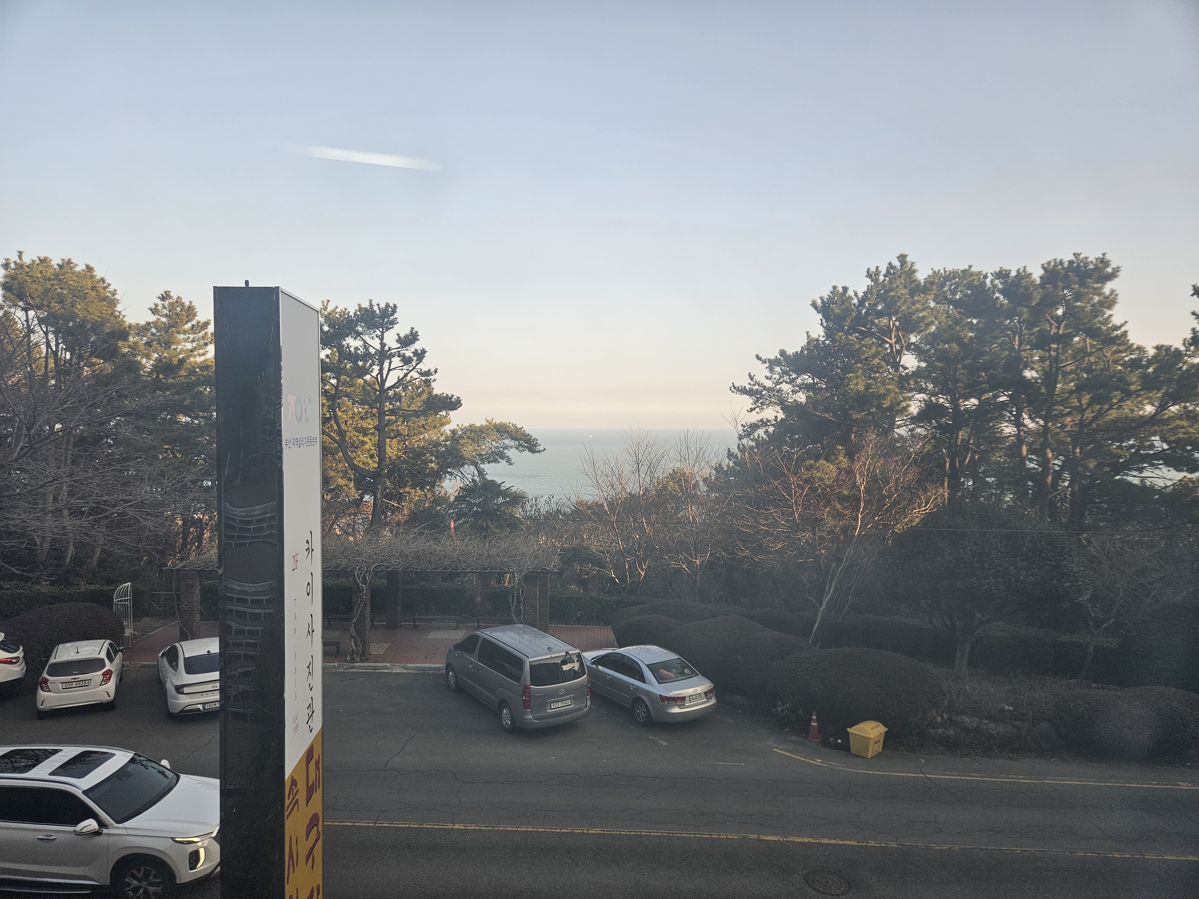 식당에서 바라본 달맞이길과 해운대 바다 풍경